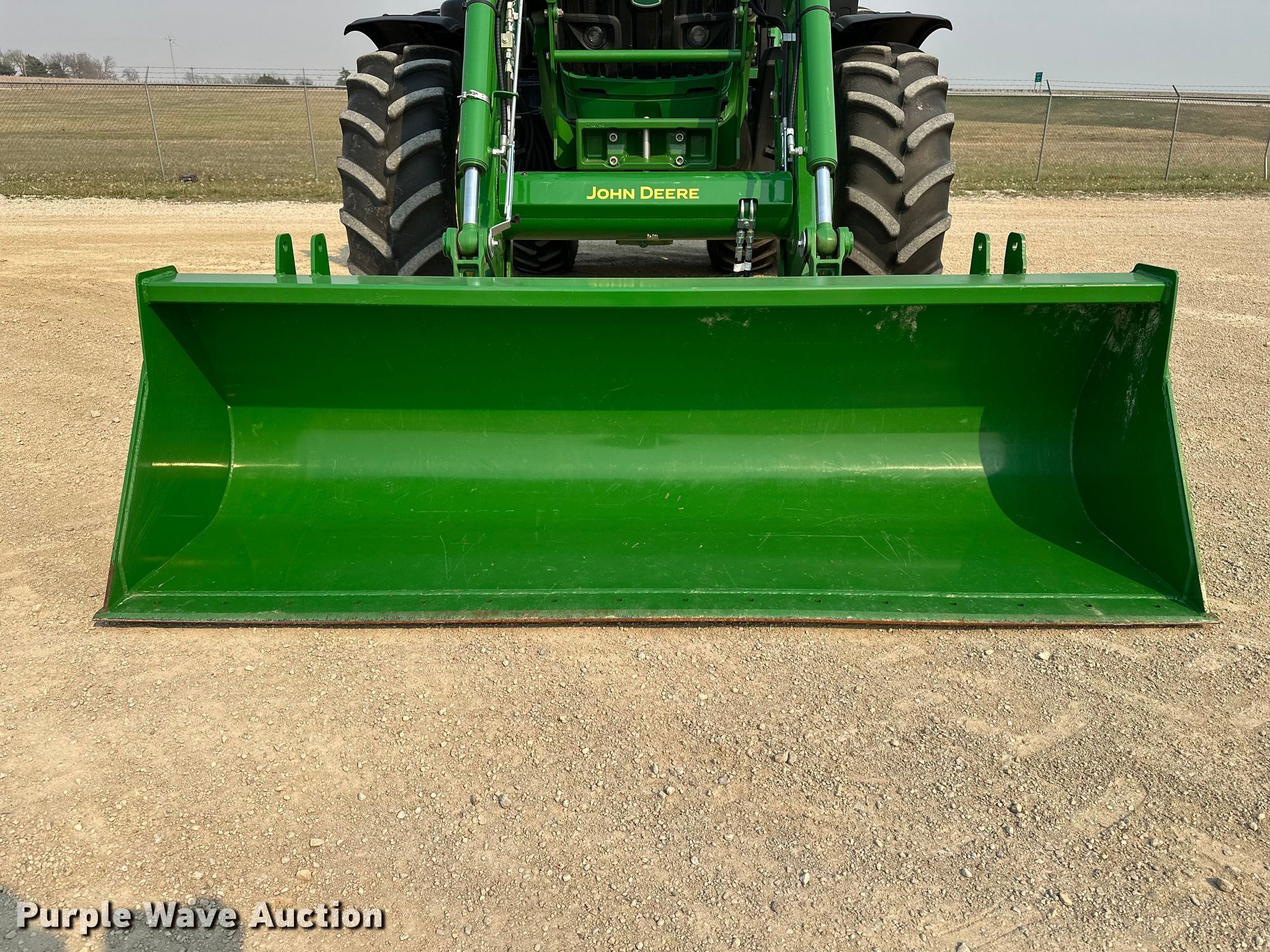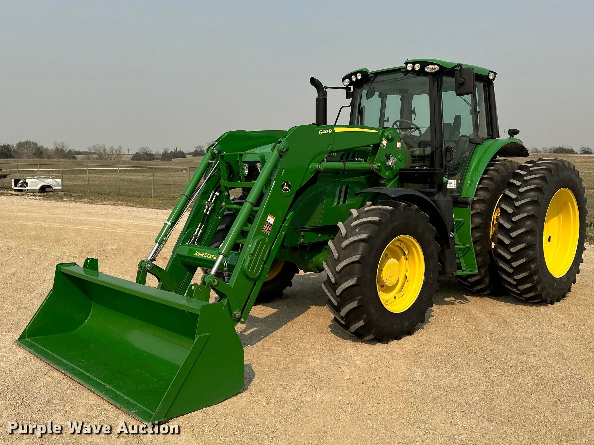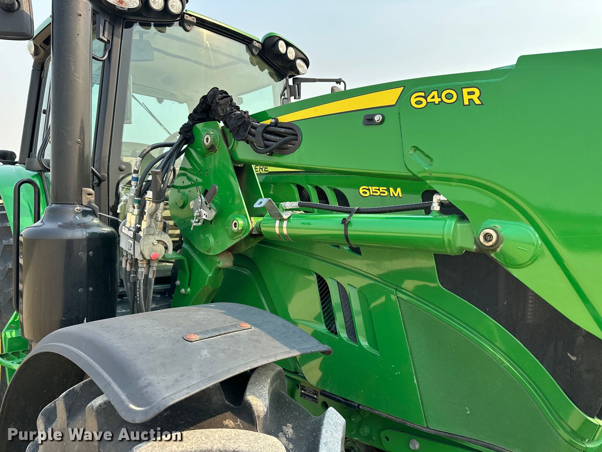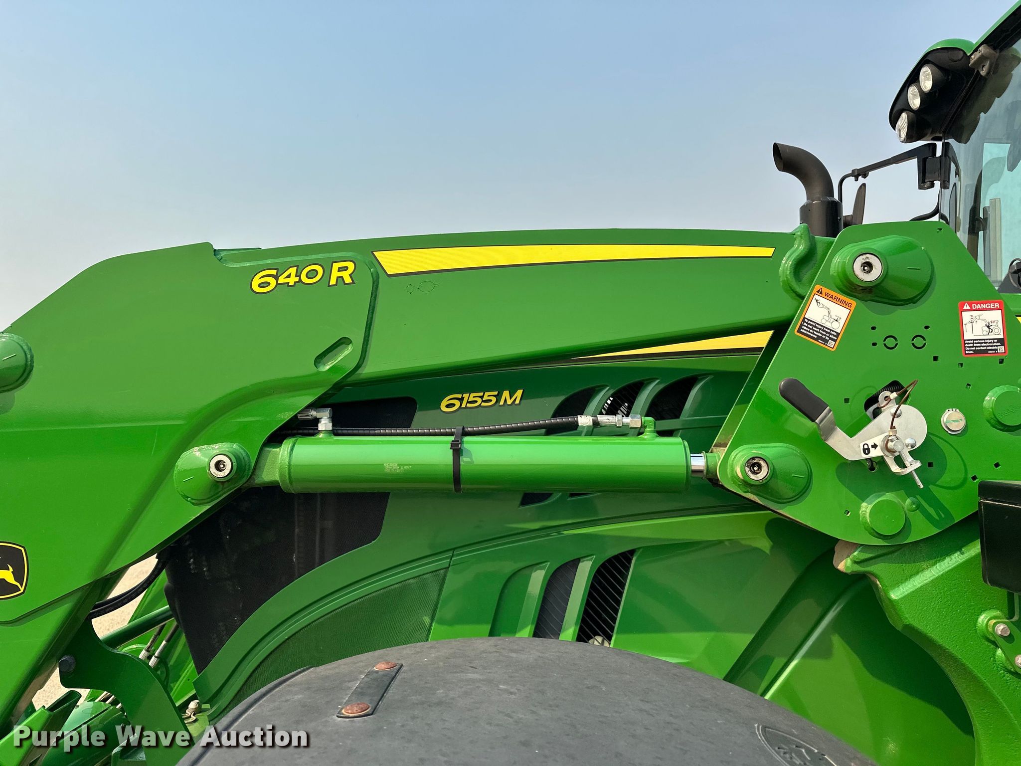 2020 John Deere 6155M MFWD tractor. Hours: 2,333 on meter, Serial: 1L06155MKLG980470. Engine John Deere 6068HL555, Serial: CD6068U151499, Displacement: 6.8L, Cylinders: 6, Fuel type: Diesel. Transmission Powershift, Left-hand reverser, Differential lock. Operators station AC, Heat. Features PTO: 1000, Three point Top link, Seven pin outlet, Hydraulic remote sets Rear: 3, Loader John Deere 640R, Quick attach, Self-leveling, Controls: Joystick, Bucket Width: 99".. Tires Front: 420/85R28, Rear: 480/80R42, Duals. Alma, KS 66401