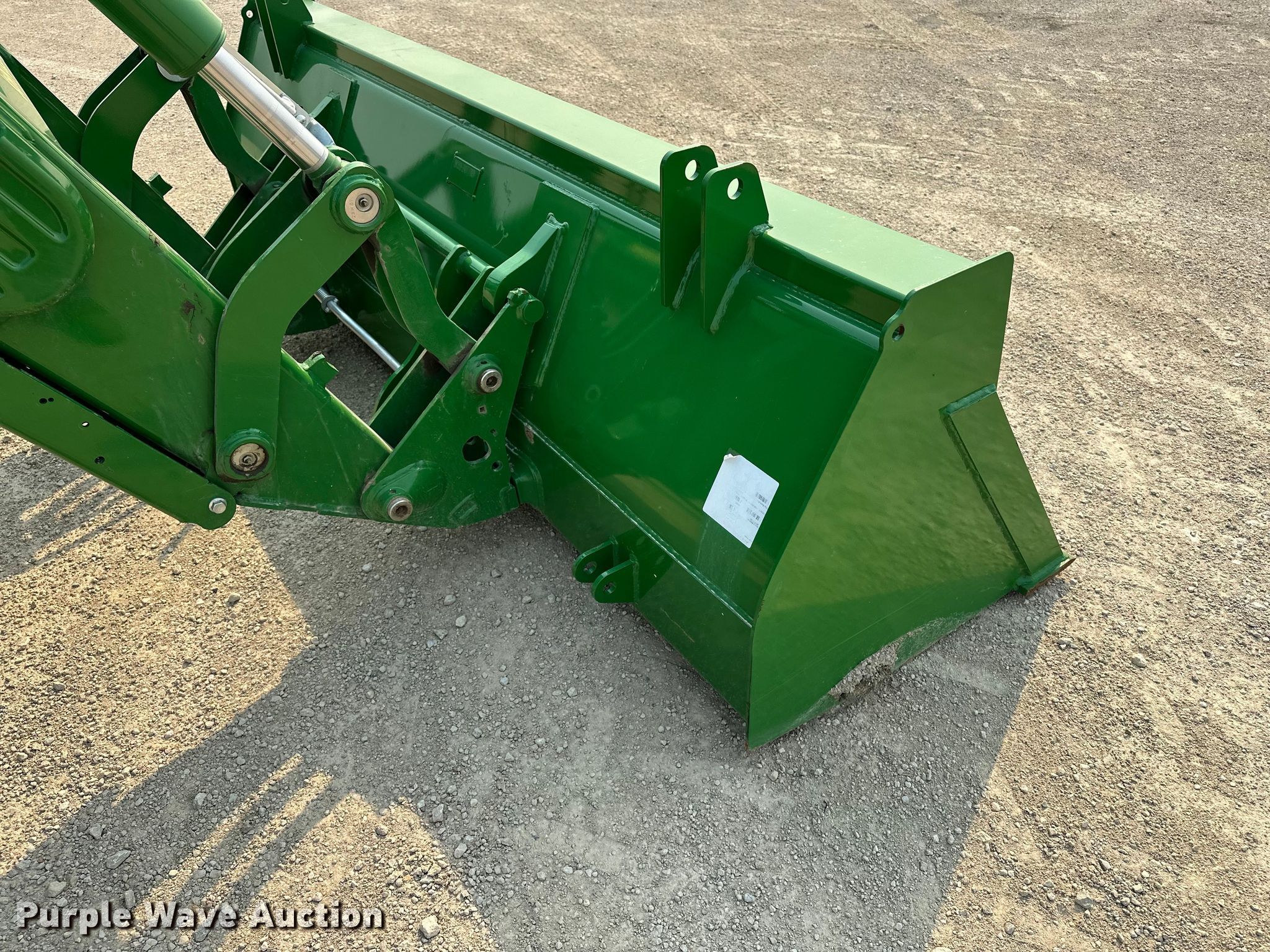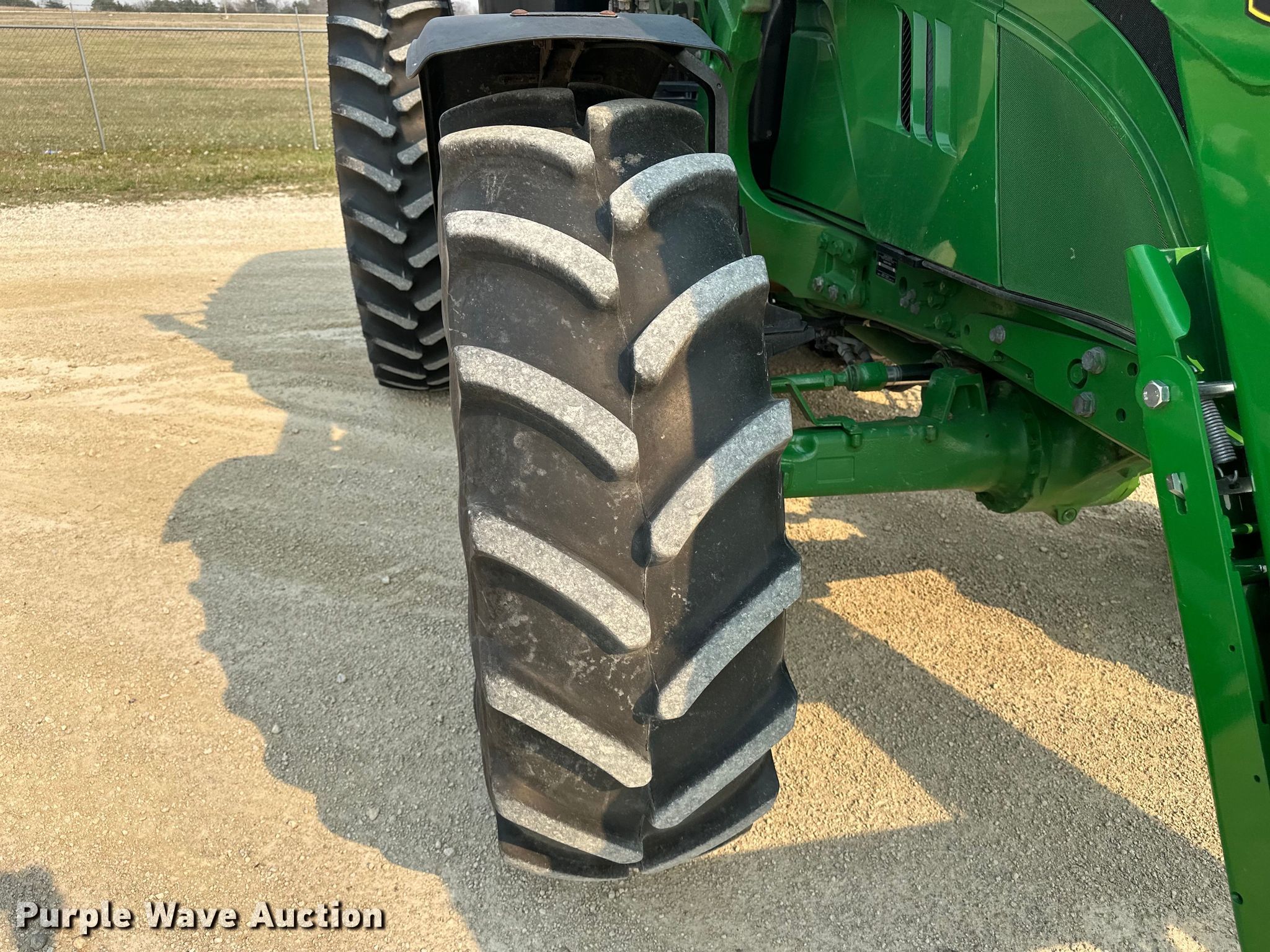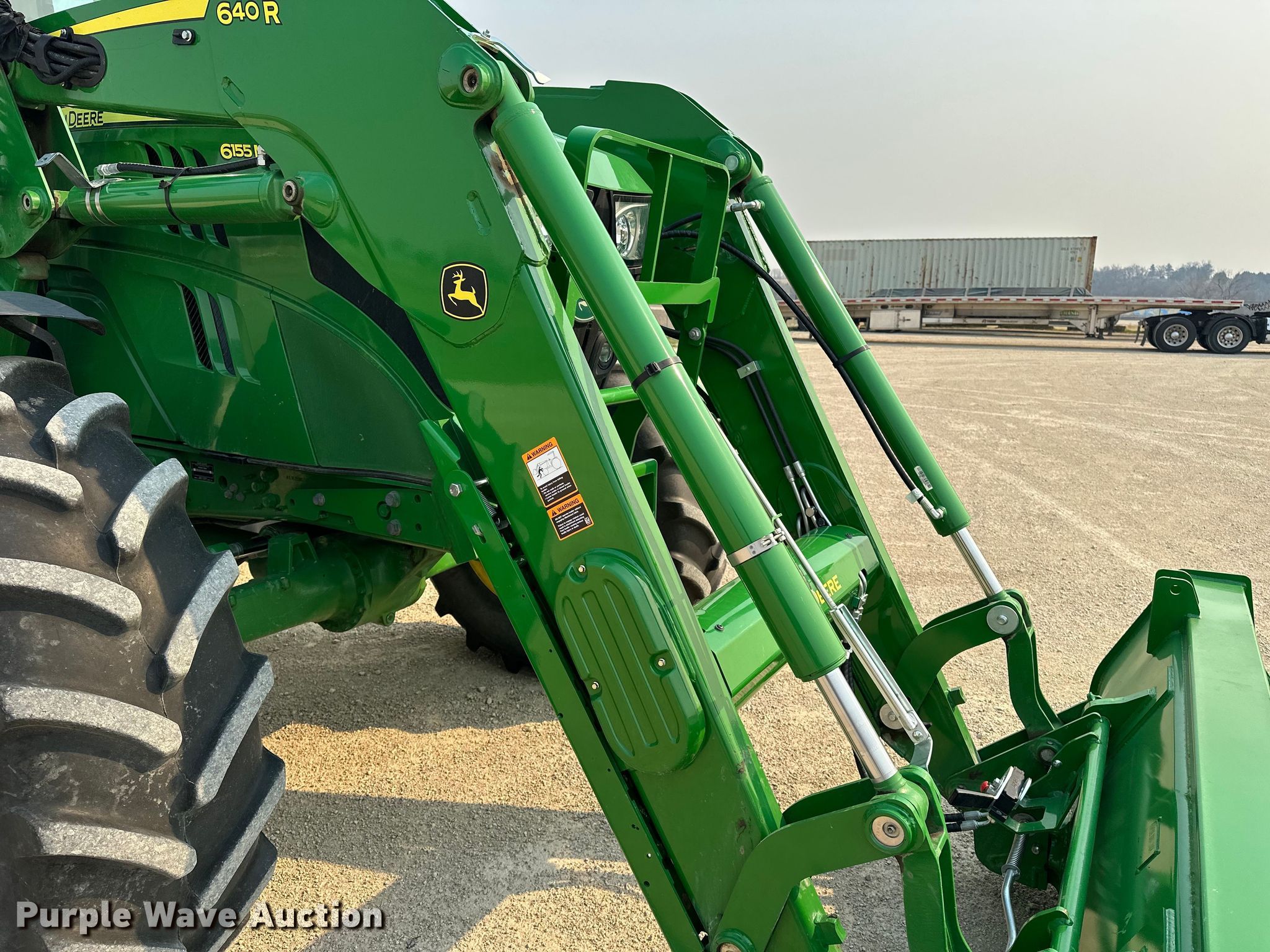 2020 John Deere 6155M MFWD tractor. Hours: 2,333 on meter, Serial: 1L06155MKLG980470. Engine John Deere 6068HL555, Serial: CD6068U151499, Displacement: 6.8L, Cylinders: 6, Fuel type: Diesel. Transmission Powershift, Left-hand reverser, Differential lock. Operators station AC, Heat. Features PTO: 1000, Three point Top link, Seven pin outlet, Hydraulic remote sets Rear: 3, Loader John Deere 640R, Quick attach, Self-leveling, Controls: Joystick, Bucket Width: 99".. Tires Front: 420/85R28, Rear: 480/80R42, Duals. Alma, KS 66401