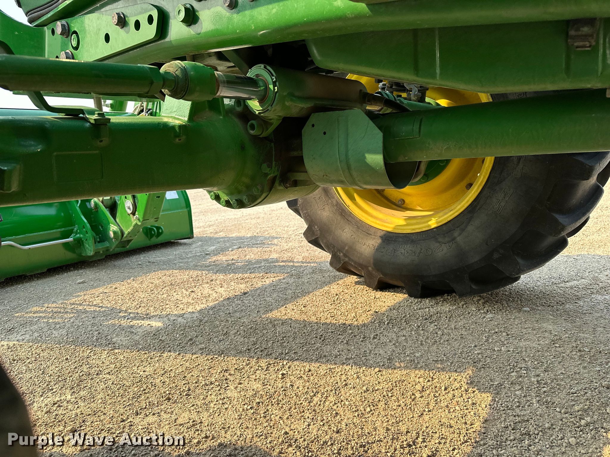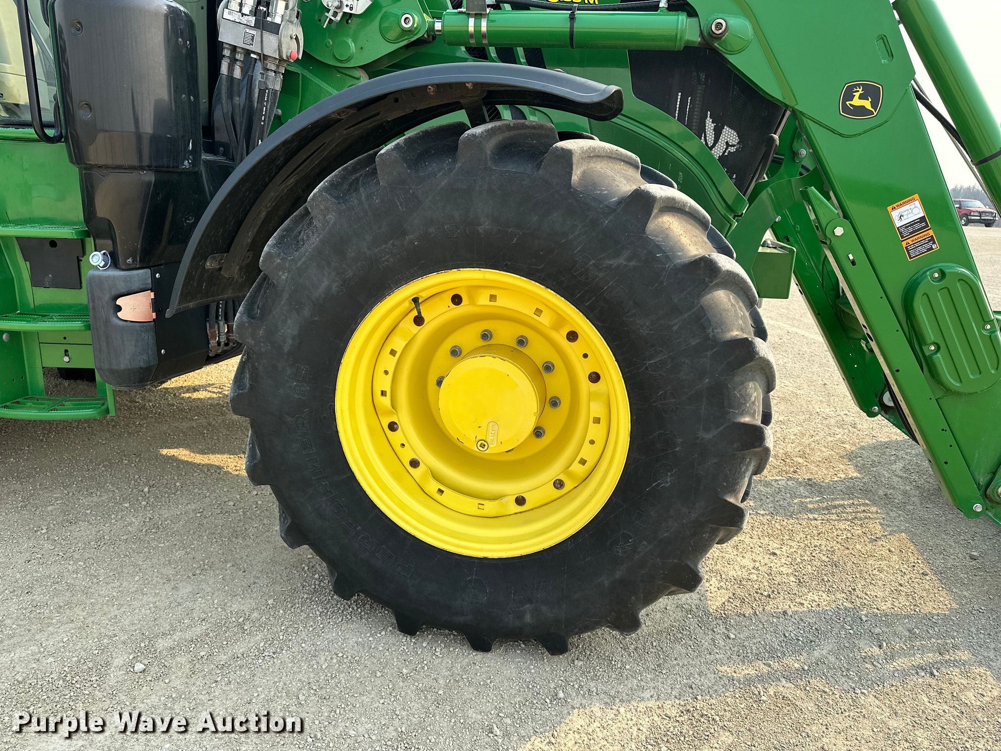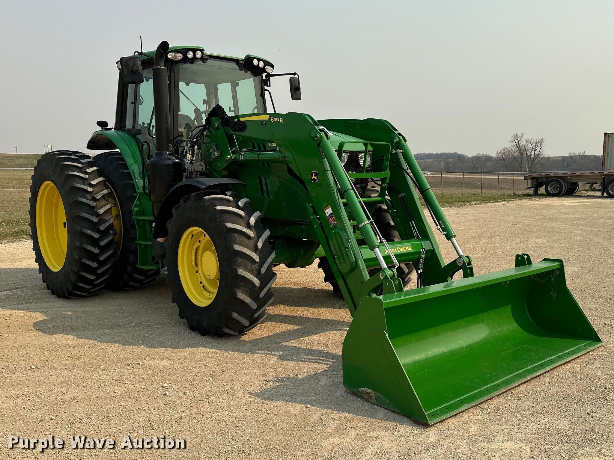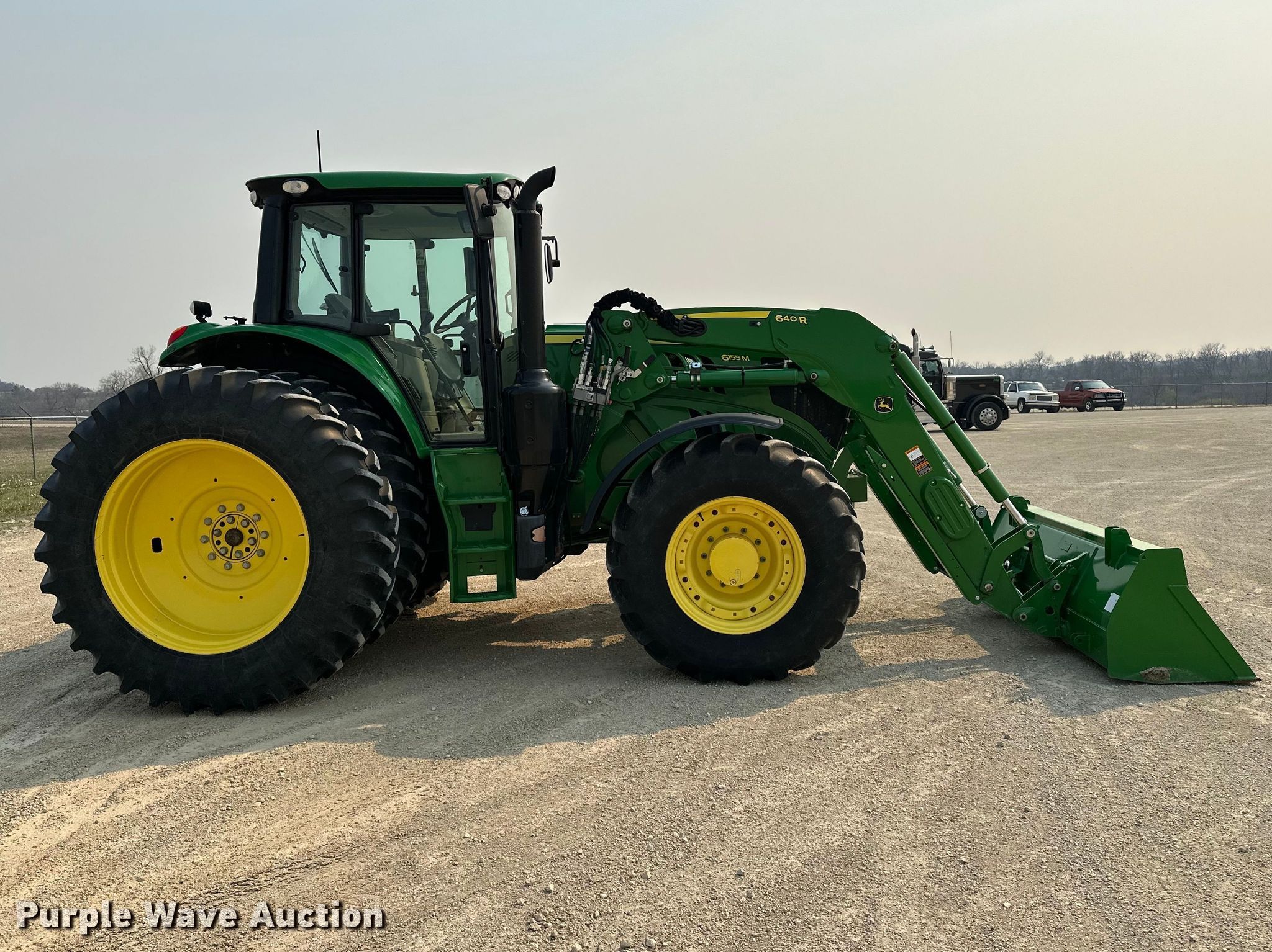 2020 John Deere 6155M MFWD tractor. Hours: 2,333 on meter, Serial: 1L06155MKLG980470. Engine John Deere 6068HL555, Serial: CD6068U151499, Displacement: 6.8L, Cylinders: 6, Fuel type: Diesel. Transmission Powershift, Left-hand reverser, Differential lock. Operators station AC, Heat. Features PTO: 1000, Three point Top link, Seven pin outlet, Hydraulic remote sets Rear: 3, Loader John Deere 640R, Quick attach, Self-leveling, Controls: Joystick, Bucket Width: 99".. Tires Front: 420/85R28, Rear: 480/80R42, Duals. Alma, KS 66401