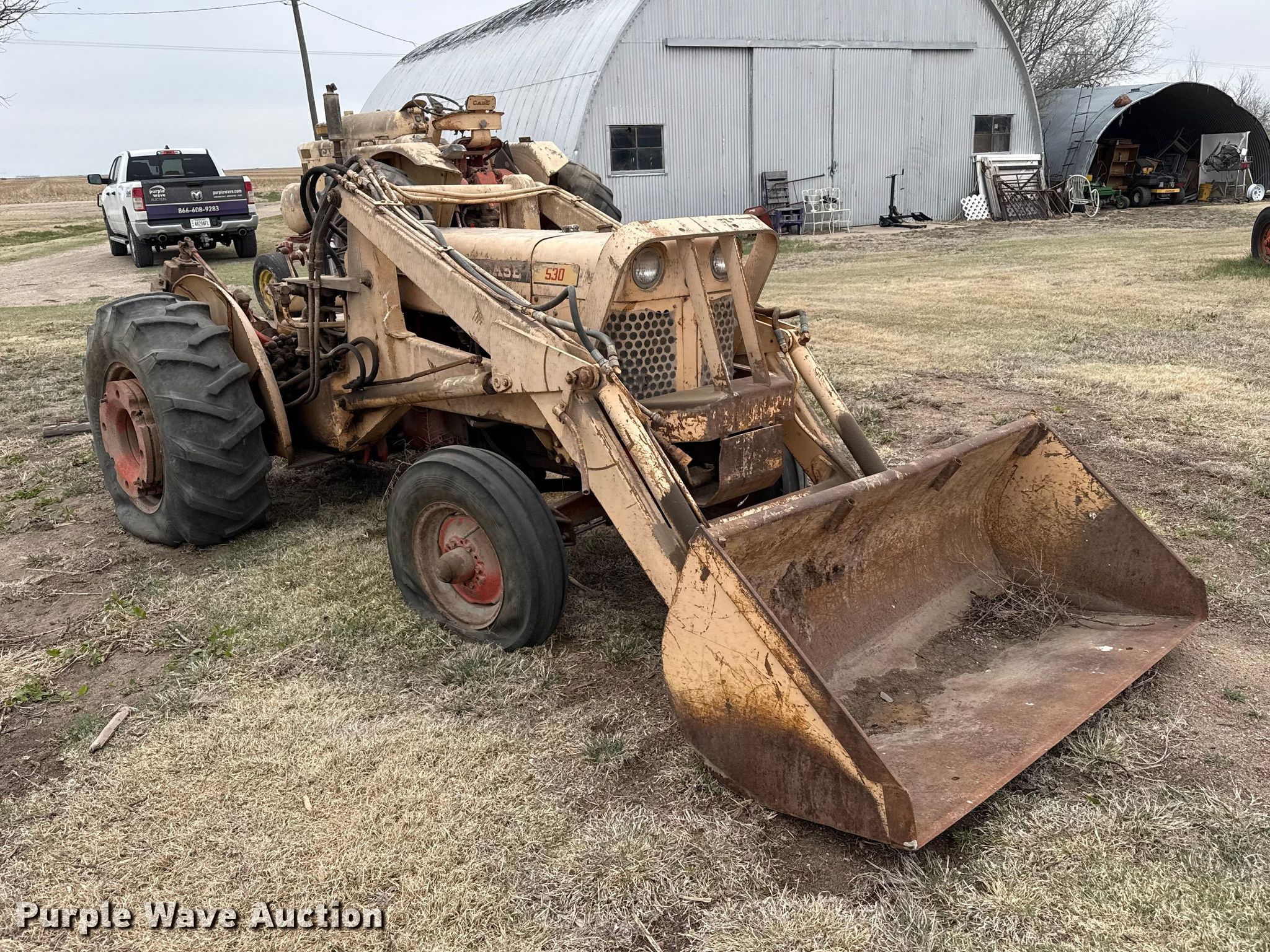 Case 530 tractor. Hours: 690 on meter. Engine Cylinders: 4, Fuel type: Gas. Transmission Manual, 12F - 3R. Features PTO: 540, Three point Top link, Loader Case 31, Controls: Two-lever, Bucket Width: 63".. Tires Front: 7.50-16, Rear: 14.9-24, Wheel weights: 10. Notes Unknown operating condition. Healy, KS 67850