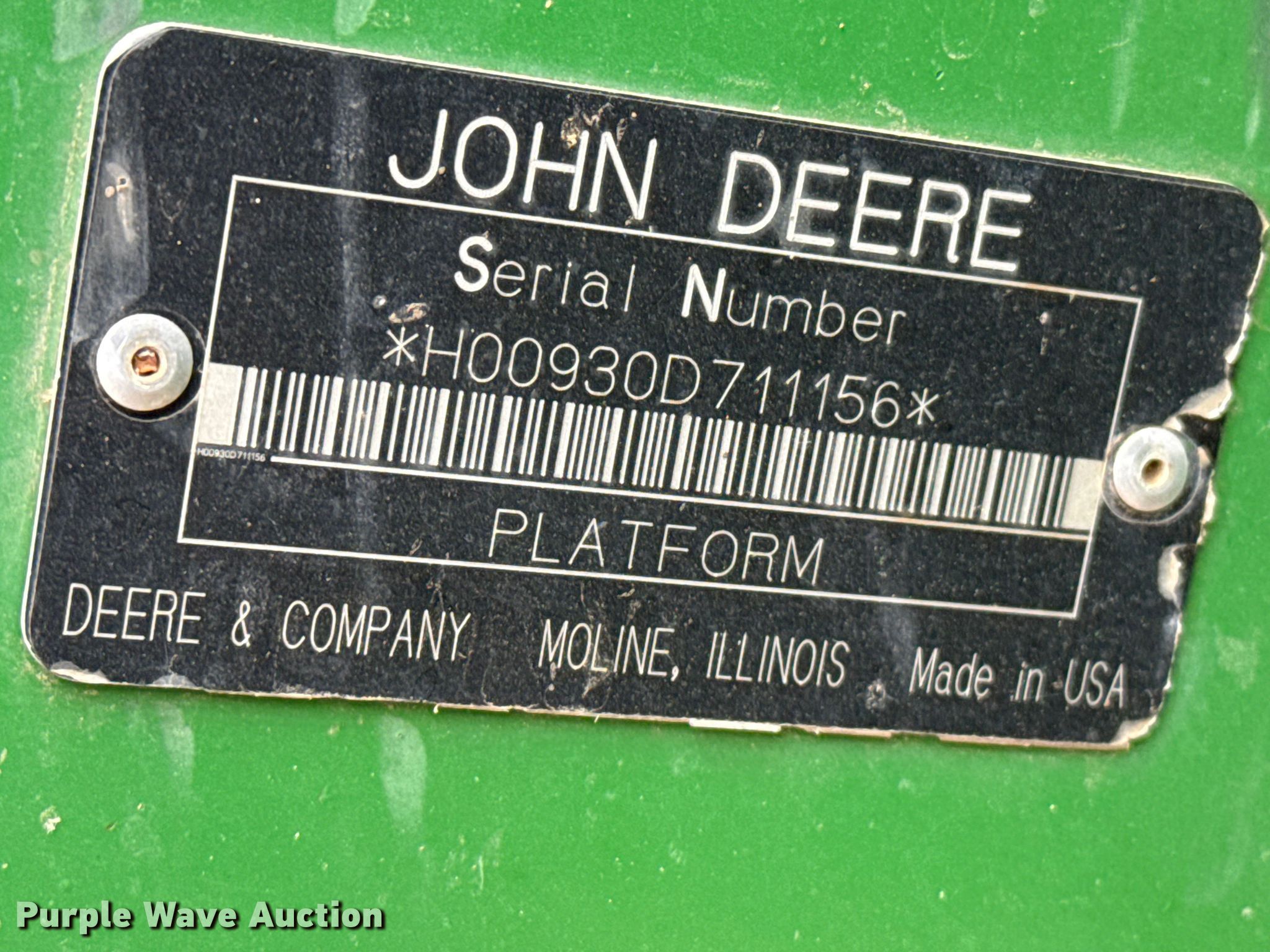 Purple Wave is selling a used Platform or Stripper Head in Kansas. This item is a John Deere 930D draper head with the following: Serial: H00930D711156