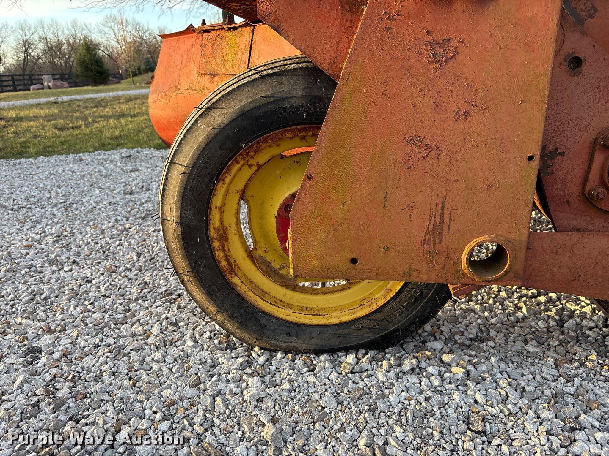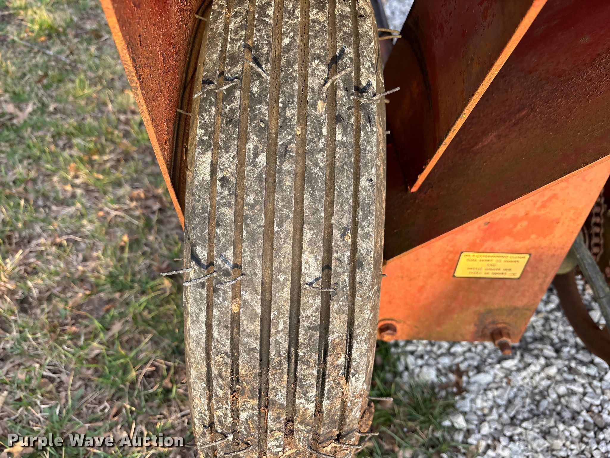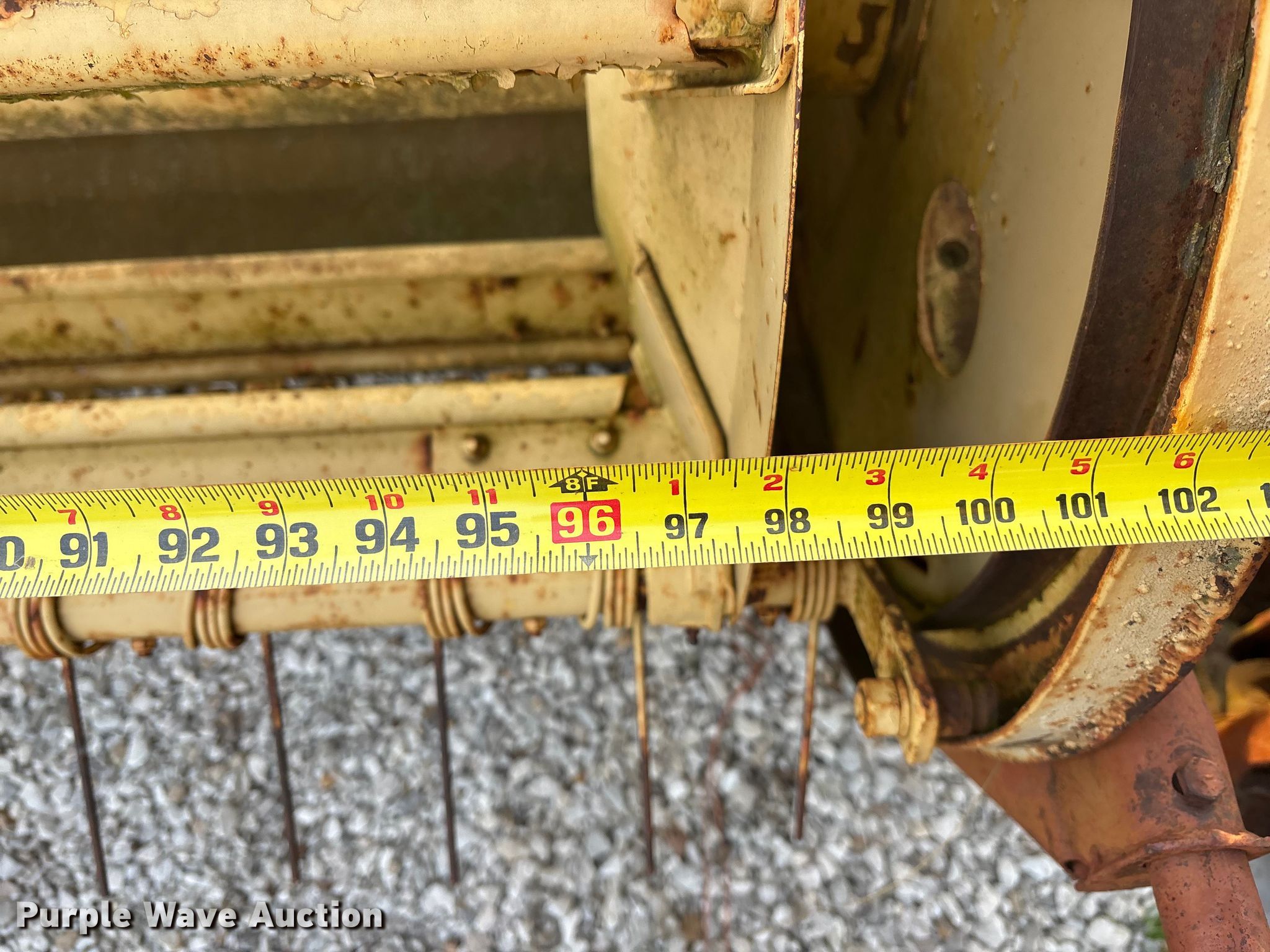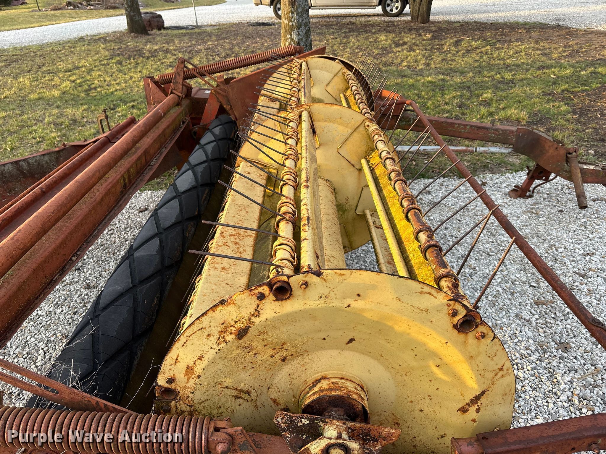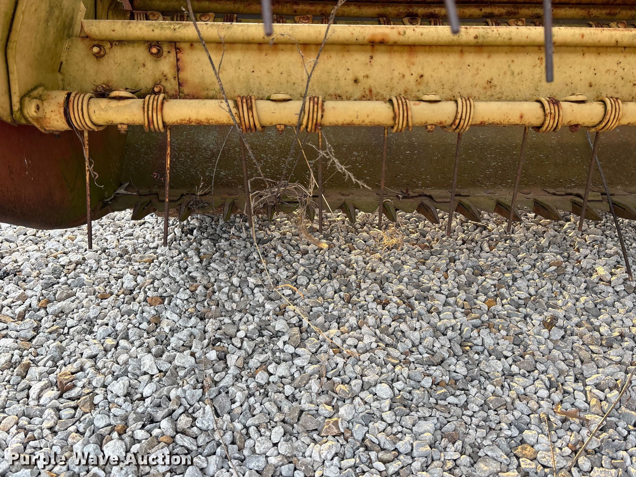 New Holland 460 swather / windrower. Serial: 8223. Features Hitch Draw bar, Head Sickle, Width: 8', Reel: Finger, Conditioners: Rubber/ rubber. Tires Front: 5-15SL. Notes Belt removed from pully, Chains missing, PTO half shaft missing. Lagrange Ranch. Basehor, KS 66007