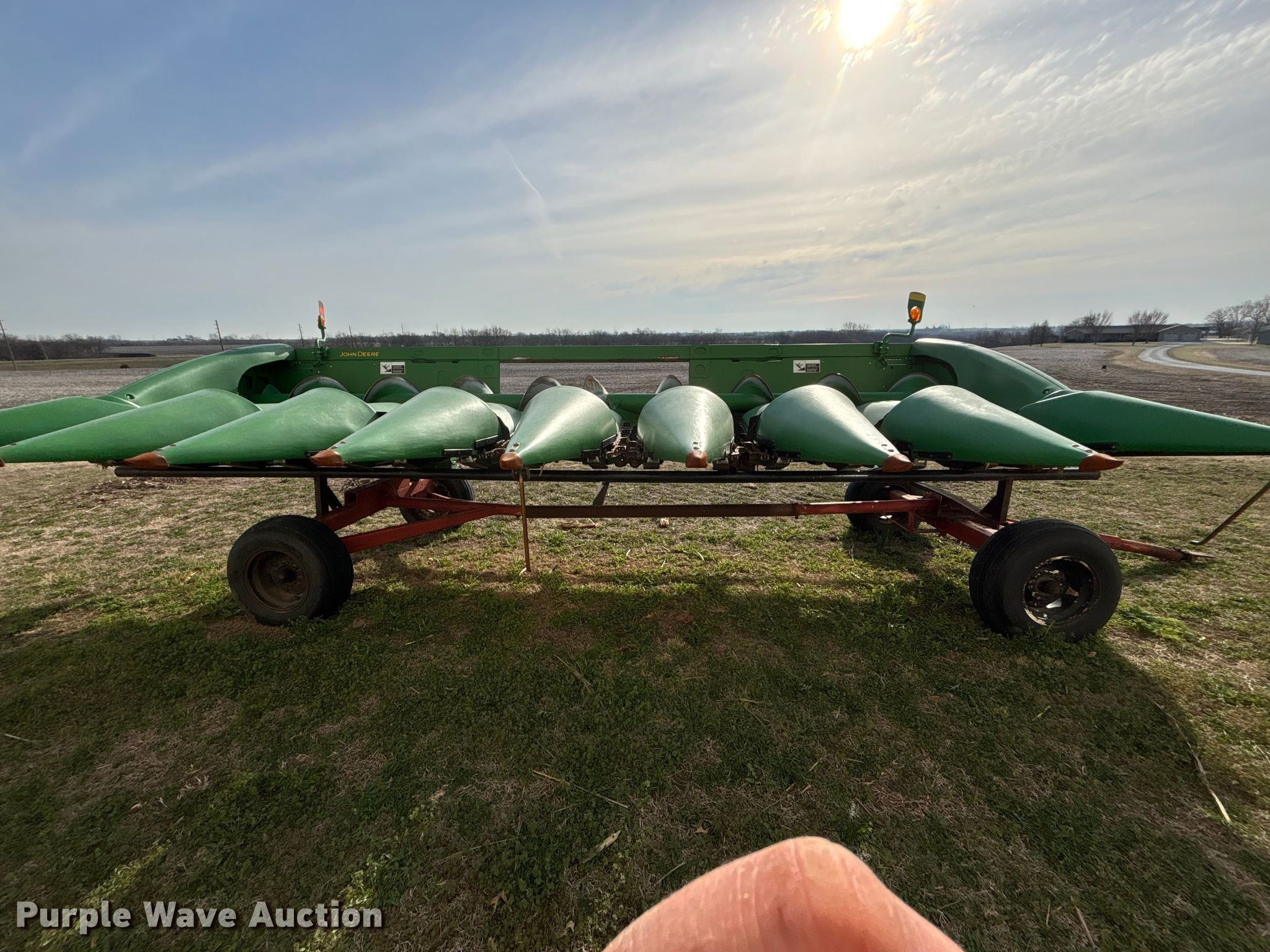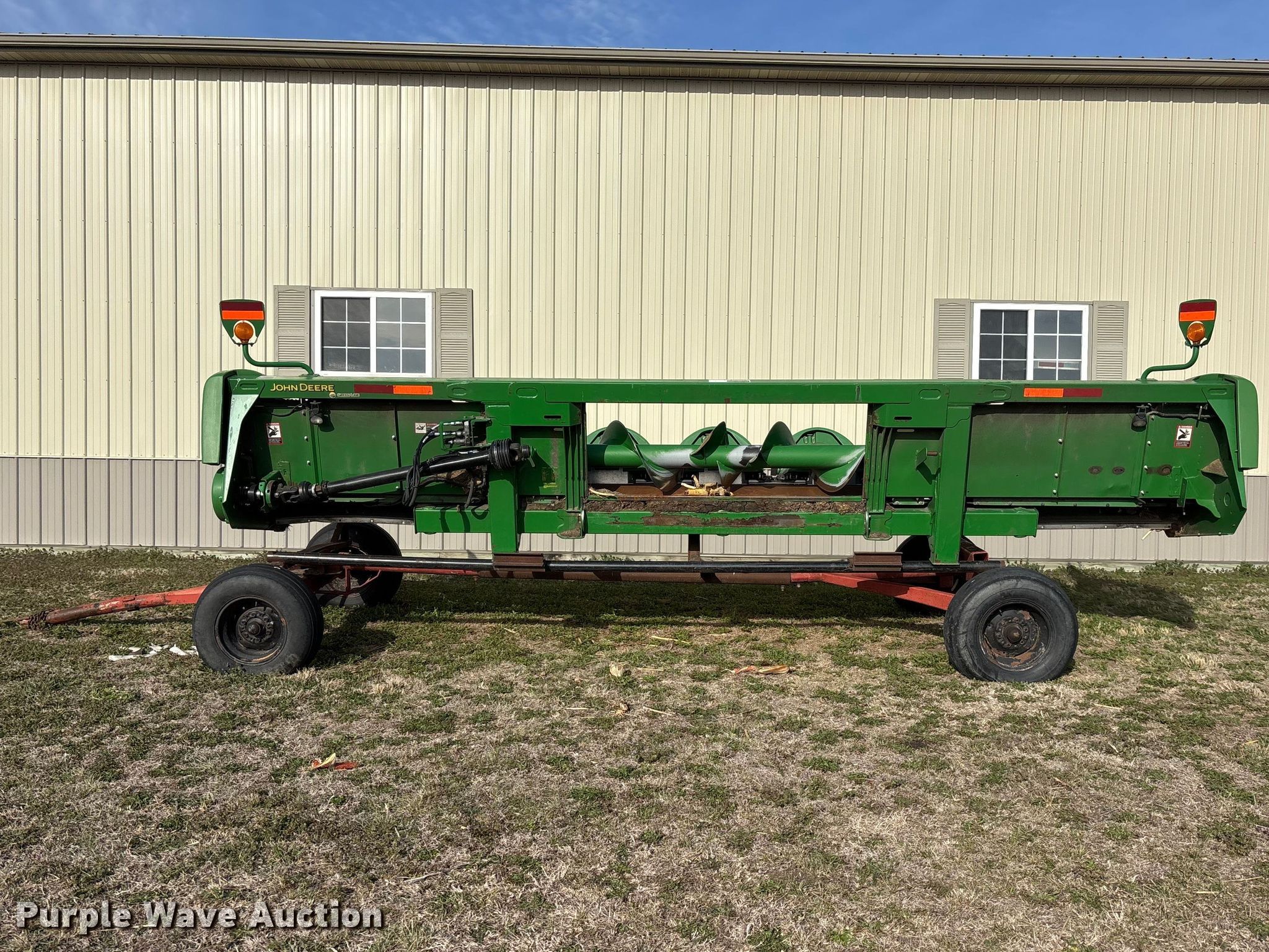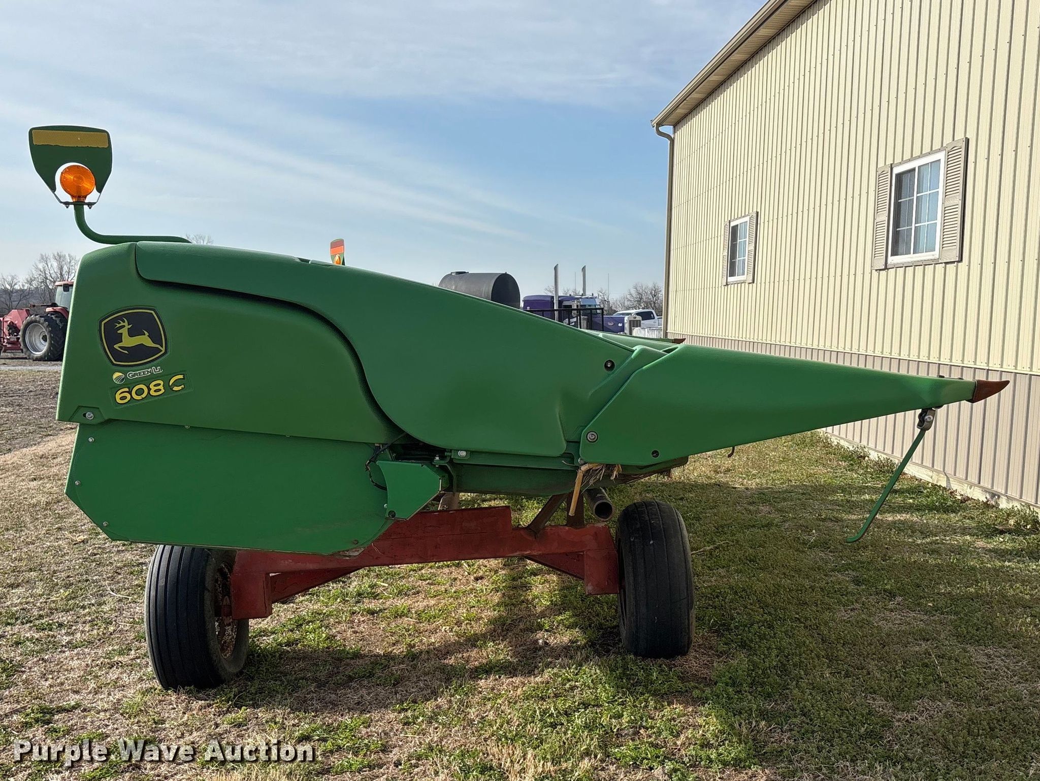 Purple Wave is selling a used Corn or Row Head in Kansas. This item is a John Deere 608C corn head with the following: Serial: 1H00608CTDX756724