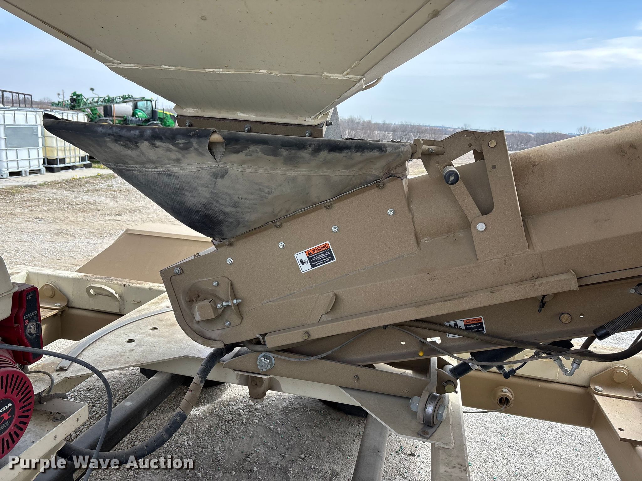 Unverferth Seed Runner 2750 seed tender. Serial: D53070316. Engine Honda GX340, Cylinders: 1, Fuel type: Gas. Features Electric start, Capacity: 220 bushels, Conveyor width: 12", Shut-off gate: Manual, Sight glass, Compartments: 2, Roll tarp, Ball hitch size: 2 5/16", Hydraulic raise and lower, Manual swing. Tires Size: 235/85R16. Transfer of ownership documentation will be a bill of sale. Tom Stirton Farms. Horton, KS 66439