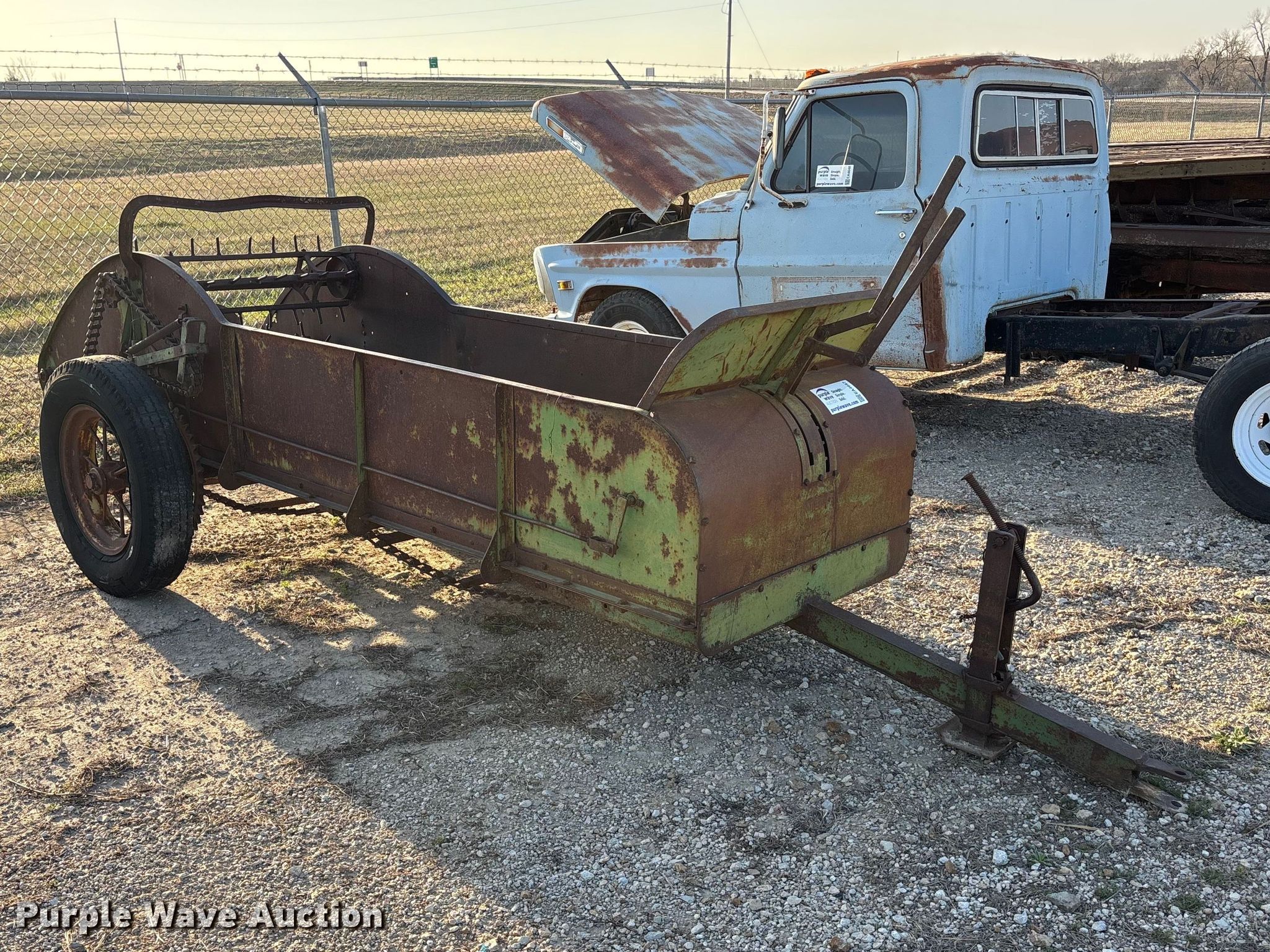 Purple Wave is selling a used Manure Spreader in Kansas. This item is a Manure spreader with the following: 8' L x 42" W, Side height: 20", Chain driven floor, Rear beaters: Horizontal