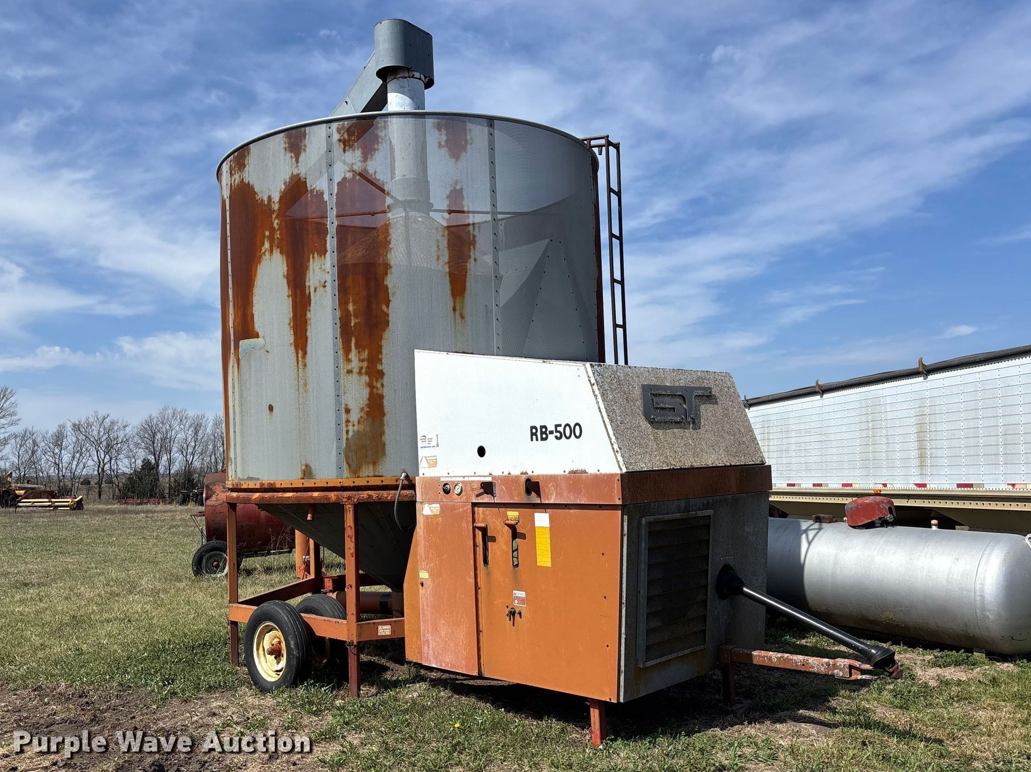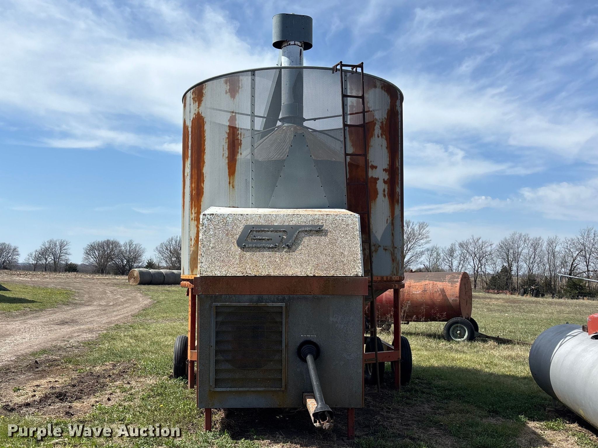 Purple Wave is selling a used Grain Dryer in Kansas. This item is a GT RB500 grain truck with the following: Length: 115", Diameter: 8", Drive over pit, PTO: 540, Heating: Propane, Monitor, Hose