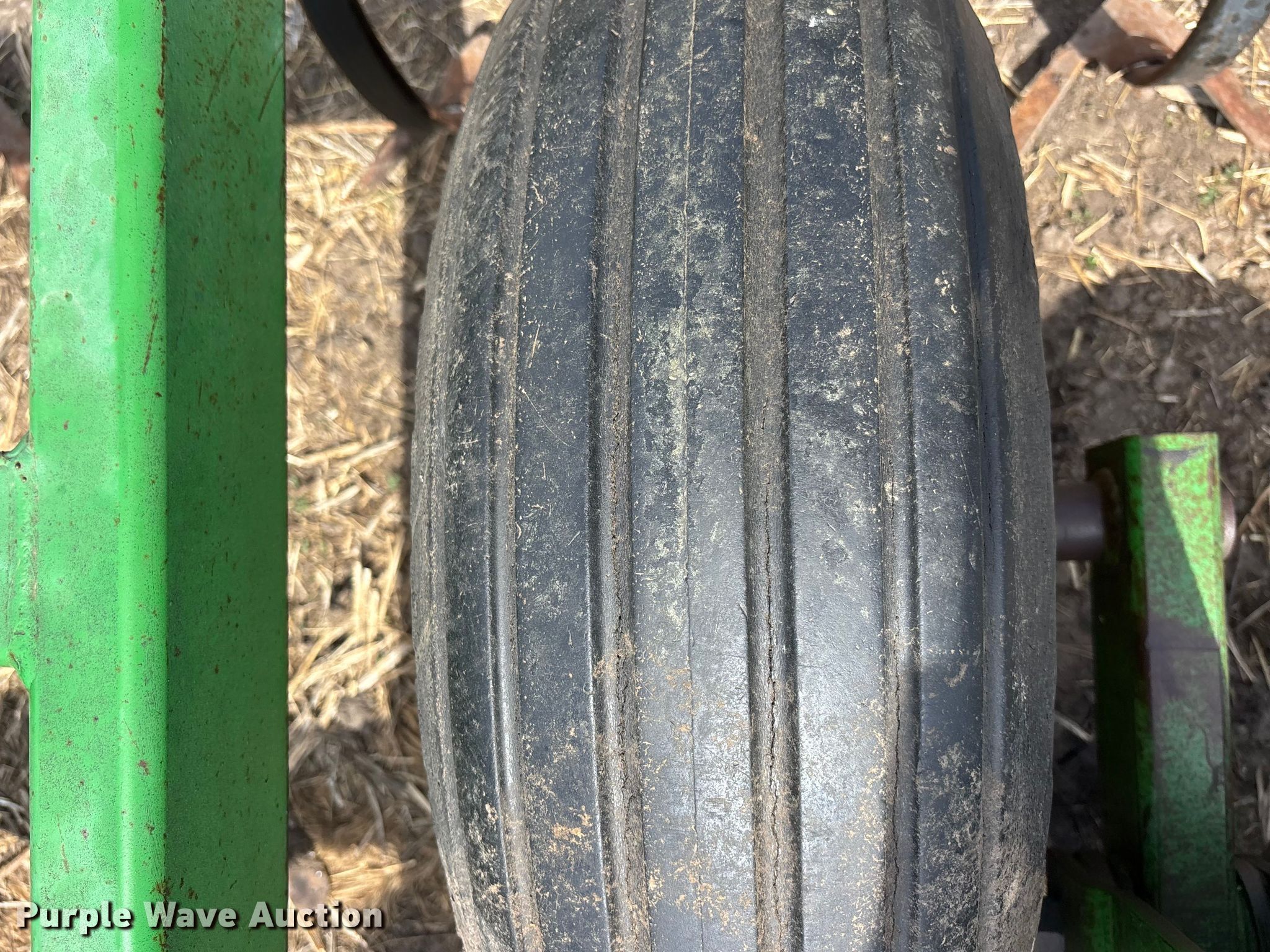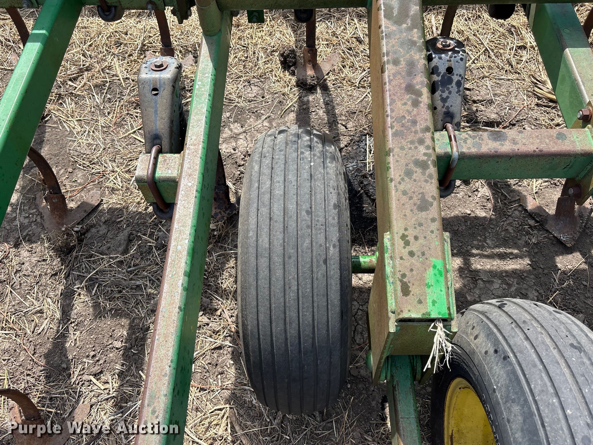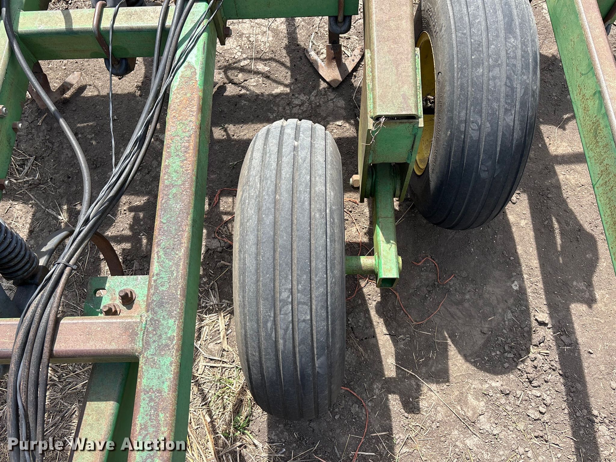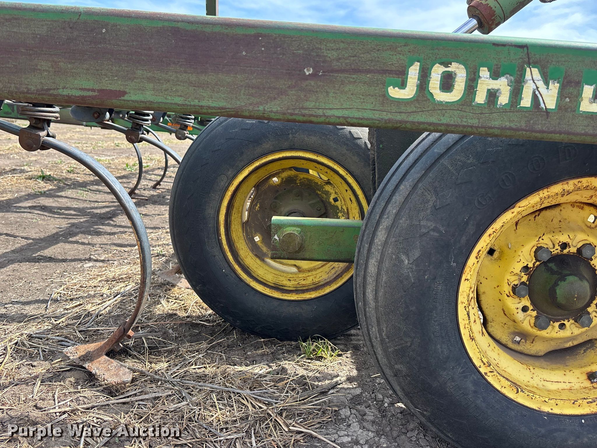 John Deere 980 field cultivator. Overall width: 28', Serial: N00980X003178. Features Shanks: 54, Sweep width: 28', Operation Hydraulic lift, Hydraulic fold, Leveler: Manual, Walking tandem axle, Attachments Tine harrow Harrow bars: 4.. Tires Tire size: 9.5-15. Notes Hydraulic issues, leaks. Mayetta, KS 66509