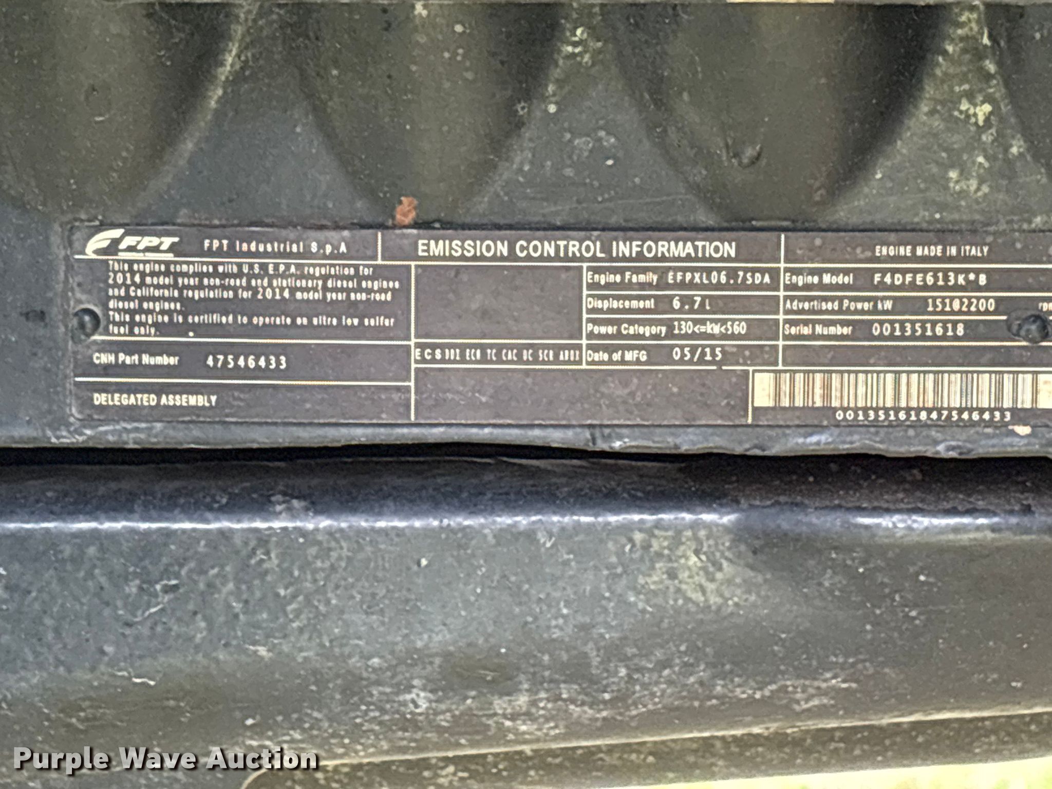 2015 Case Puma 185 MFWD tractor. Hours: 4,686 on meter, Miles or hours may vary, unit still in use, Serial: ZFES01979. Engine FPT F4DFE613K, Displacement: 6.7L, Cylinders: 6, Fuel type: Diesel, HP: 185, kW: 138. Transmission Powershift, 18F - 6R, Left-hand reverser, Differential lock. Operators station AC. Features PTO: 540, 1000, Three point Top link, Seven pin outlet, Hydraulic remote sets Front: 1, Rear: 4, Loader Bucket Width: 101", Grapple. Tires Front: 420/85R30, Rear: 520/85R42, Wheel weights: 2, Duals. Notes DEF deleted. Canton, TX 75103