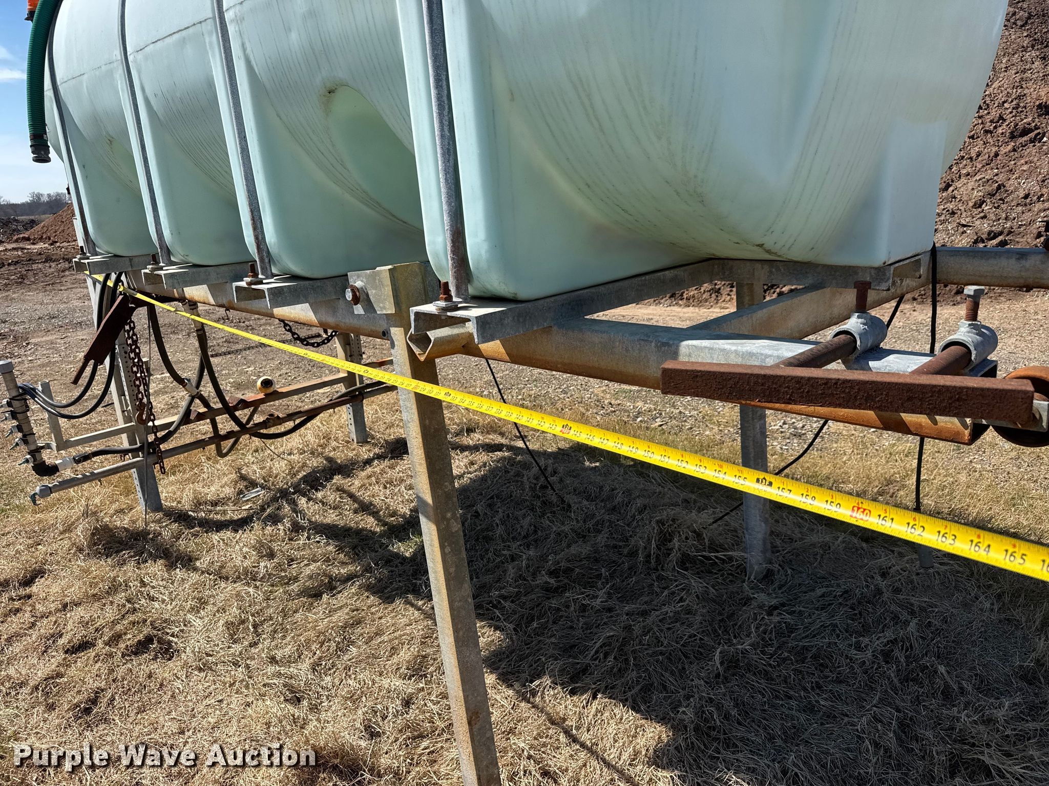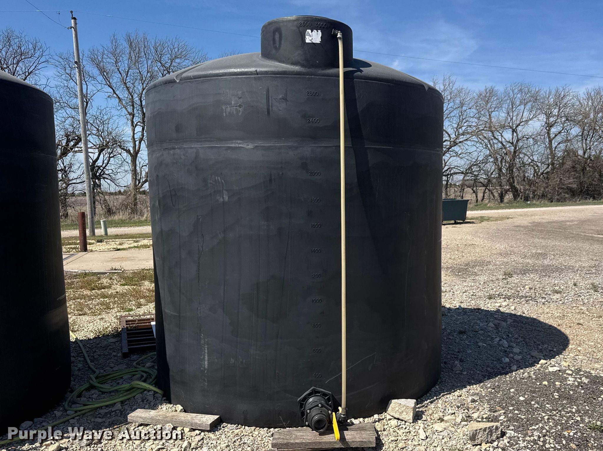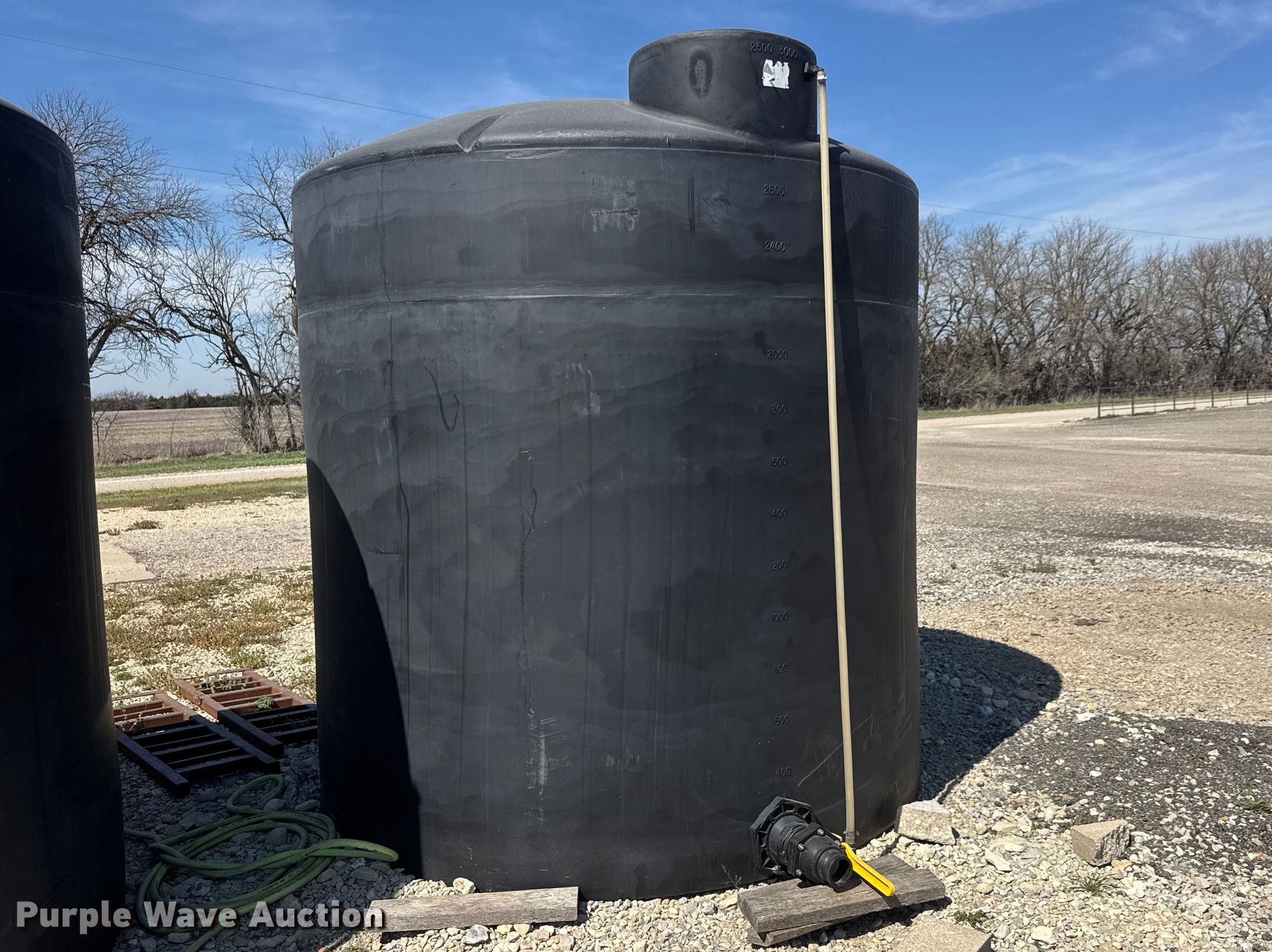 (2) tanks. Poly tank Capacity: 1,625 gallons, Pacer pump, Stand, Unknown operating condition, Poly tank Capacity: 3,000 gallons, Lower outlet issues, leaks. Stands Farms, LLC. El Dorado, KS 67042