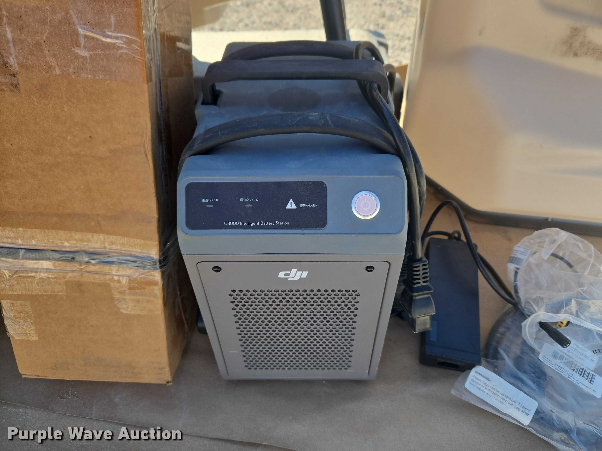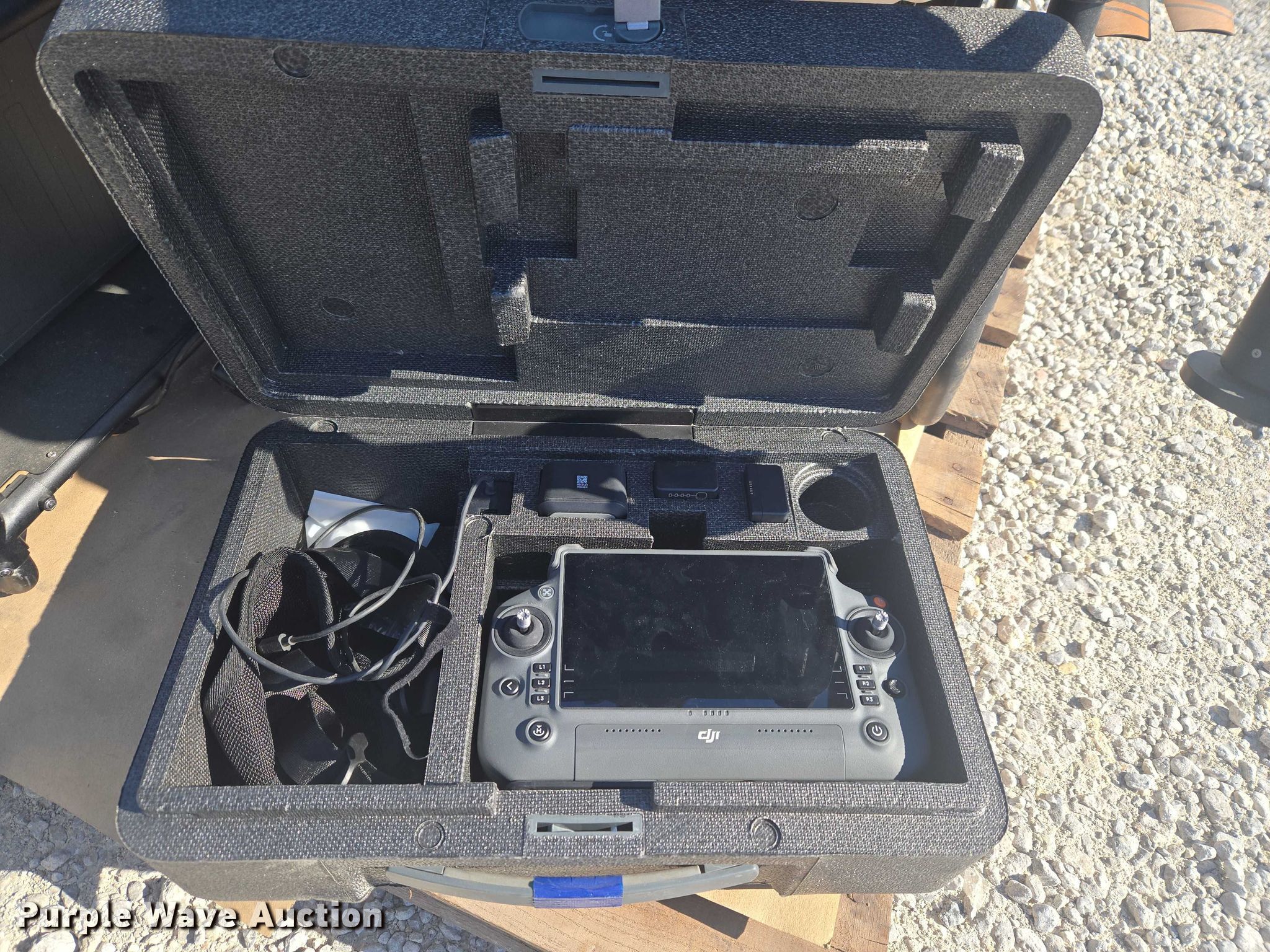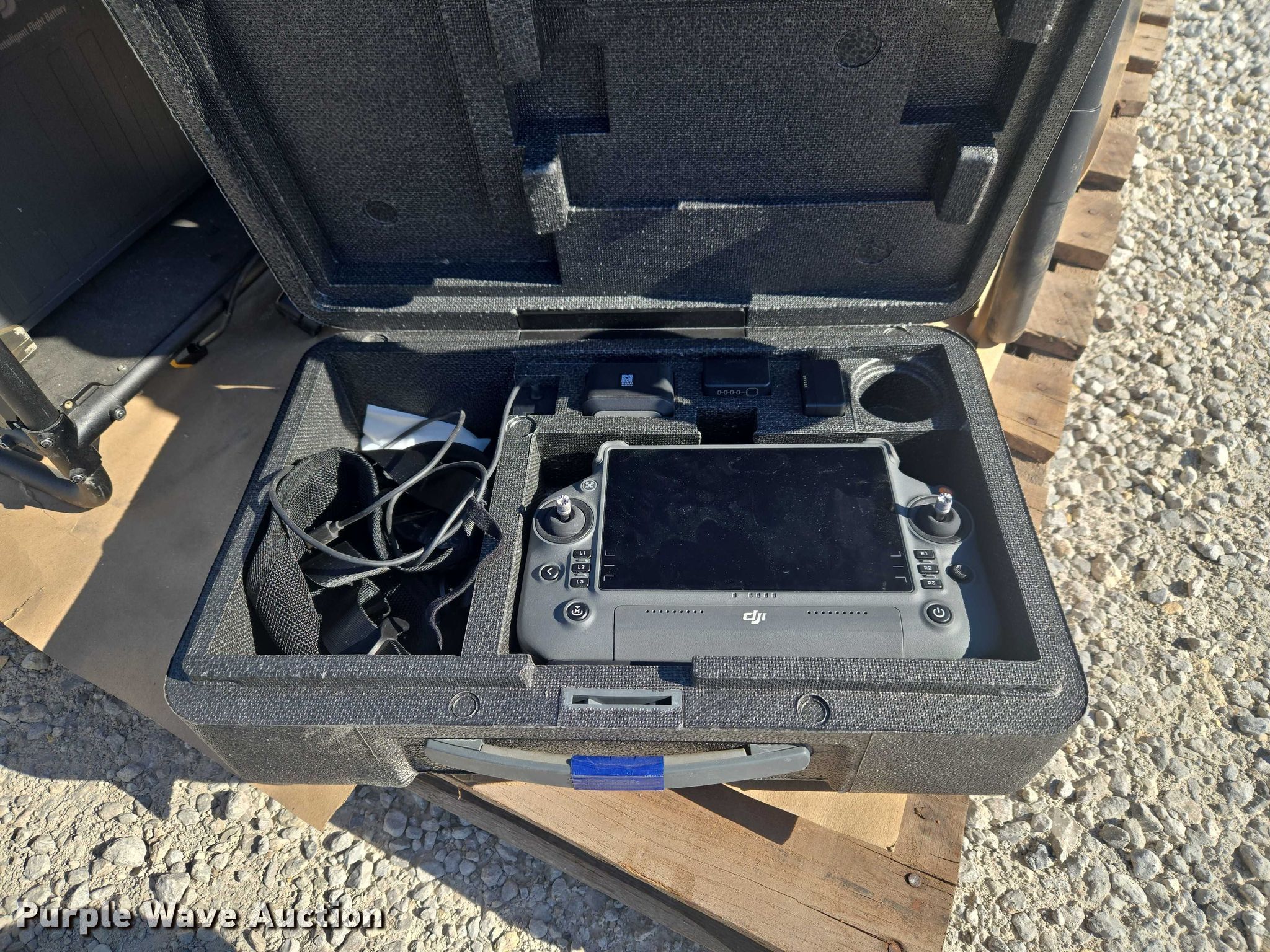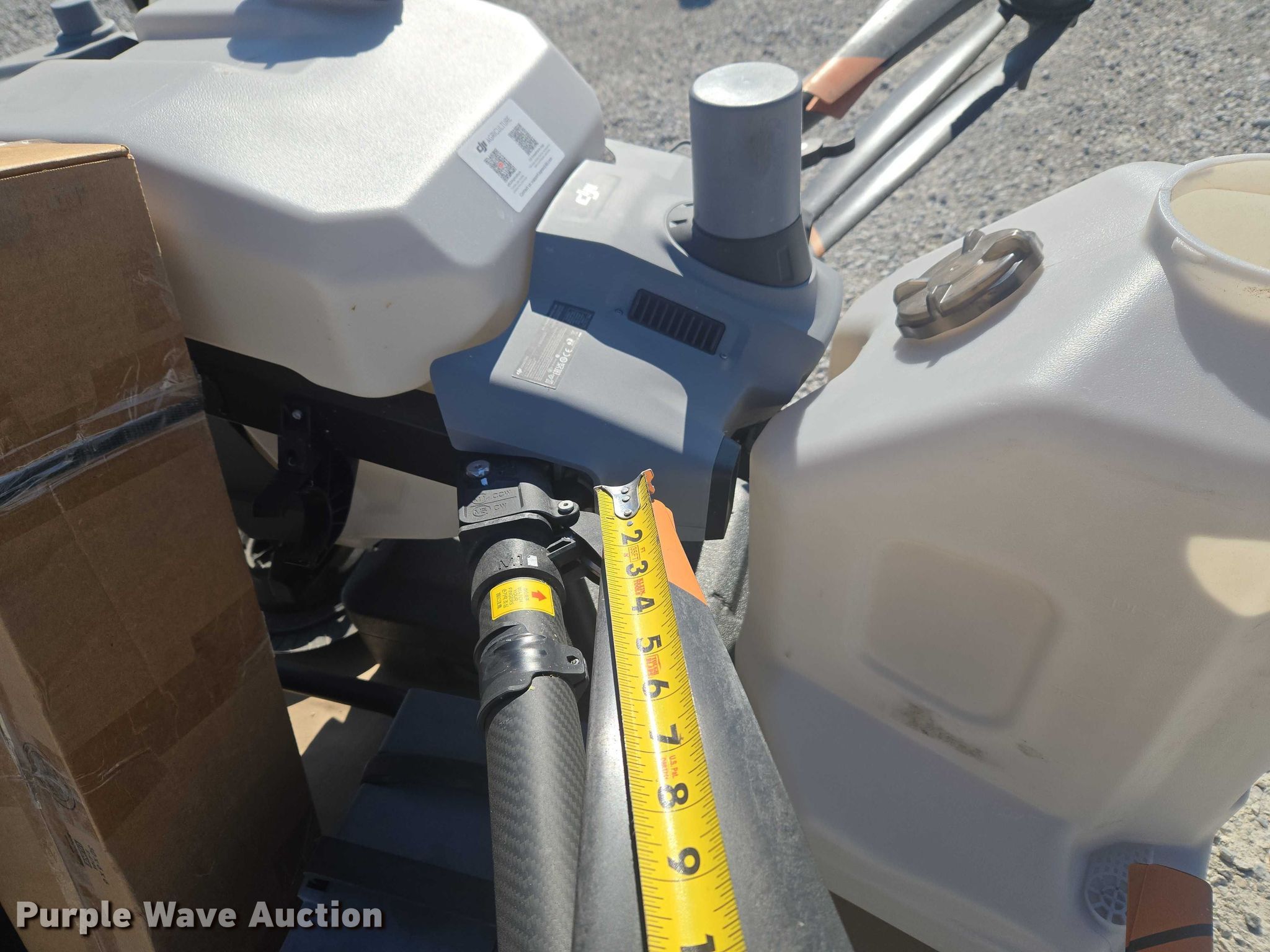 Purple Wave is selling a used Electronics in Indiana. This item is a DJI AGRAS T40 drone with the following: Serial: 64TBL8H0020049, Parts kit, (2) batteries, Battery station, Liquid tanks, Dry tanks