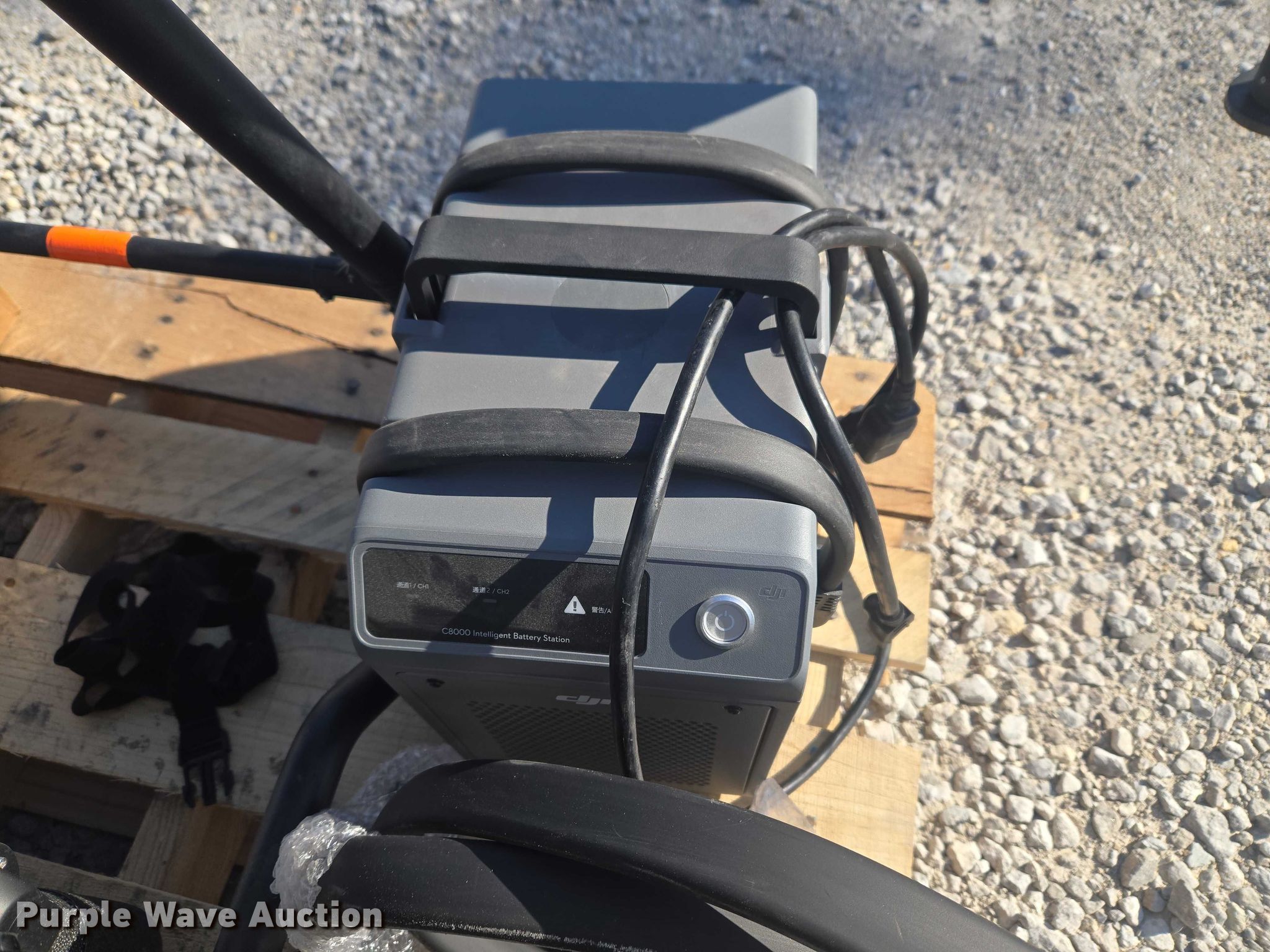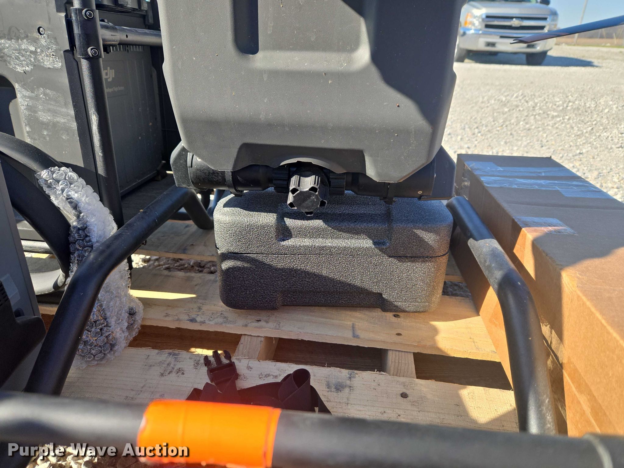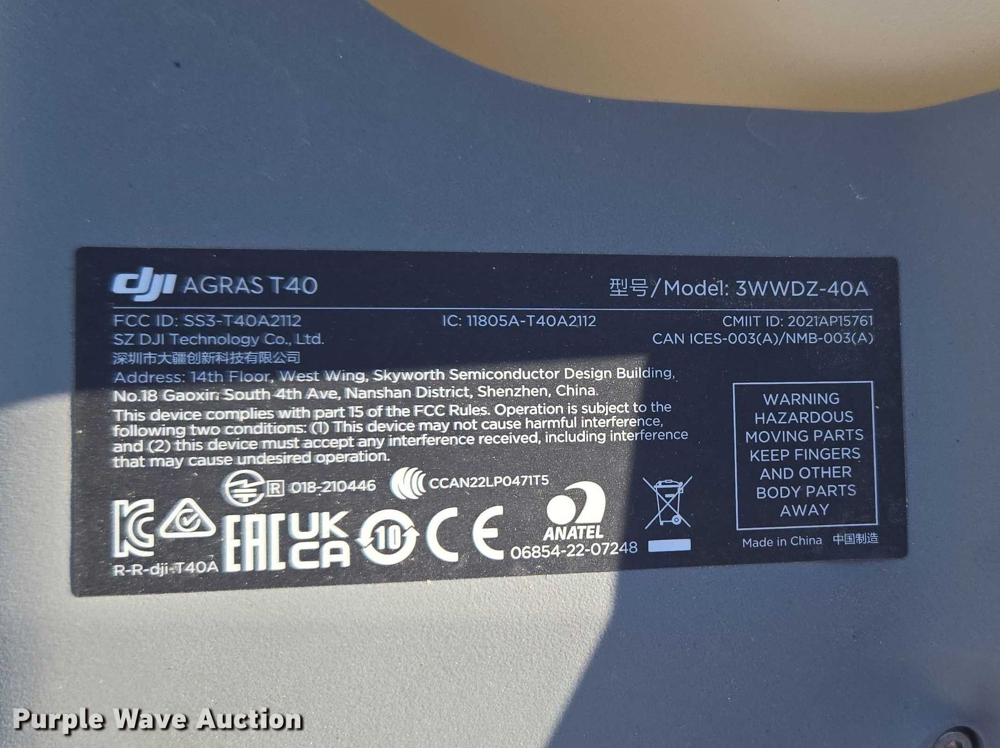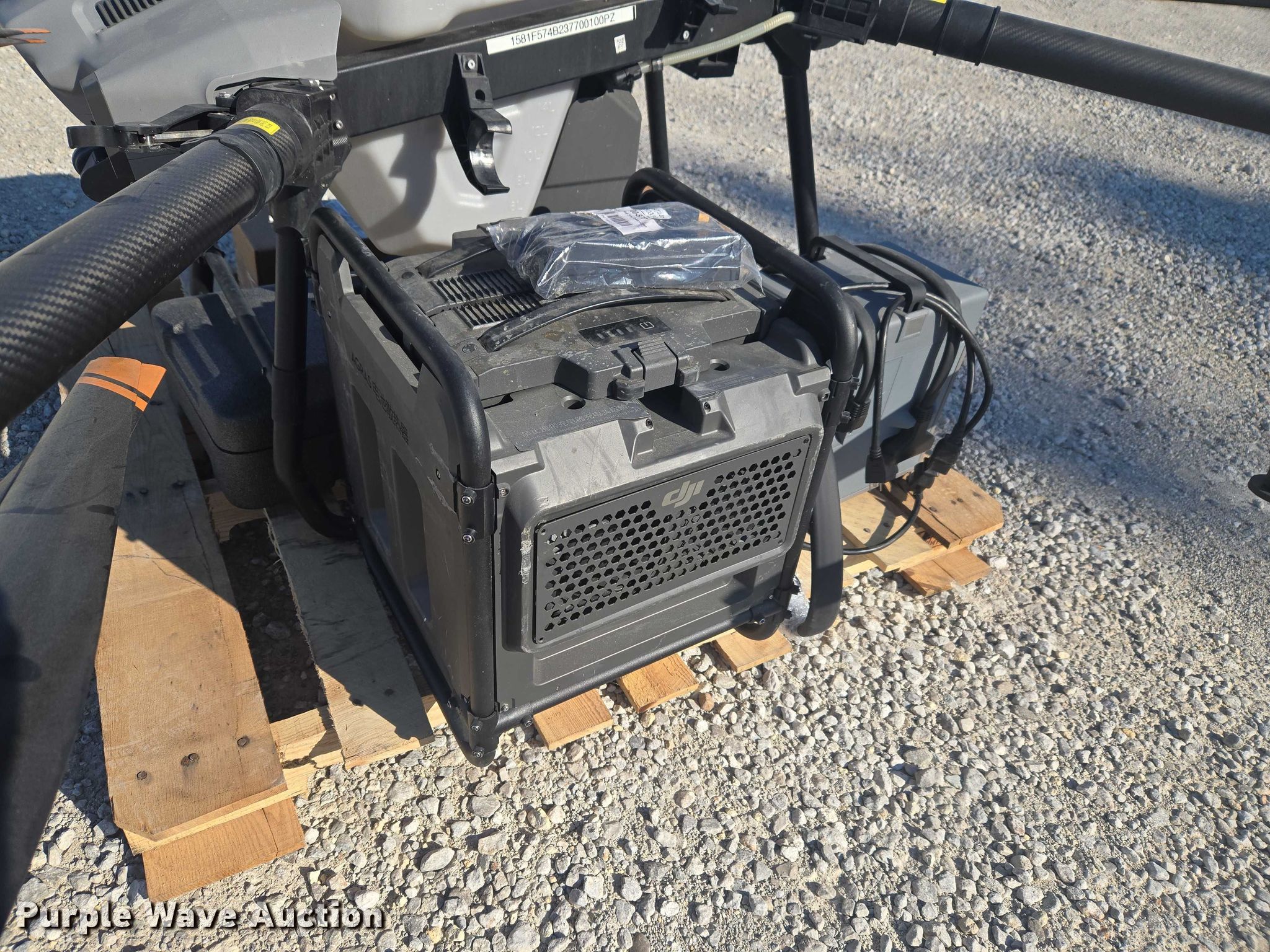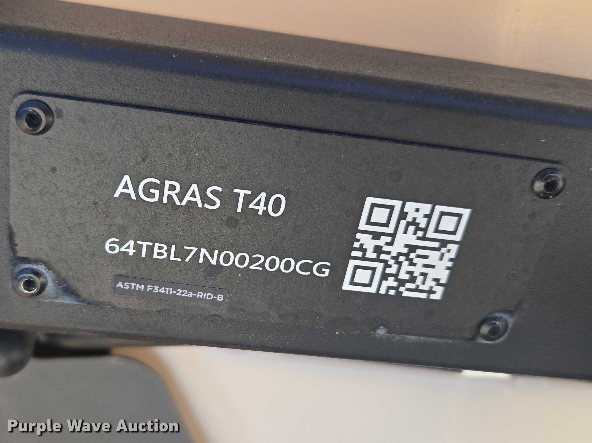 Purple Wave is selling a used Electronics in Indiana. This item is a DJI AGRAS T40 drone with the following: Serial: 6TBL7N00200CG, Parts kit, (2) batteries, Battery station, Liquid tank