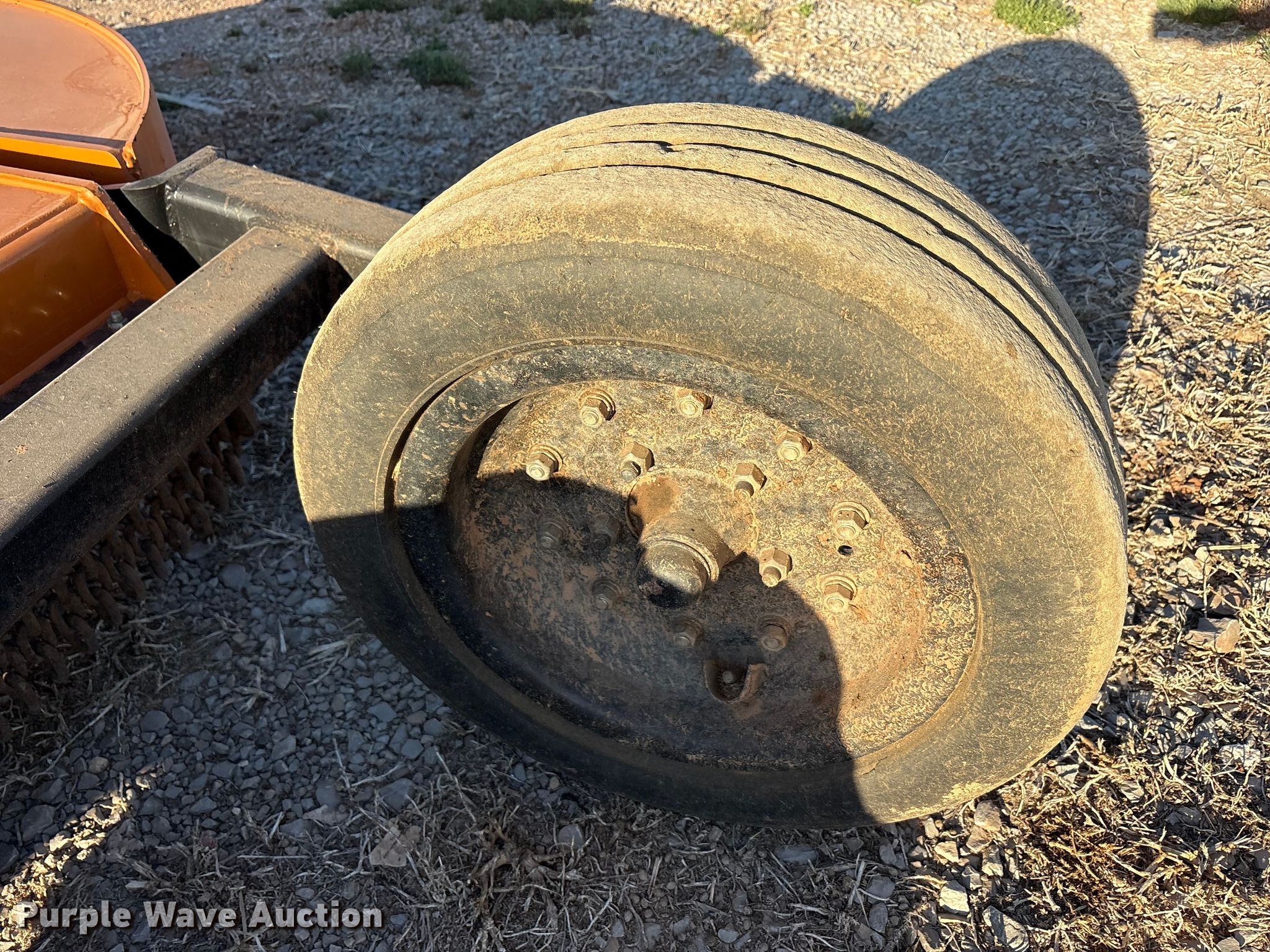 Woods BW180XQ batwing rotary mower. Serial: 1323104. Features Width: 183", Hydraulic lift, Hydraulic fold, PTO: 1000. Tires Solid. Notes Tire missing. Hendershot Construction. Clinton, OK 73601