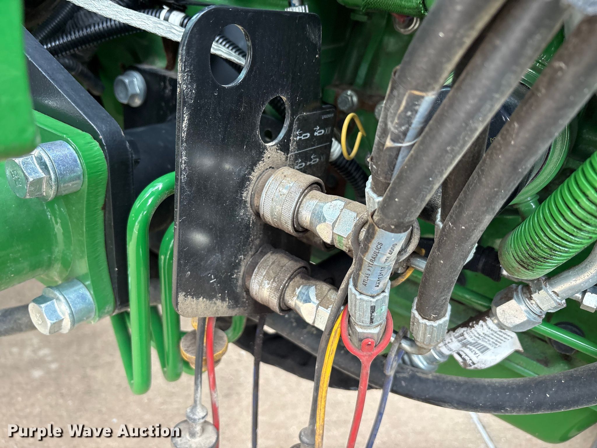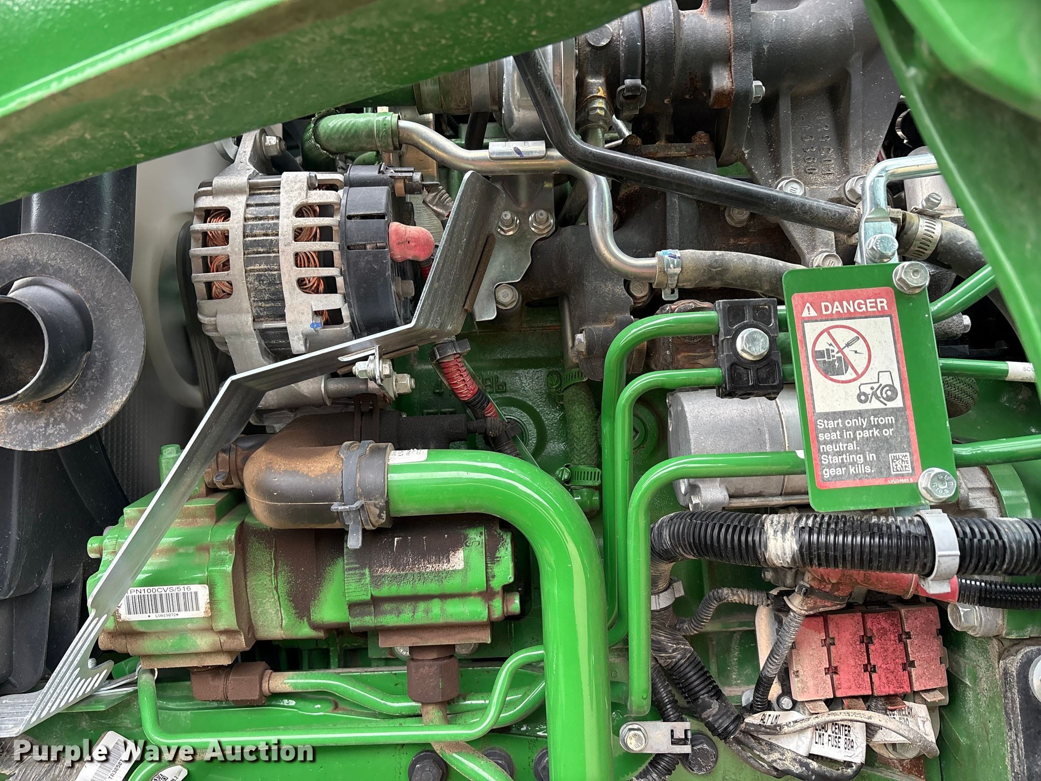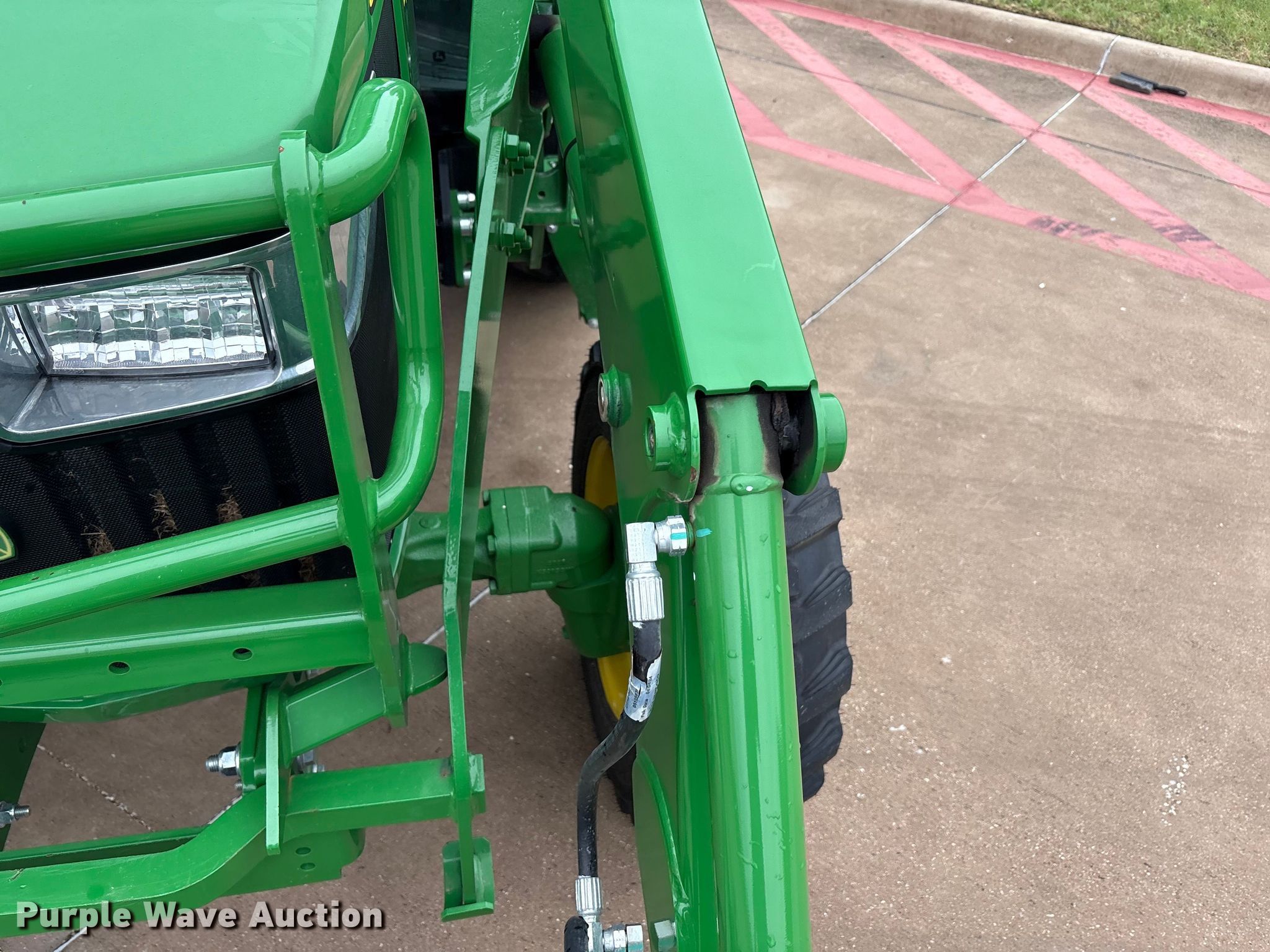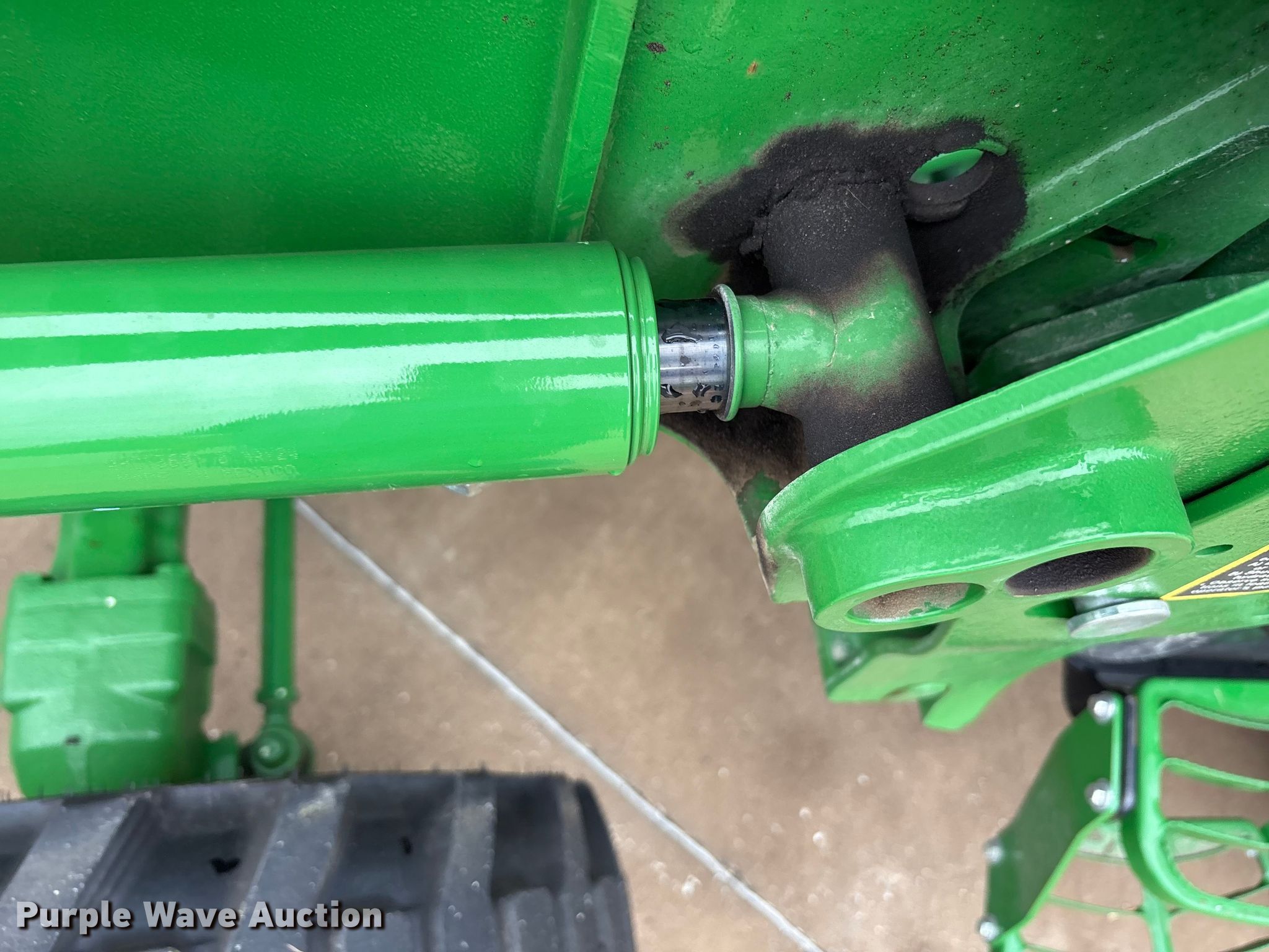 2024 John Deere 4066R tractor. Hours: 44 on meter, Serial: 1LV4066RJRR418572. Engine John Deere, Cylinders: 4. Transmission Hydrostatic, Differential lock. Operators station AC. Features PTO: 540, Three point Top link, Hydraulic remote sets Front: 2, Loader ready, Loader John Deere 440R, Quick attach, Self-leveling, Controls: Joystick, Bucket Width: 75".. Tires Front: 260/70-16.5, Rear: 440/80-24IND. Kubota Tractor Corp. Grapevine, TX 76051