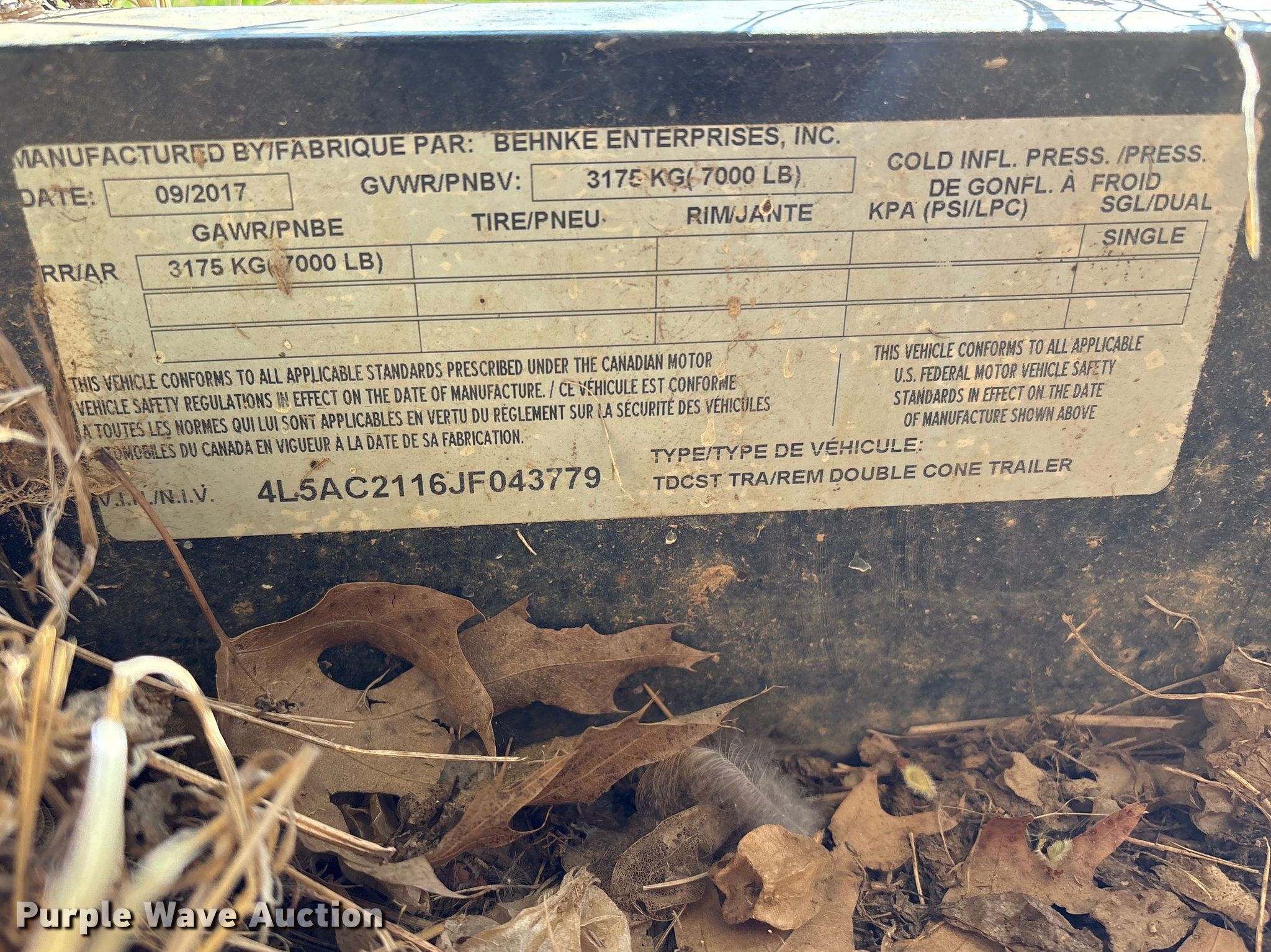 Purple Wave is selling a used Tank Trailer in Oklahoma. This item is a 2018 Behnke nurse tank trailer with the following: VIN: 4L5AC2116JF043779