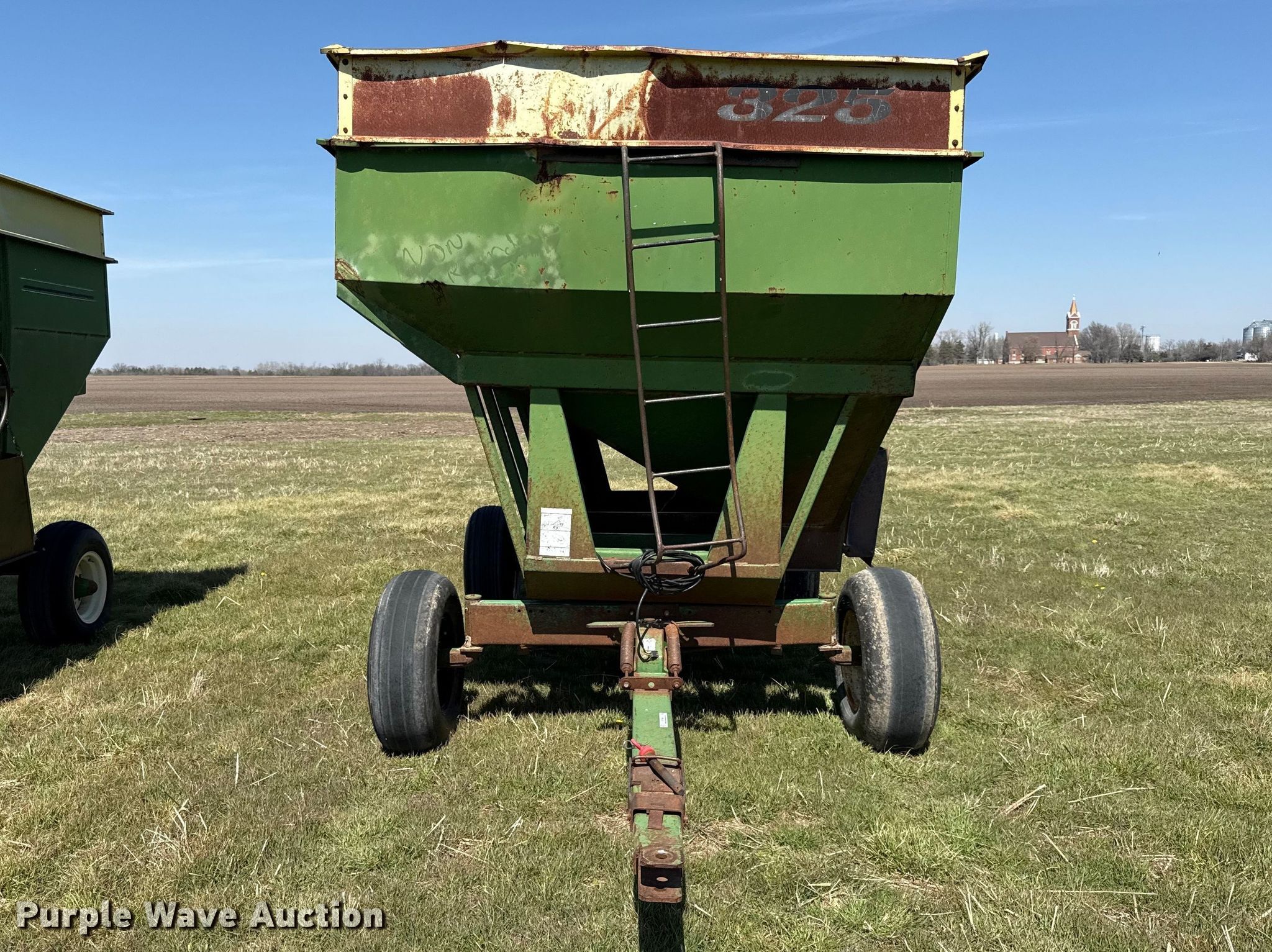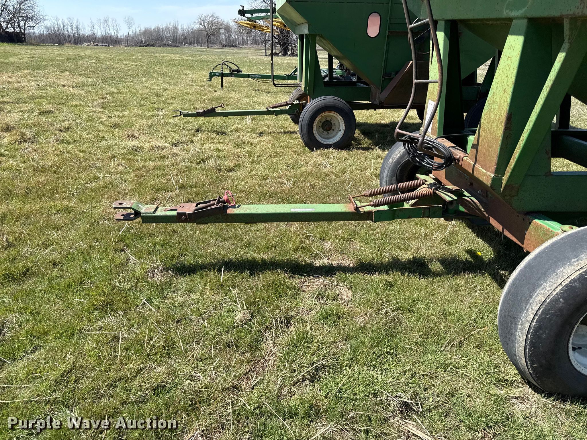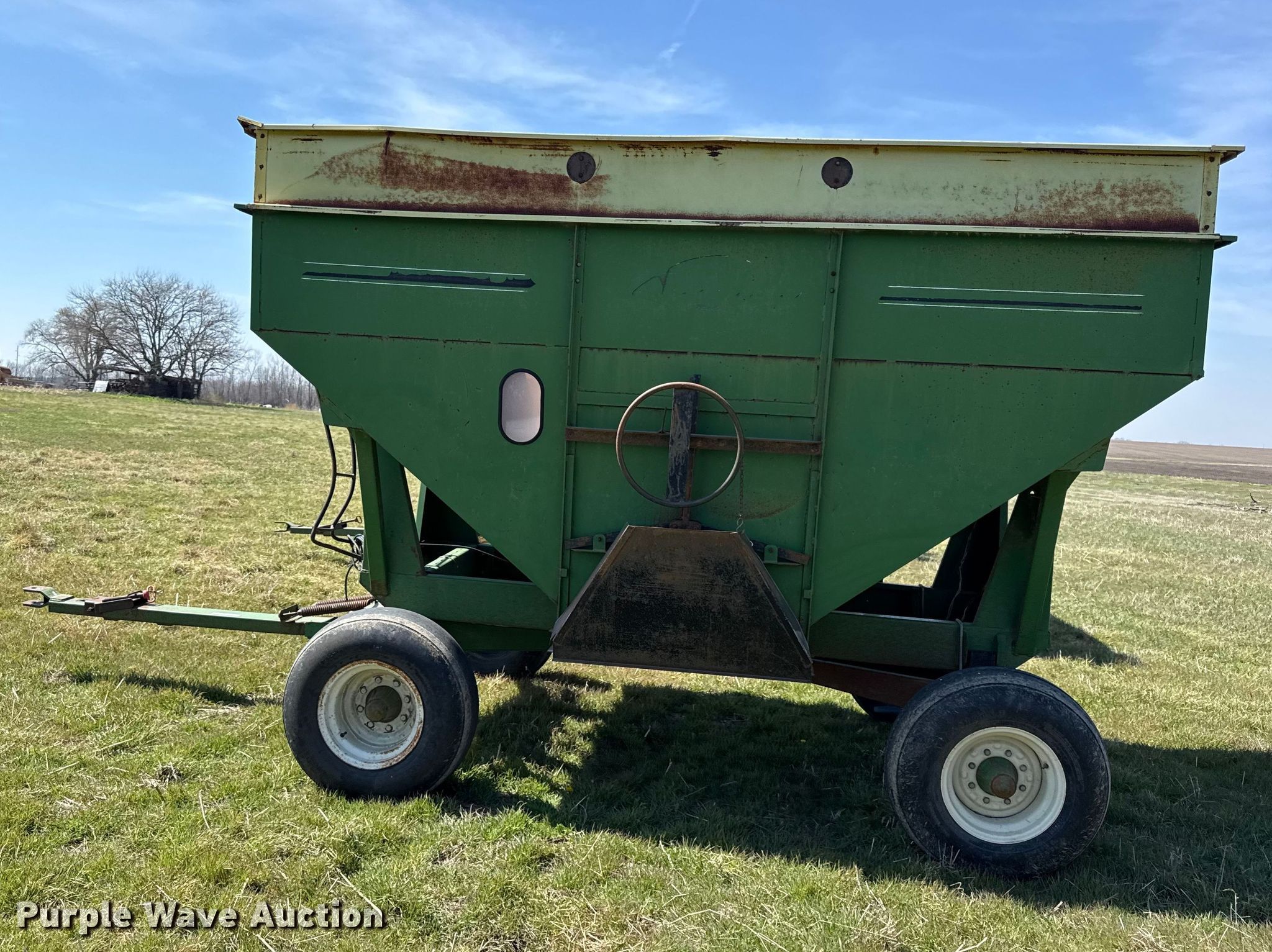 Purple Wave is selling a used Grain Cart or Gravity Wagon in Kansas. This item is a Demco 325 gravity wagon with the following: Capacity: 325 bushels, Shut-off gate: Manual, Hitch: Pin