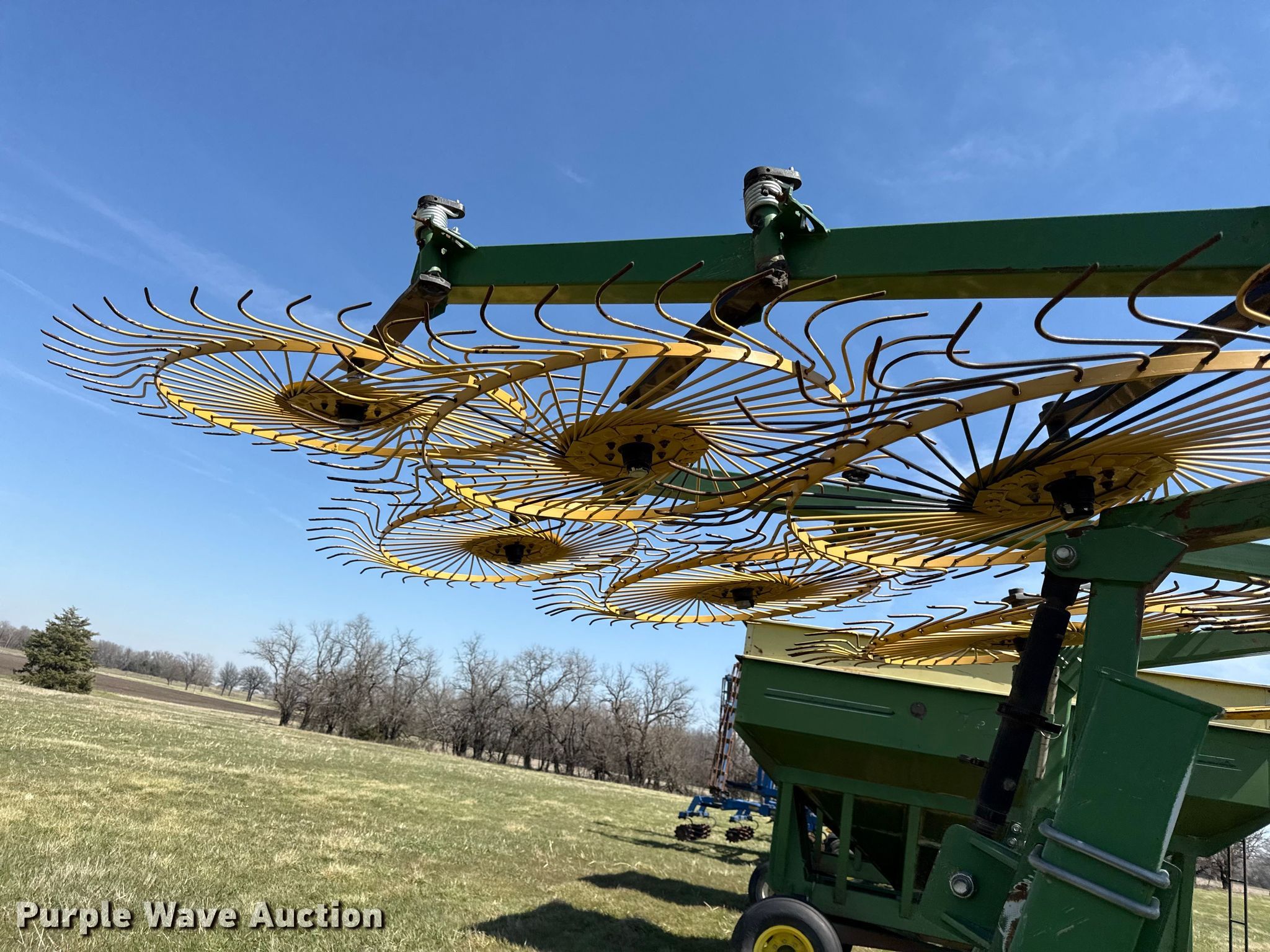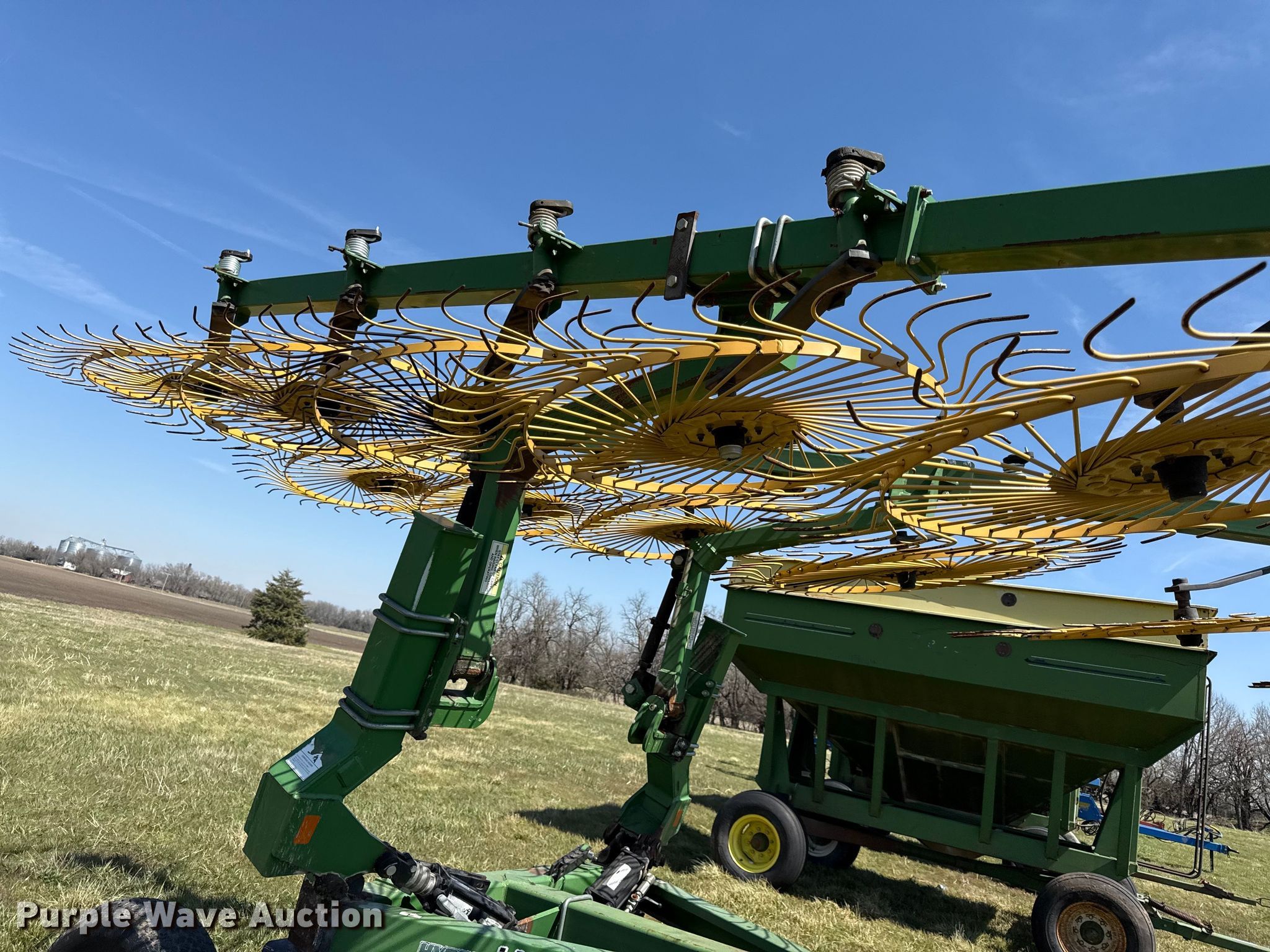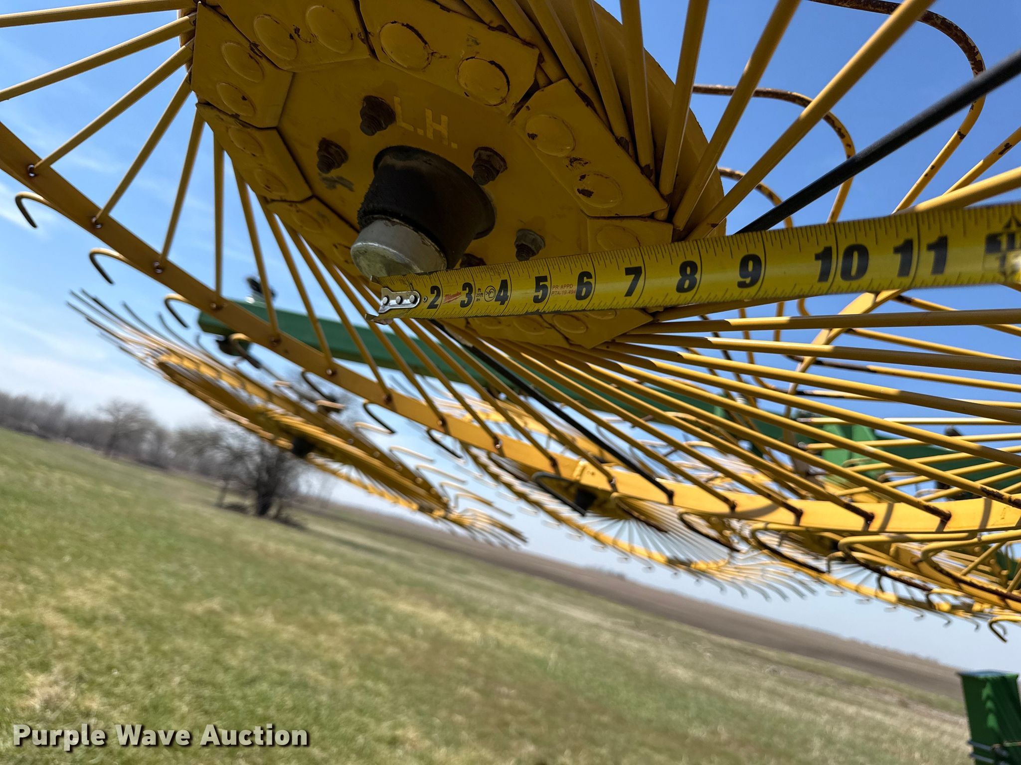 Purple Wave is selling a used Hay Rake in Kansas. This item is a Ogden Hybrid hay rake with the following: Wheels: 12, Diameter: 52", Hydraulic lift, Hydraulic fold, Ground driven