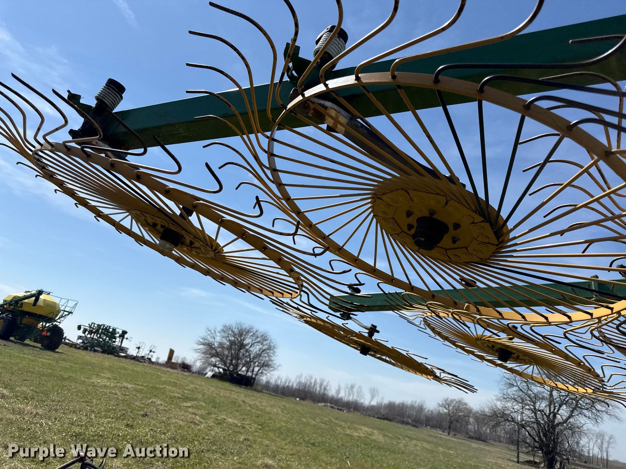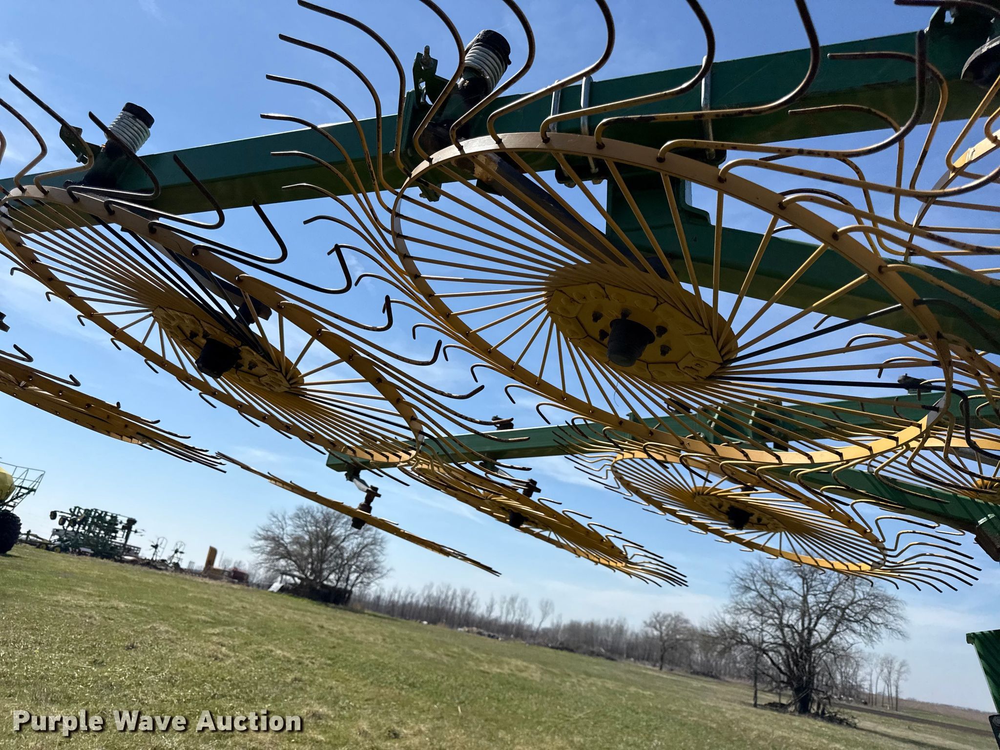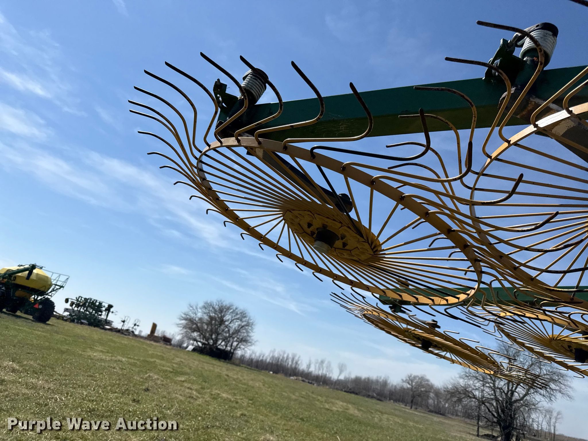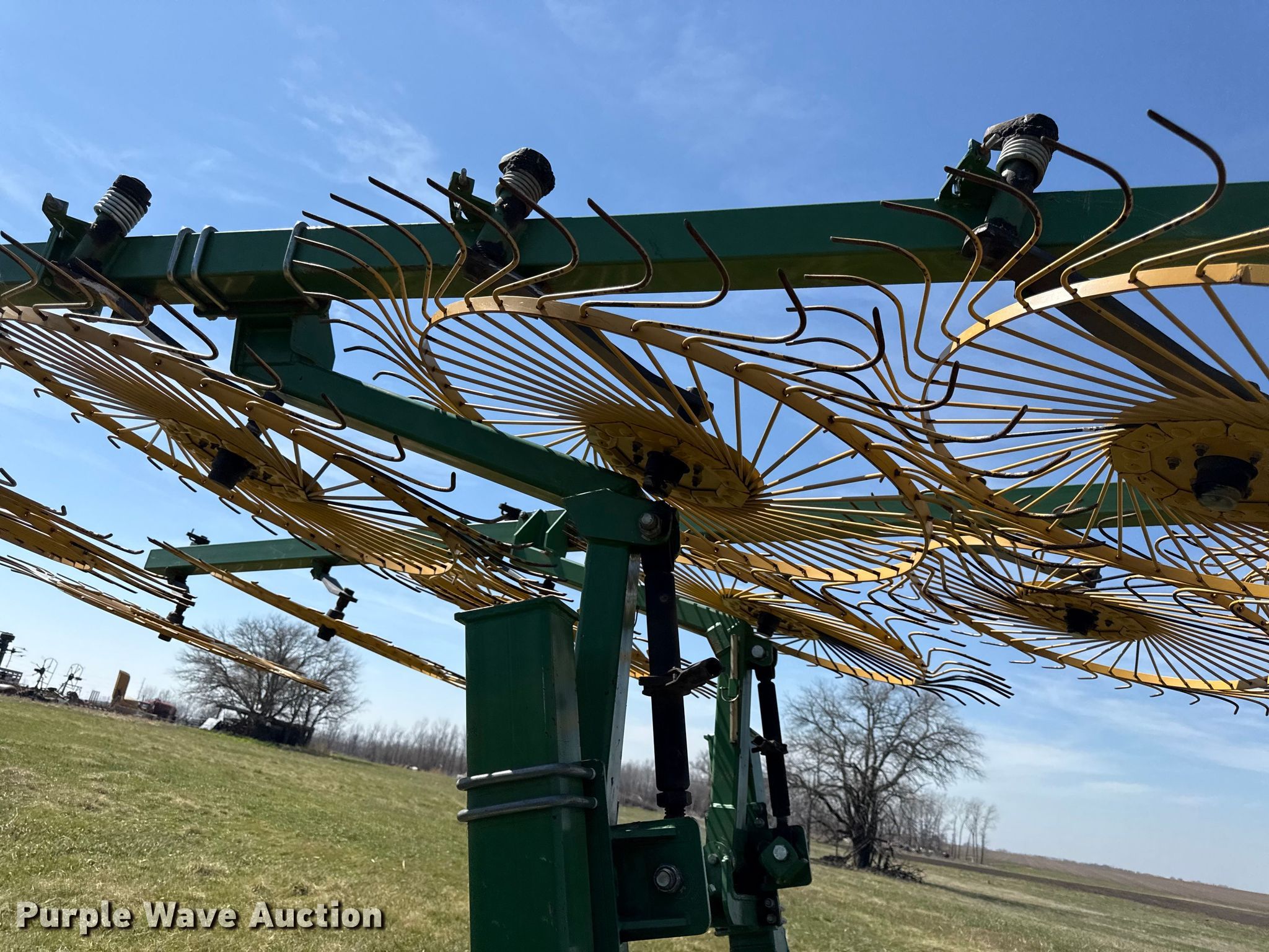 Purple Wave is selling a used Hay Rake in Kansas. This item is a Ogden Hybrid hay rake with the following: Wheels: 12, Diameter: 52", Hydraulic lift, Hydraulic fold, Ground driven