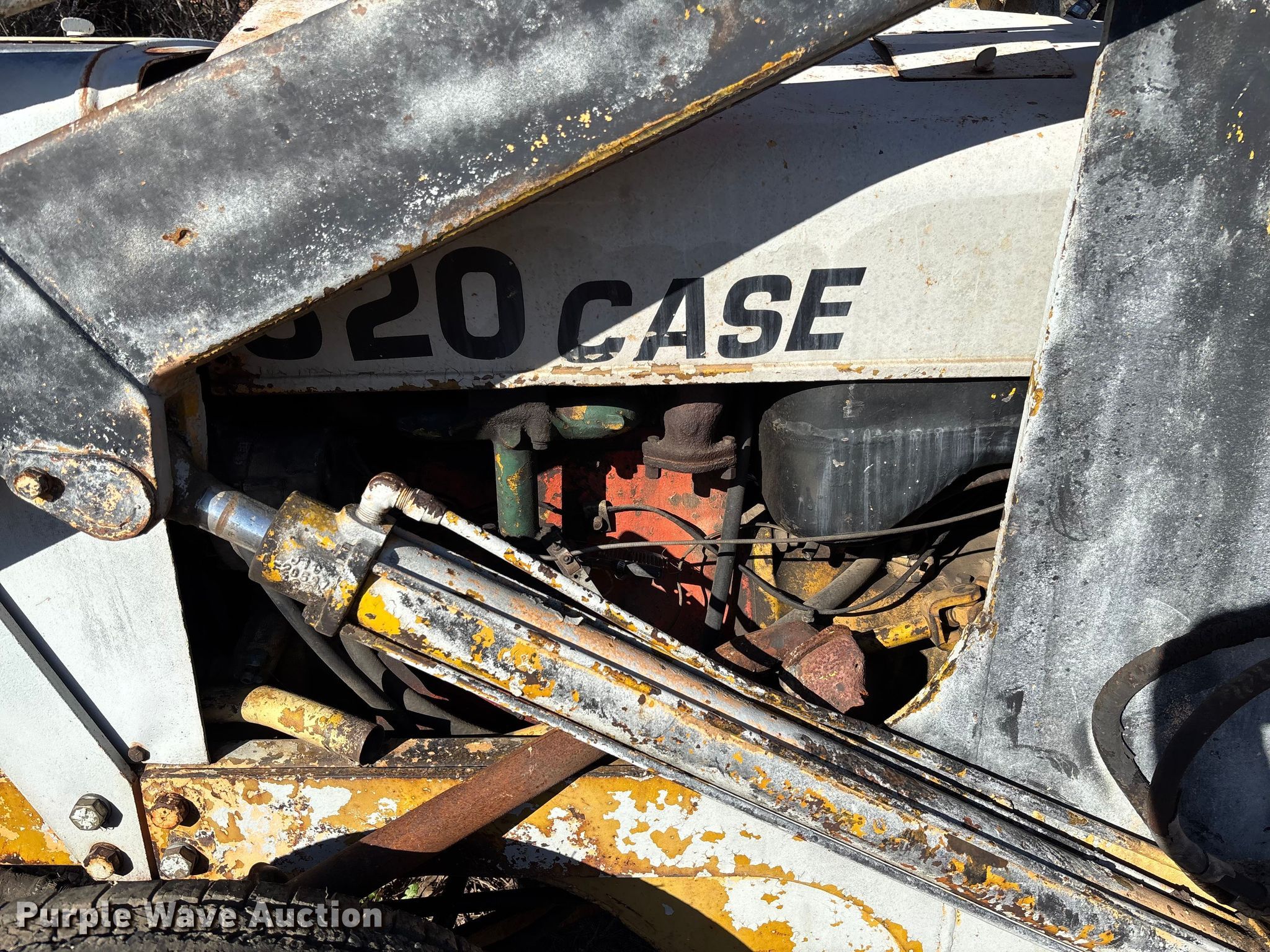 Case 320 tractor. Hours: 480on meter, Hours: Unknown, Serial: 6108012. Engine Cylinders: 4, Fuel type: Gas. Transmission Shuttle shift, 4F - 4R. Operators station Backhoe controls: Three stick. Features Loader Bucket Width: 57", Cutting edge: Bolt-on, Backhoe Bucket Width: 16", Teeth: 4.. Tires Front: 235/85R16, Rear: 16.9-24. Notes Parts missing, Non-operational unit. Reed's Iron & Metal. Linn Creek, MO 65052