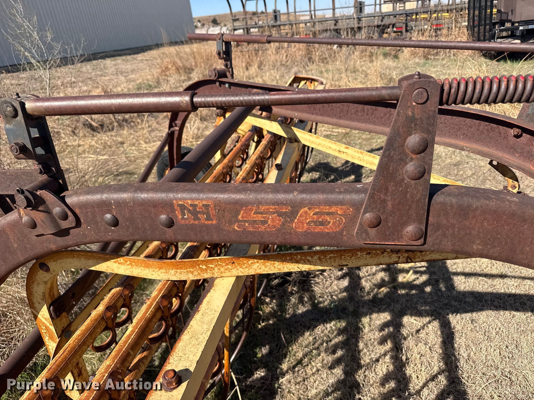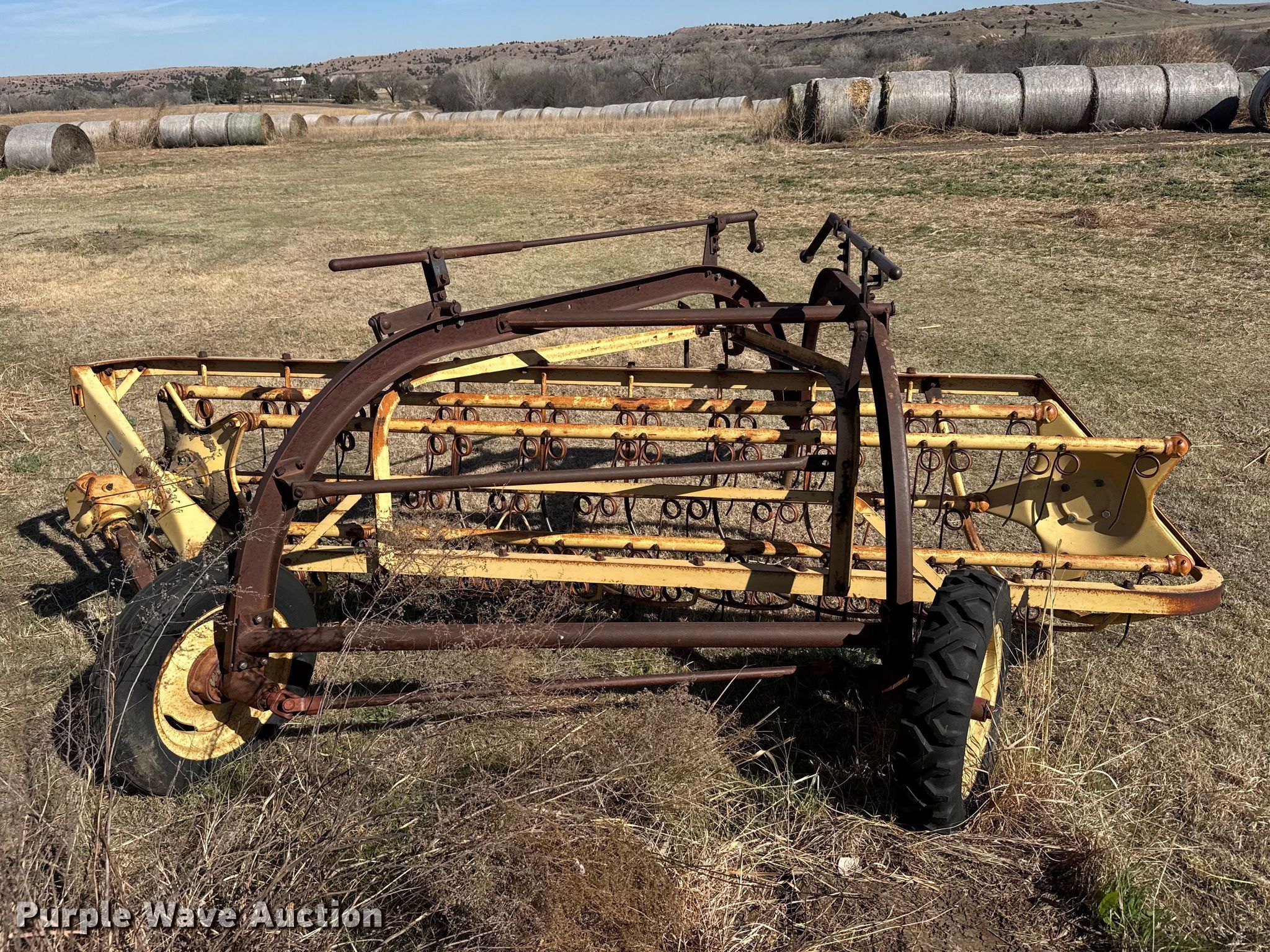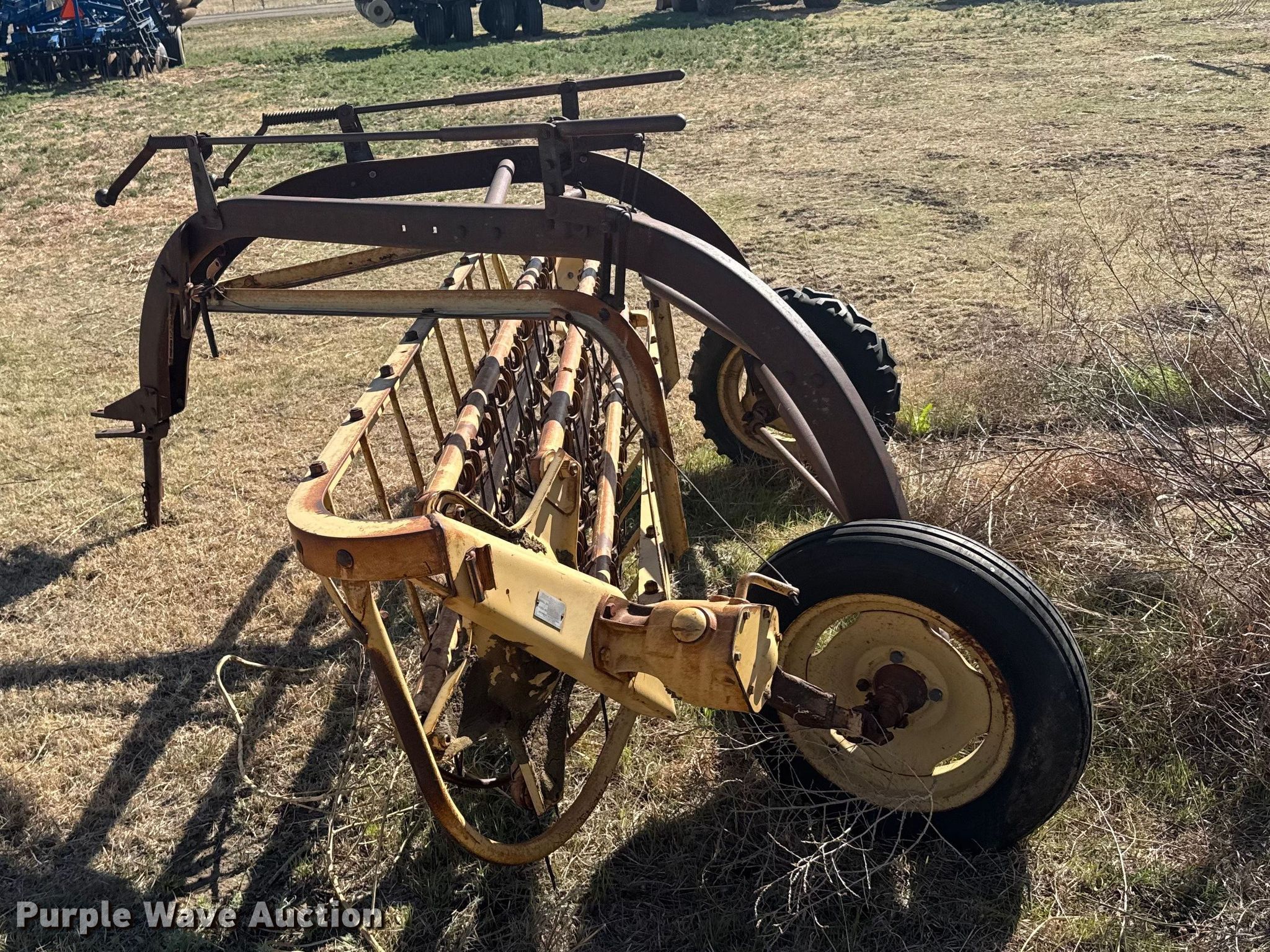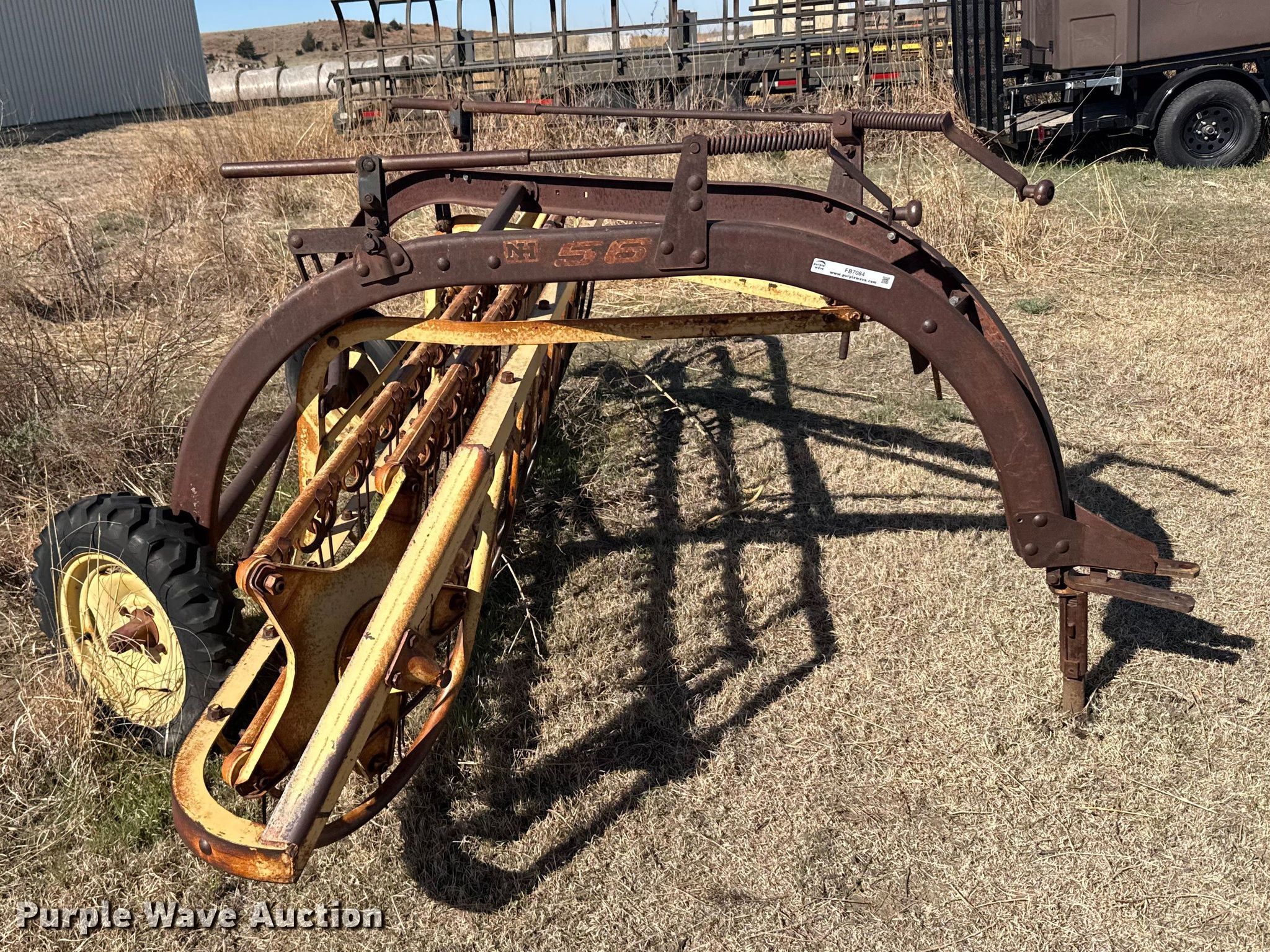 New Holland 56 rotary hay rake. Serial: 19179. Features Width: 11', Ground driven. Tires Size: 5.00-15.5. Russell, KS 67665