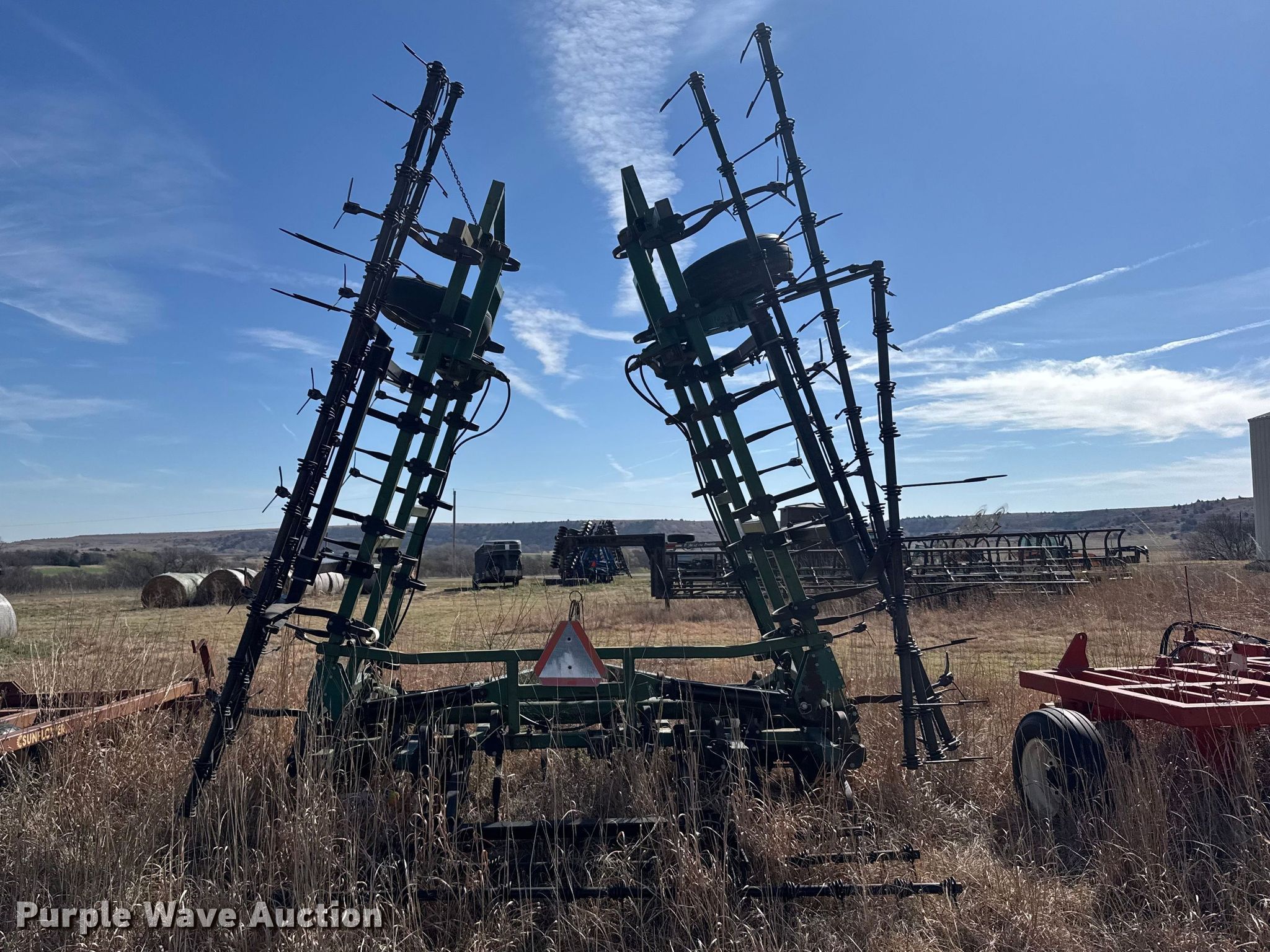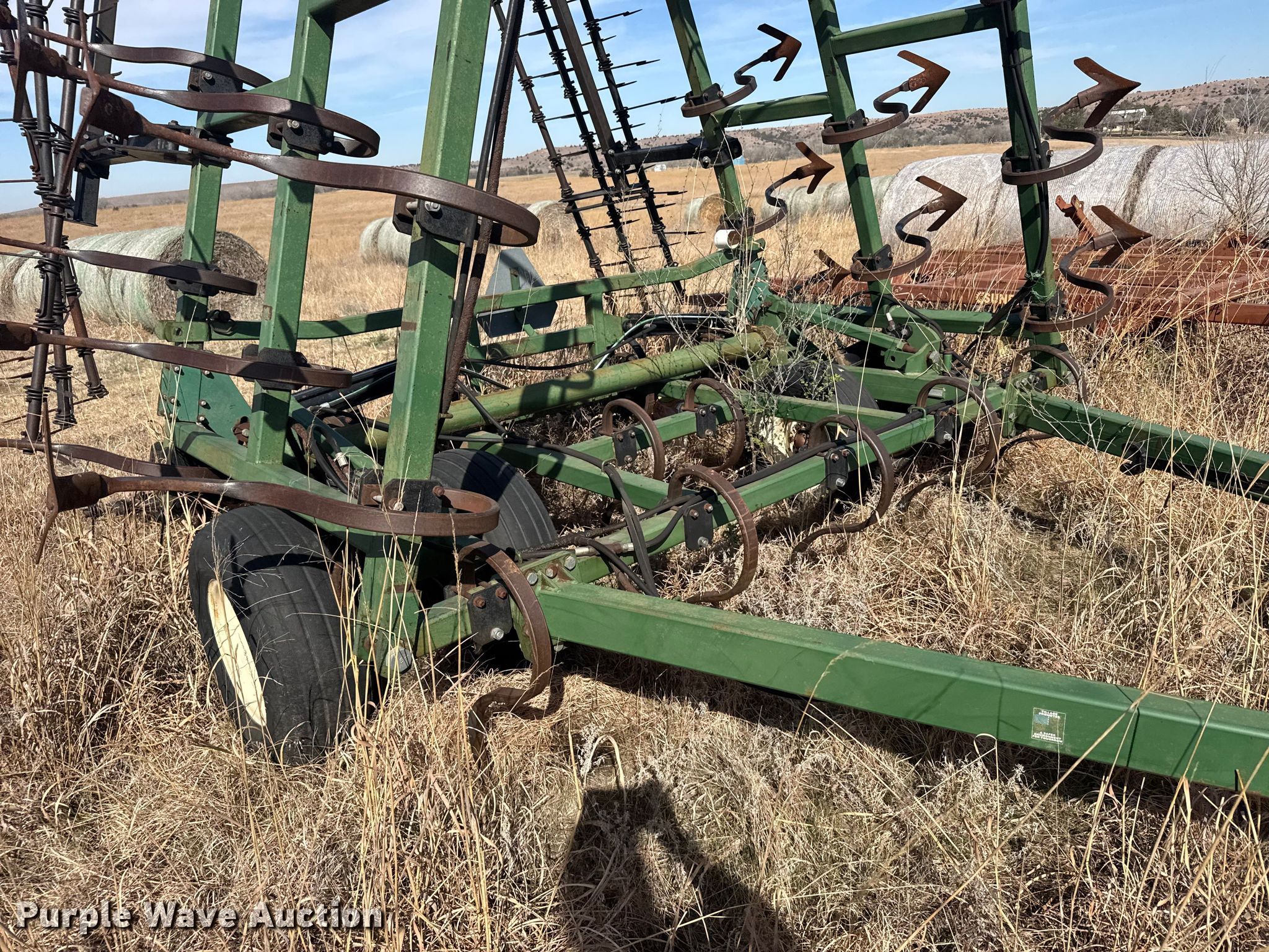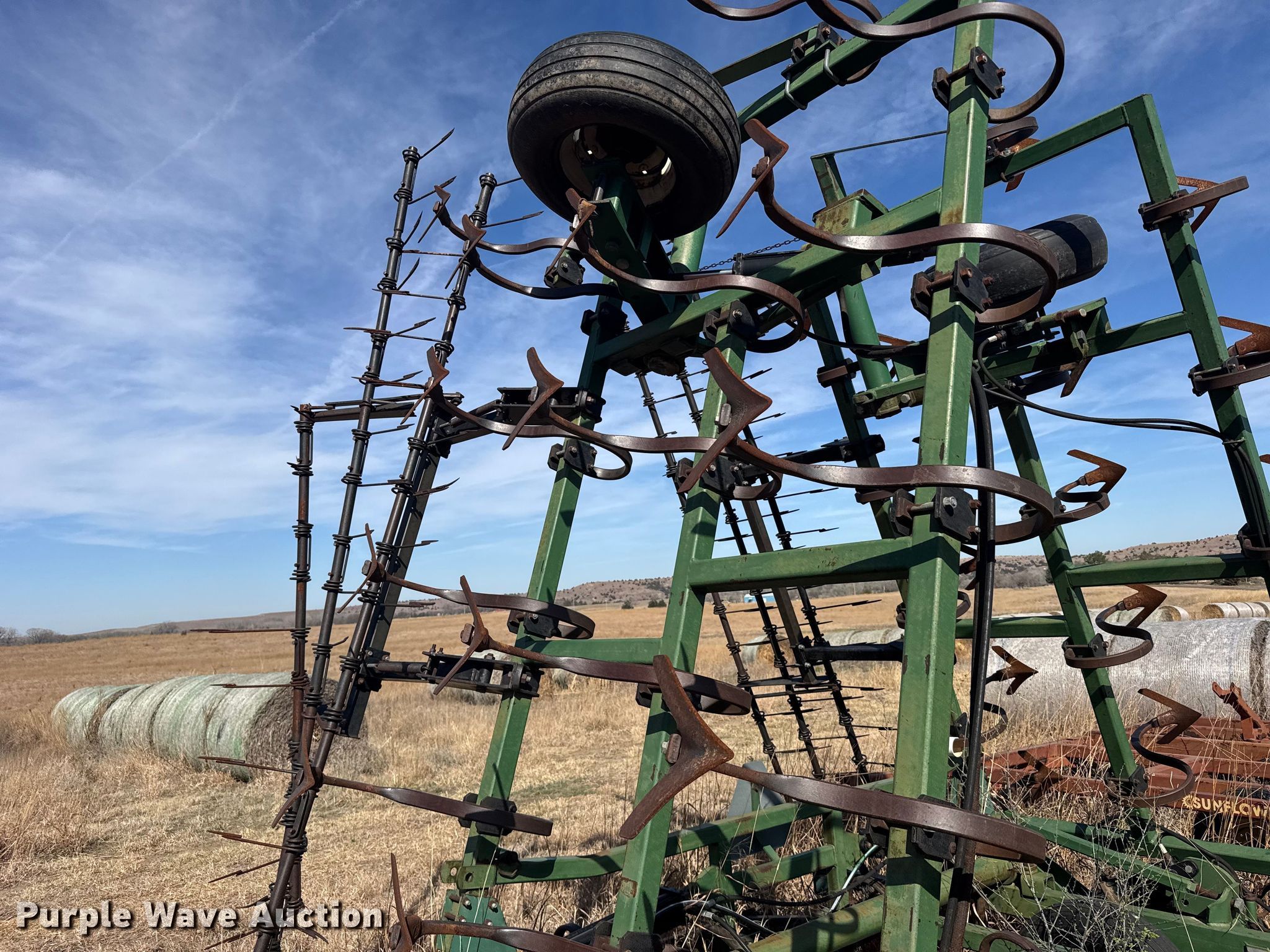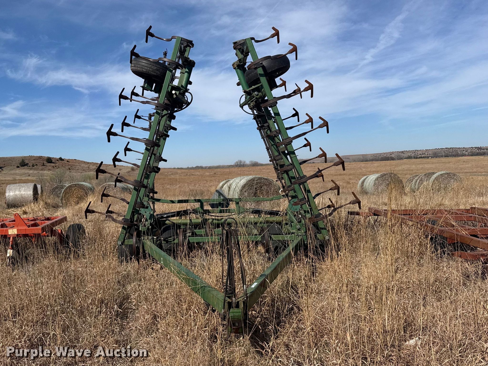 Purple Wave is selling a used Field Cultivator or Sweep Plow in Kansas. This item is a C100-30 field cultivator with the following: Overall width: 28', Serial: 6S09695