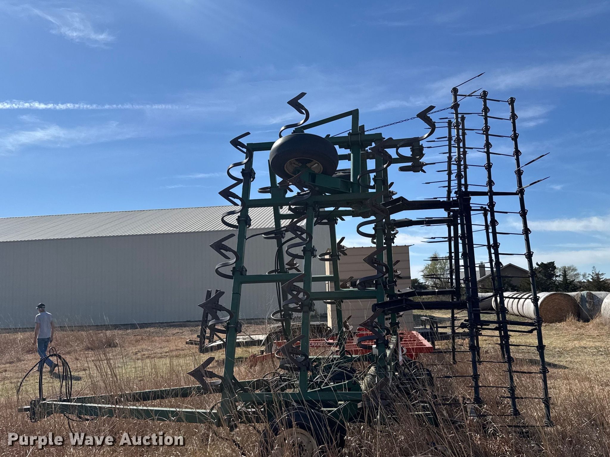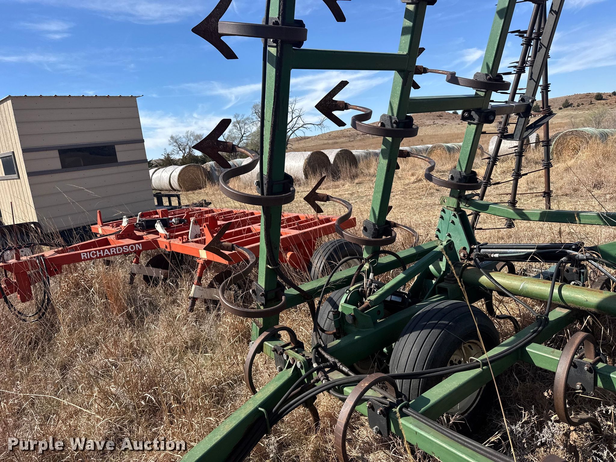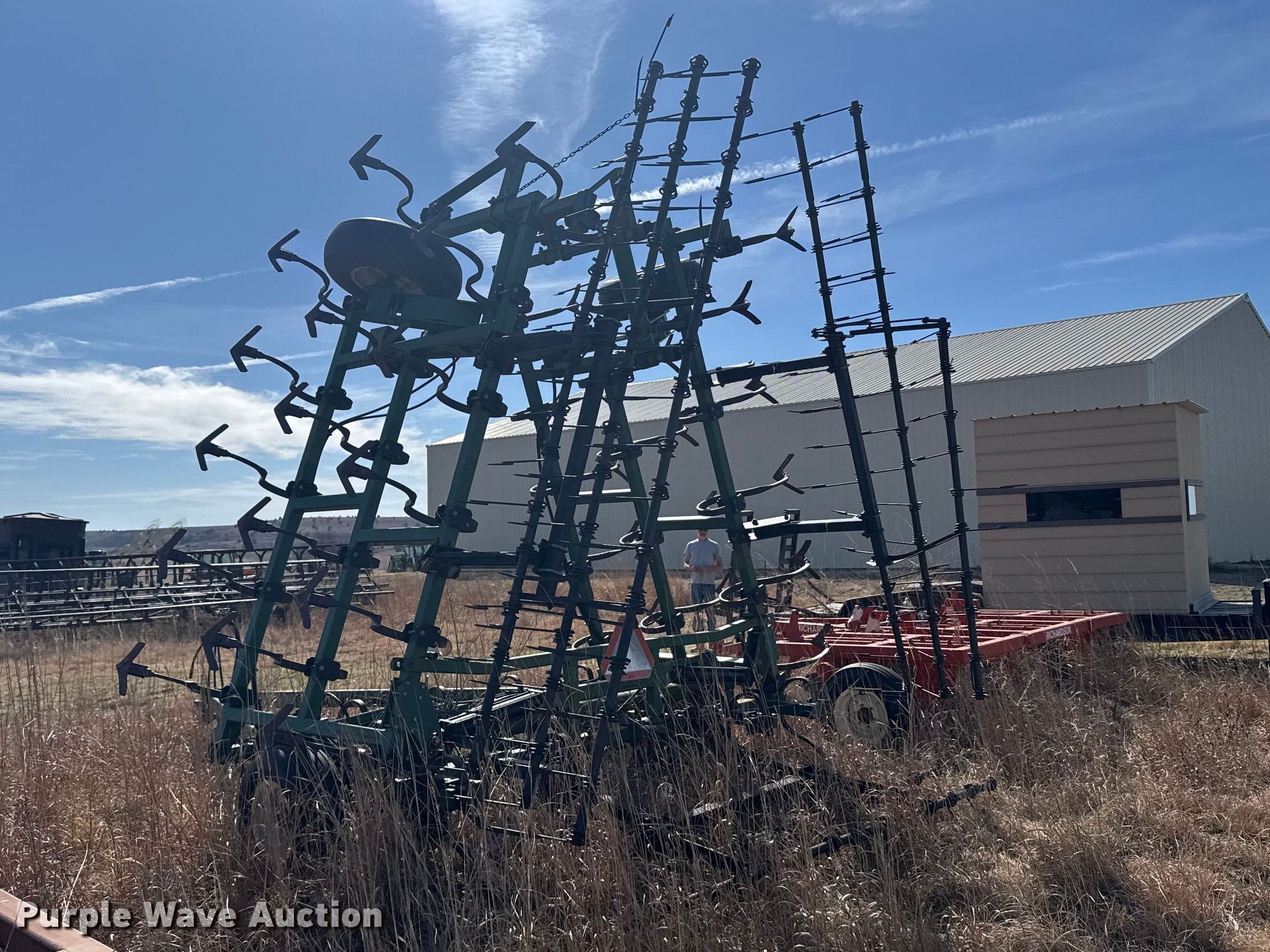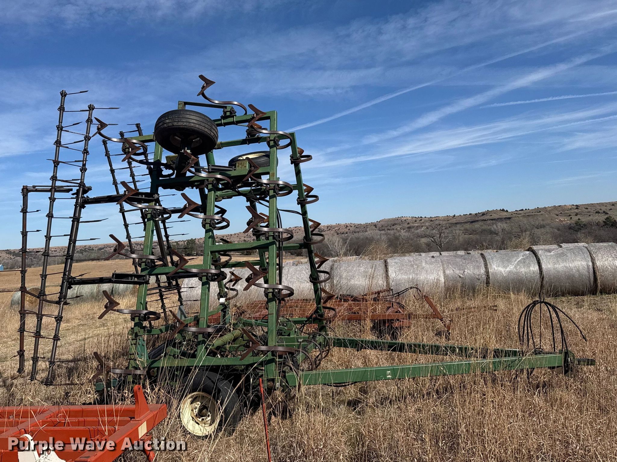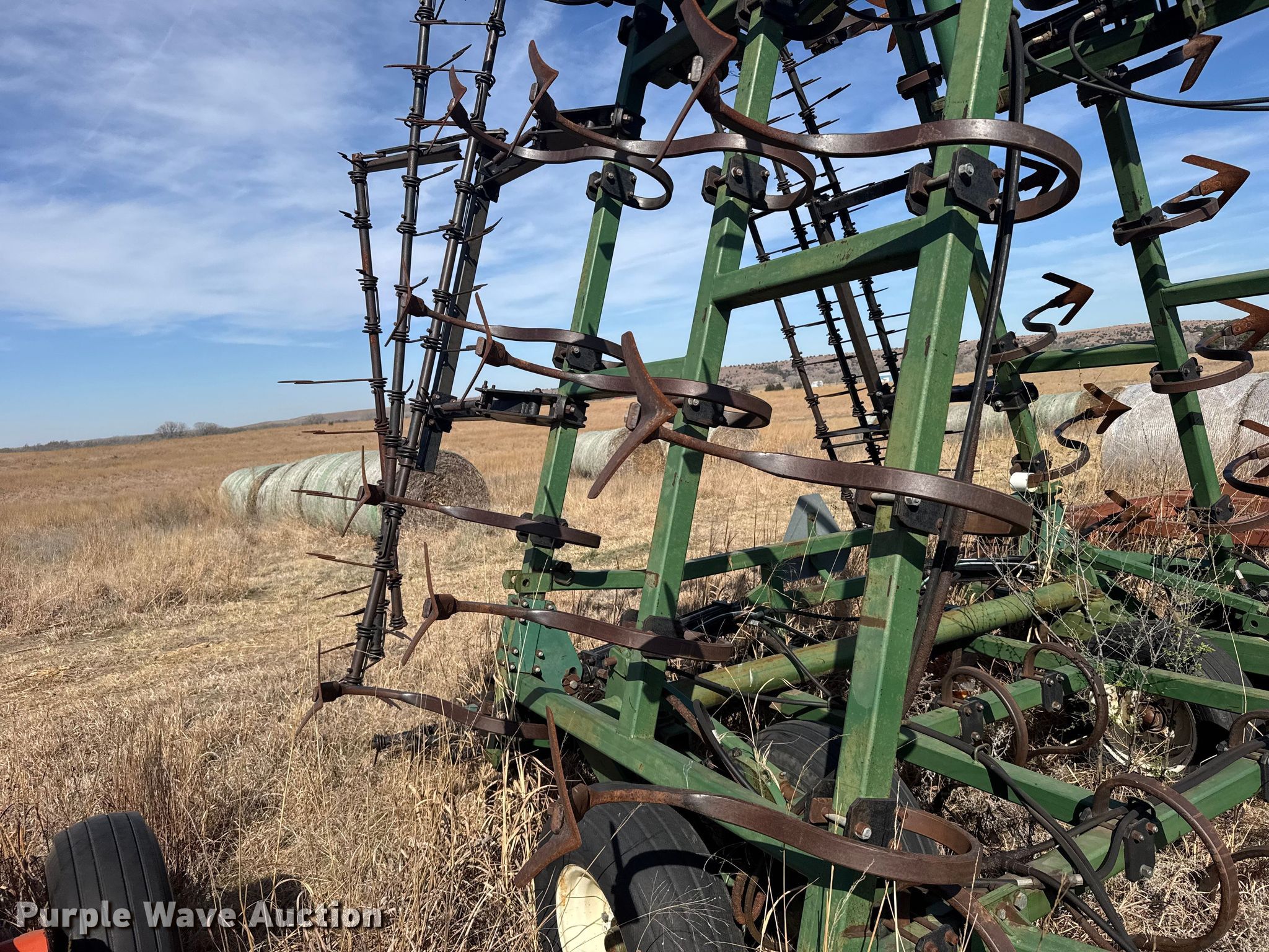 Purple Wave is selling a used Field Cultivator or Sweep Plow in Kansas. This item is a C100-30 field cultivator with the following: Overall width: 28', Serial: 6S09695