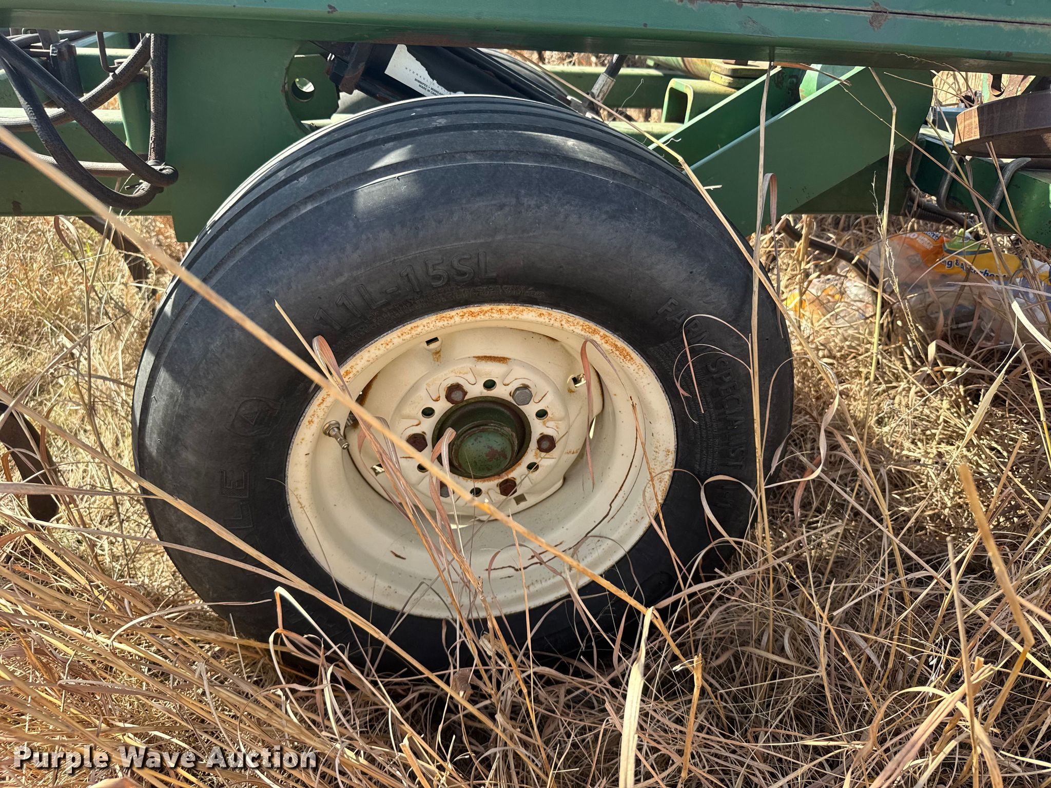 C100-30 field cultivator. Overall width: 28', Serial: 6S09695. Features Shanks: 42, Sweep width: 11", Operation Hydraulic lift, Hydraulic fold, Leveler: Hydraulic, Walking tandem axle, Attachments Tine harrow Harrow bars: 3.. Tires Tire size: 11-15, Gauge wheels Size: 11-15. Russell, KS 67665