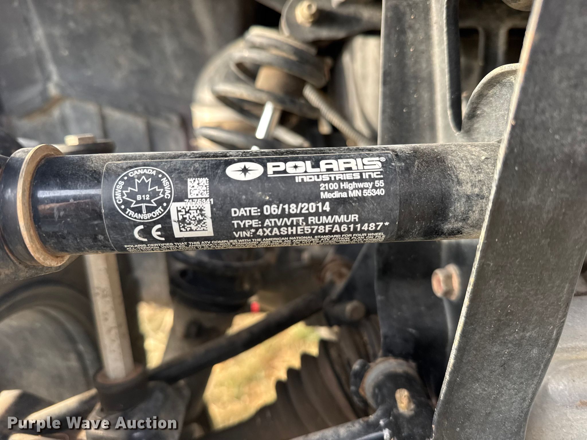 Purple Wave is selling a used ATV in Kansas. This item is a 2015 Polaris 570 so ATV with the following: Miles: 1,247 on odometer, VIN: 4XASHE578FA611487