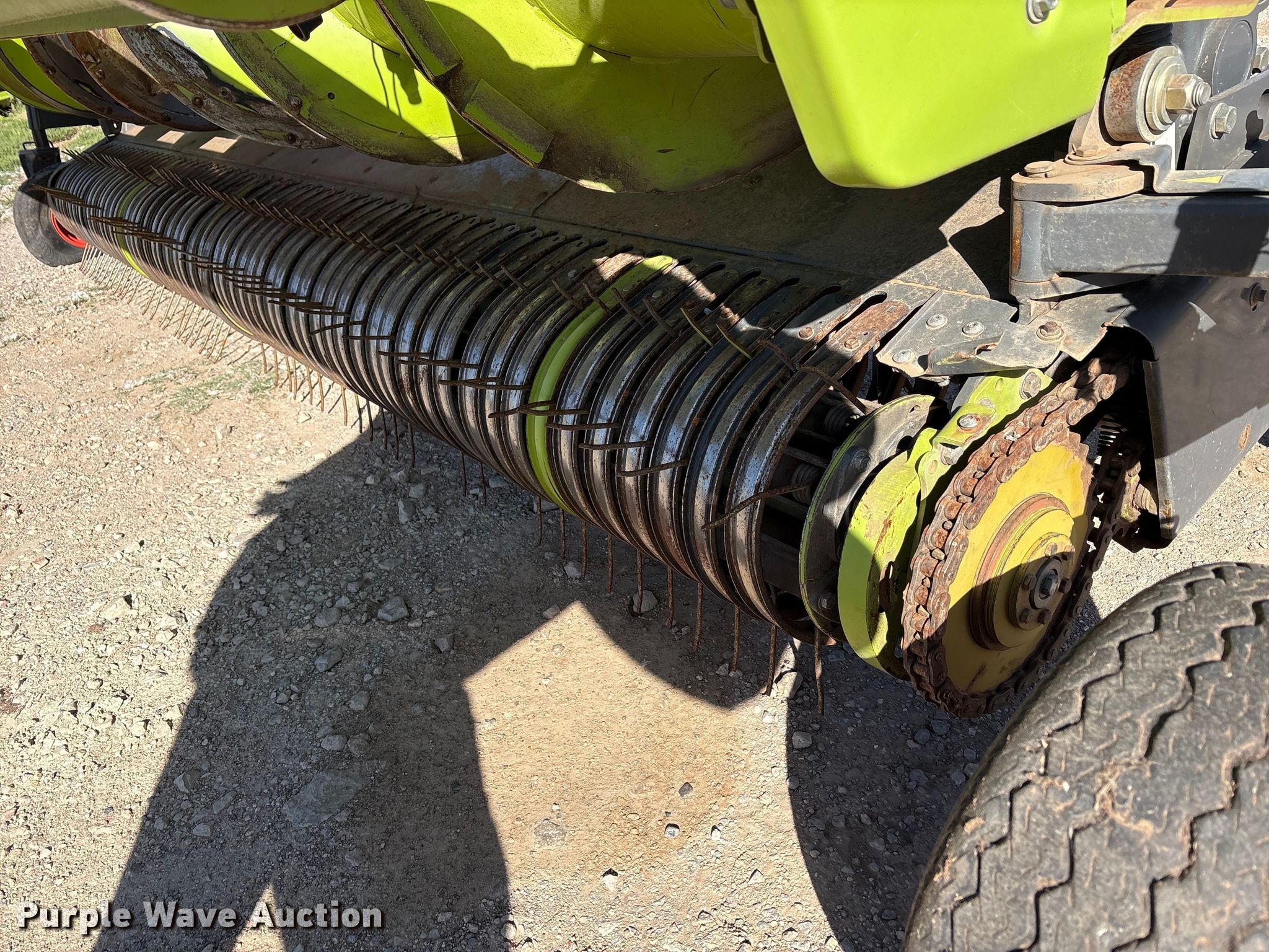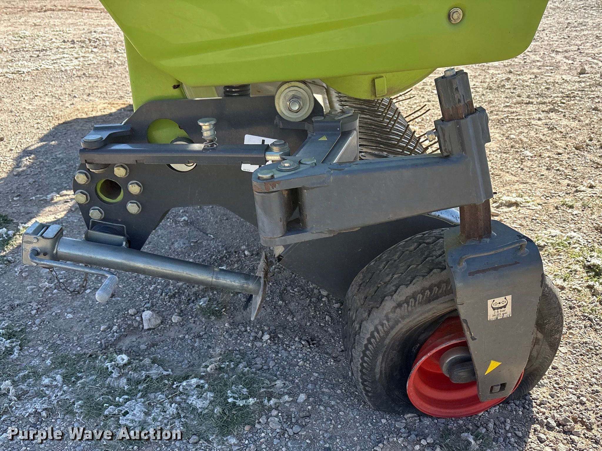 2017 Claas 380 L36 pickup head. Serial: L3801002, Unit #: 631. Features Width: 13', Crop roller, Gauge wheels, Single point coupler, Drivelines: Single. Tires Tire size: 18.5x8.5-8. Thompson Field Services. Rotan, TX 79546