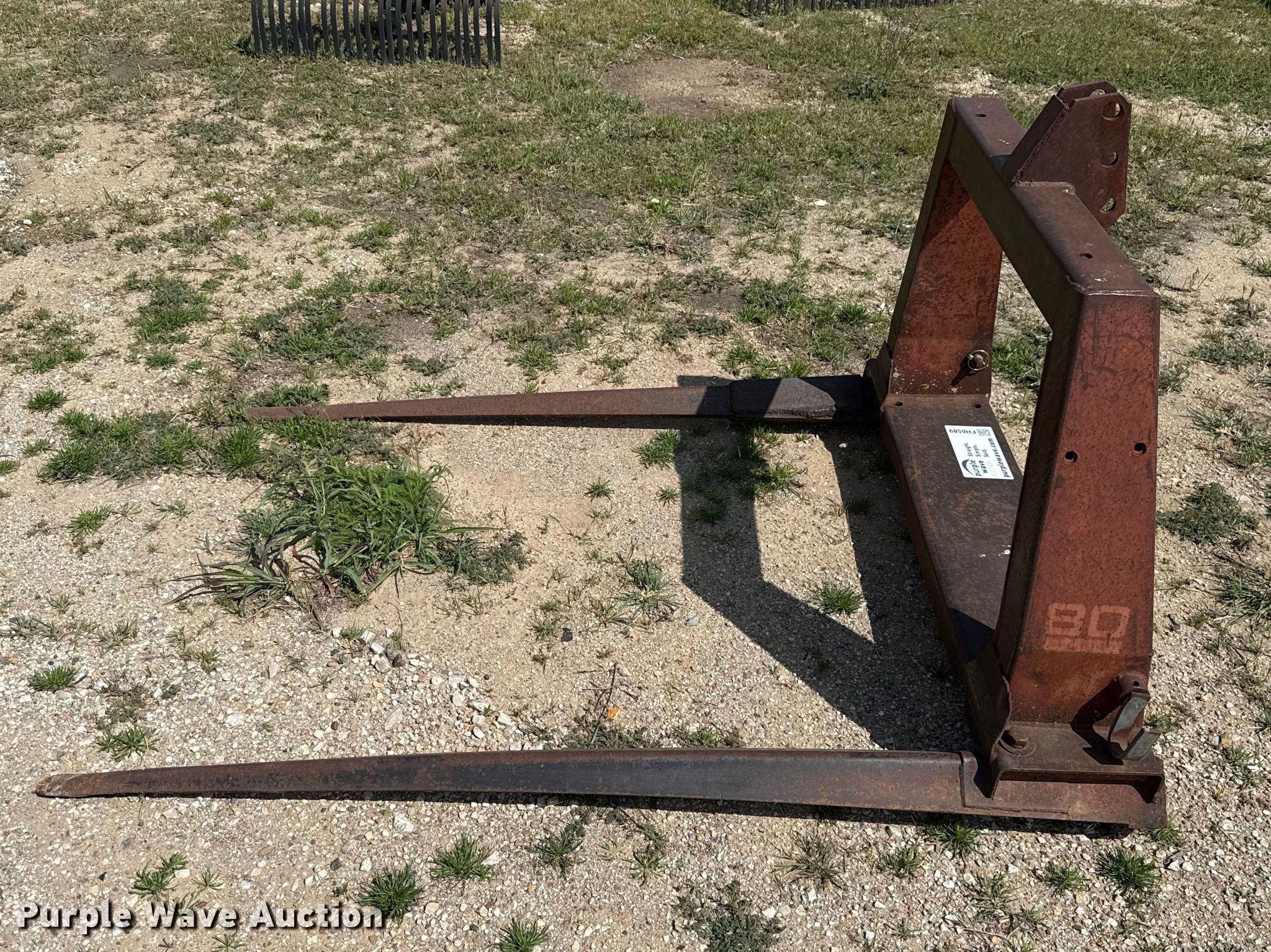 Purple Wave is selling a used Ag Tractor Loader or Attach. in Oklahoma. This item is a New Holland 80 hay bale spear with the following: Serial: 439450, Length: 59", Hitch: Three point