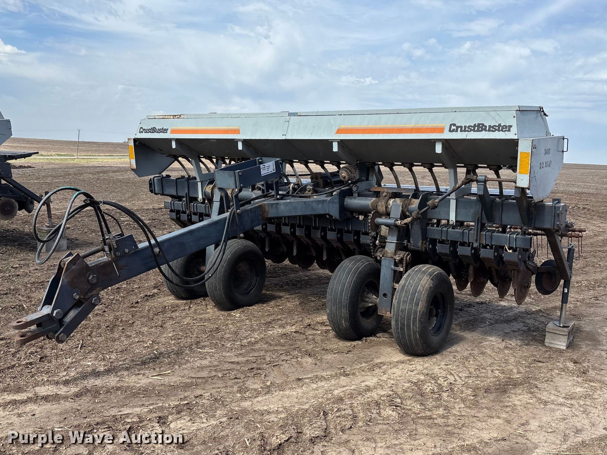Purple Wave is selling a used Grain Drill or Seeder in Missouri. This item is a Crust Buster DR3400AP grain drill with the following: Row units: 22, Serial: 10242