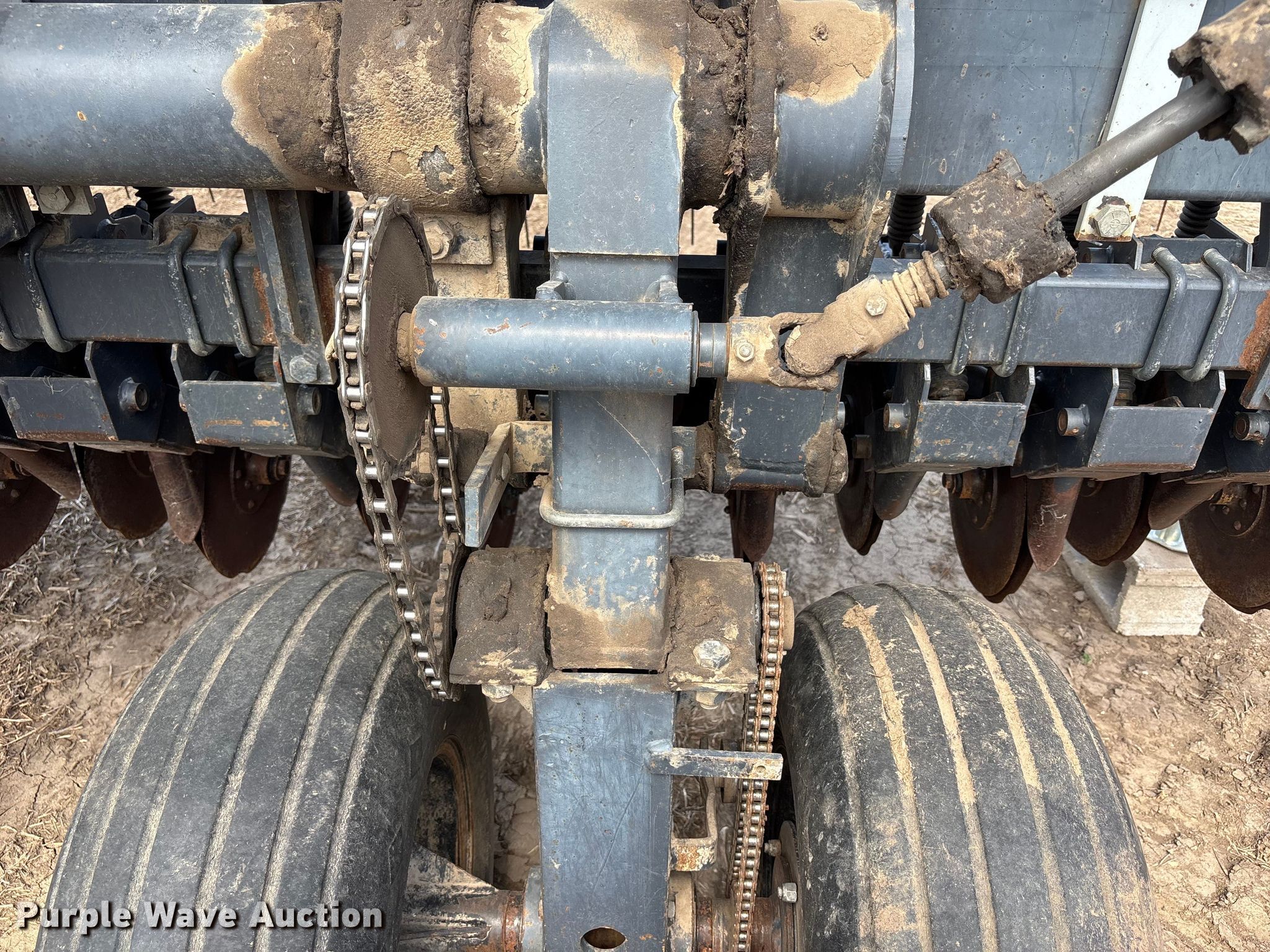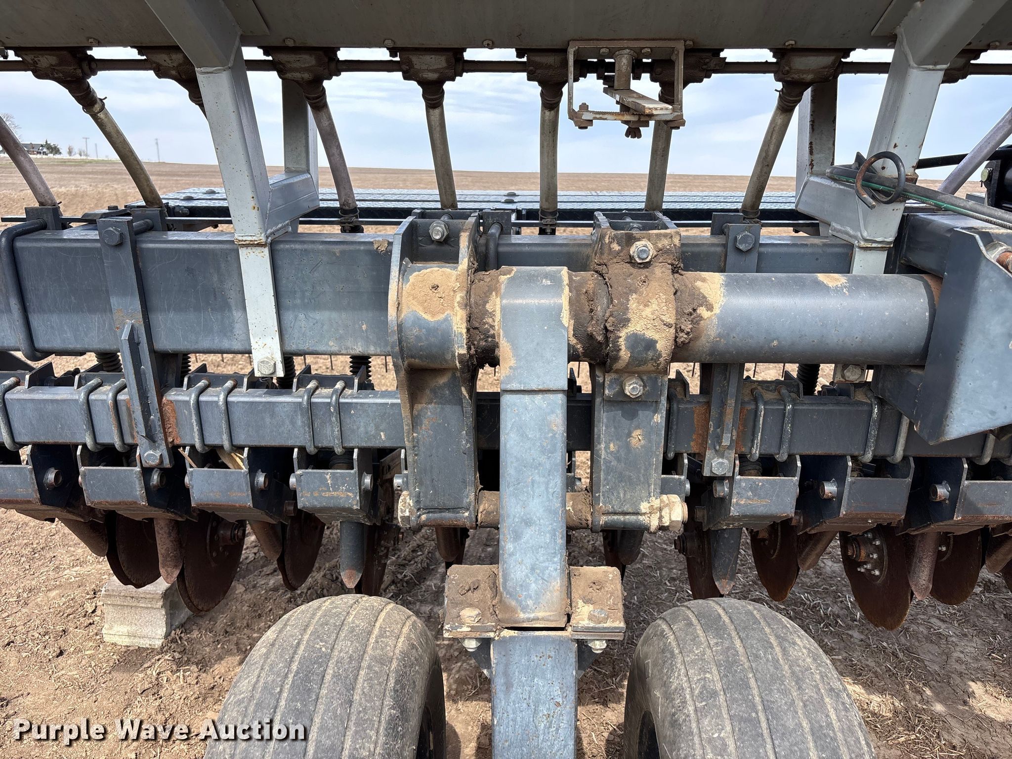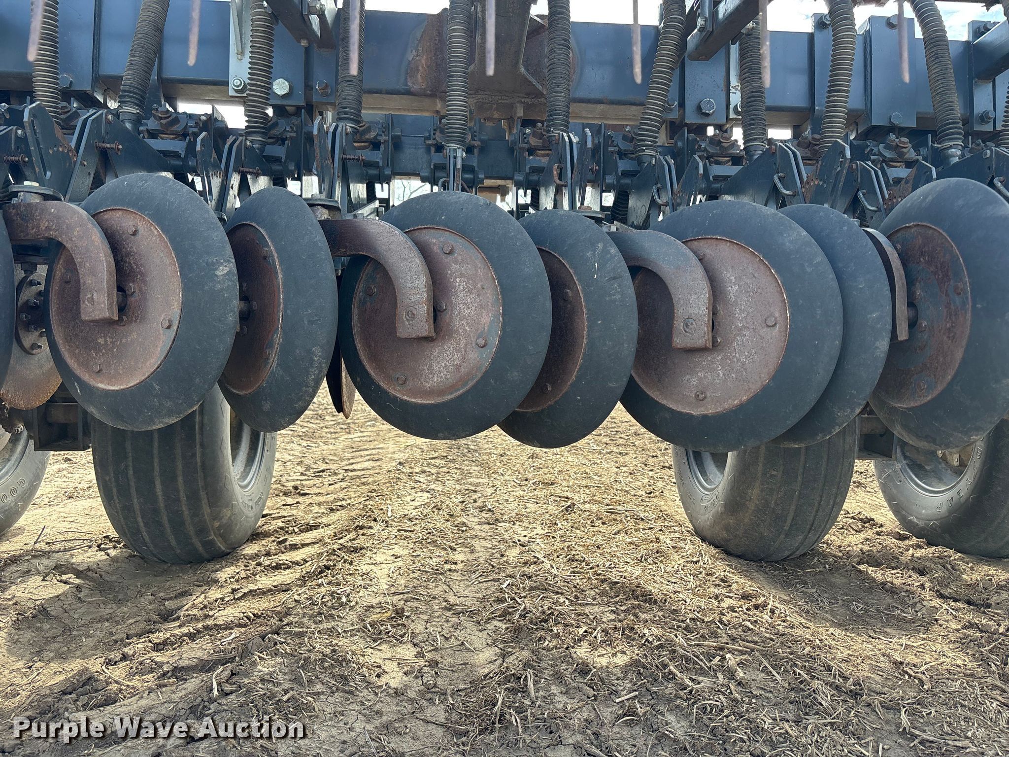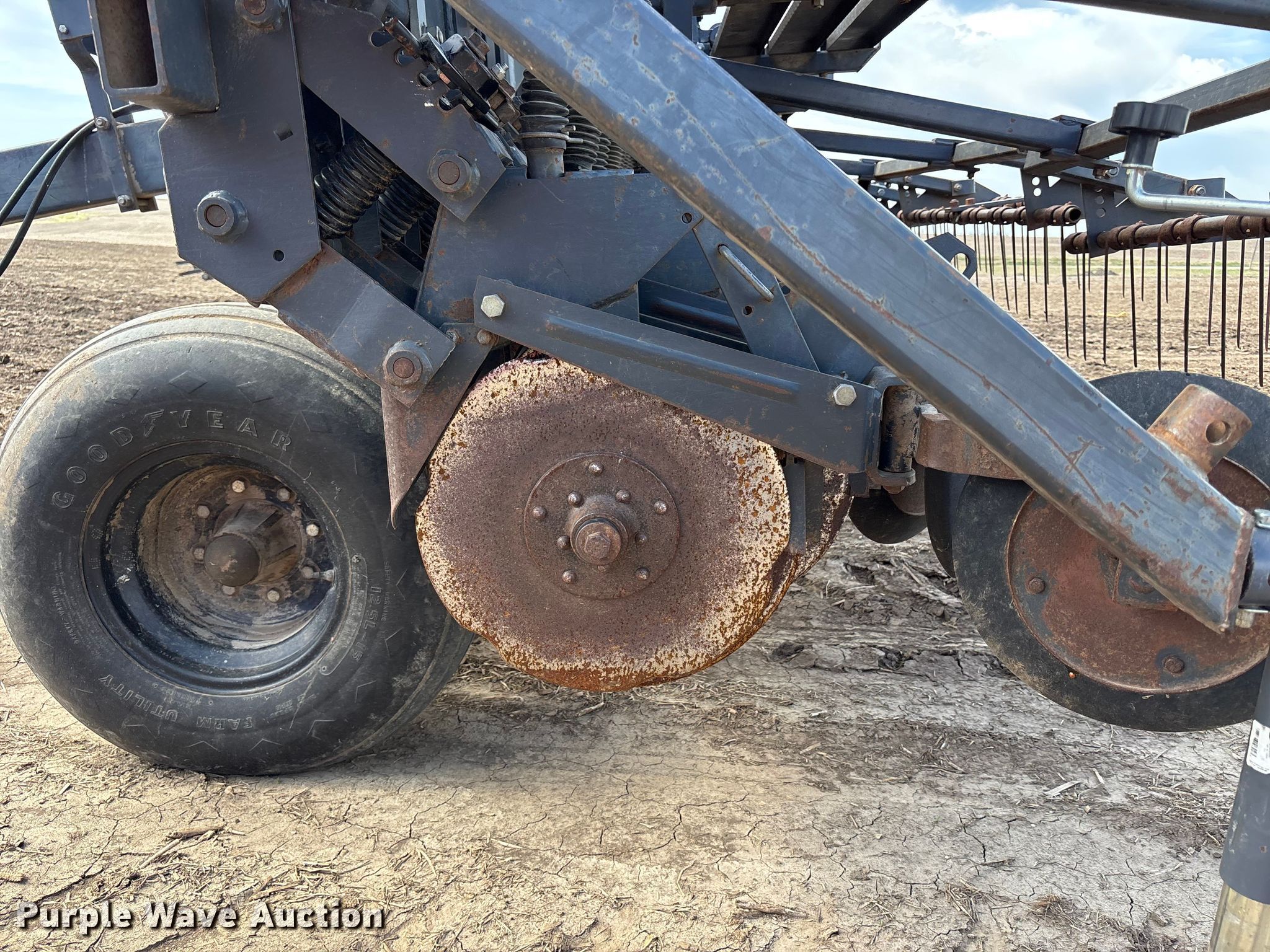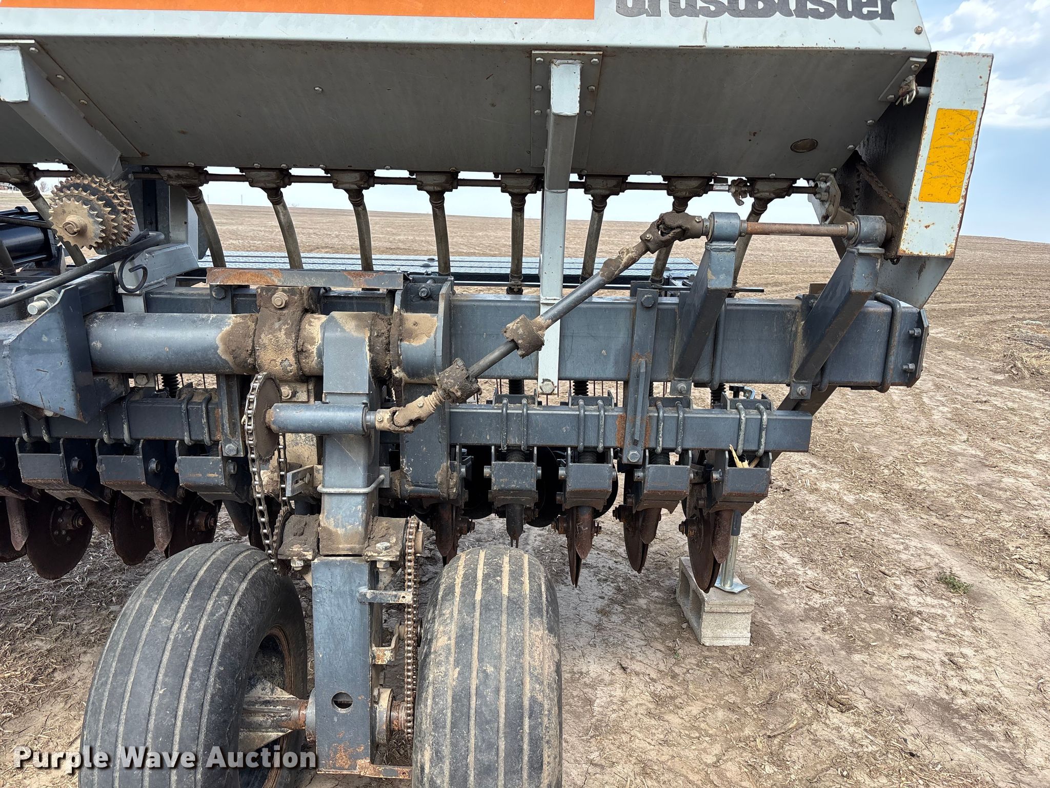 Crust Buster DR3400AP grain drill. Row units: 22, Serial: 10242. Features Seed delivery Bulk fill system, Row units Meter drive: Ground, Disk openers: Double, Closing system: Single Type: Rubber.. Tires Transport tire size: 12.5L-15. Wayne Stoll Farms. Corder, MO 64021