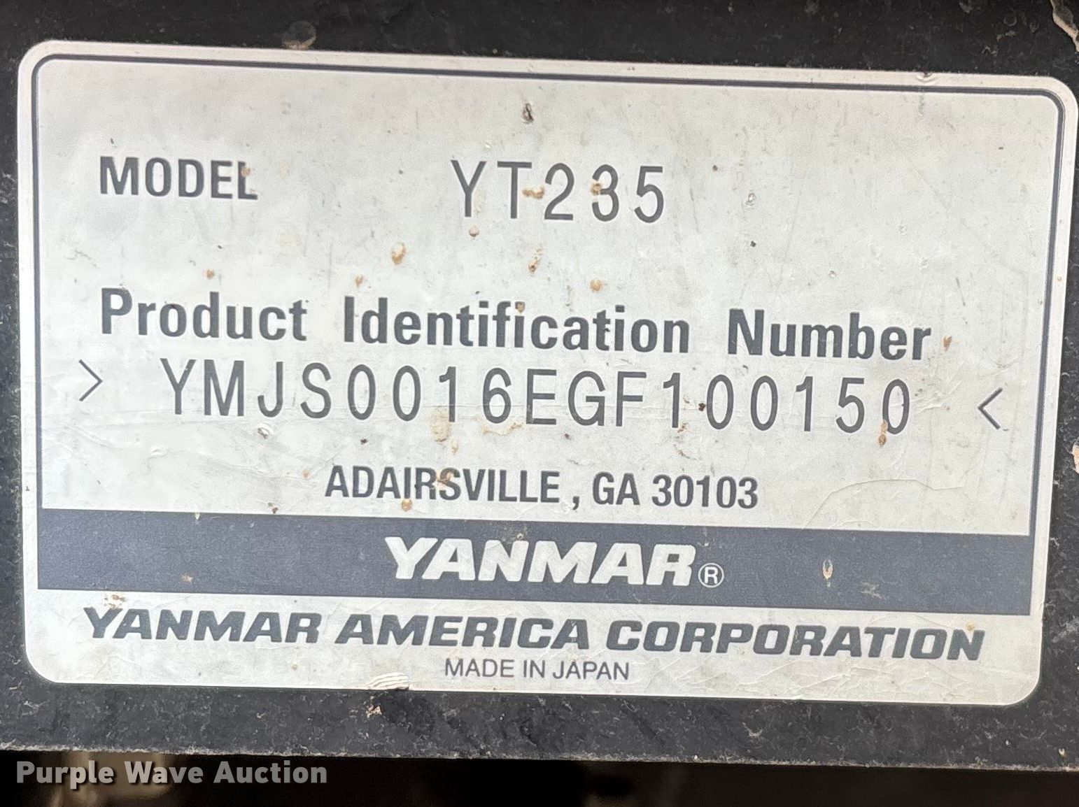 Purple Wave is selling a used Tractor in Michigan. This item is a 2016 Yanmar YT235 MFWD tractor with the following: Hours: 1,310 on meter, Serial: YMJS0016EGF100150, Unit #: 45638666