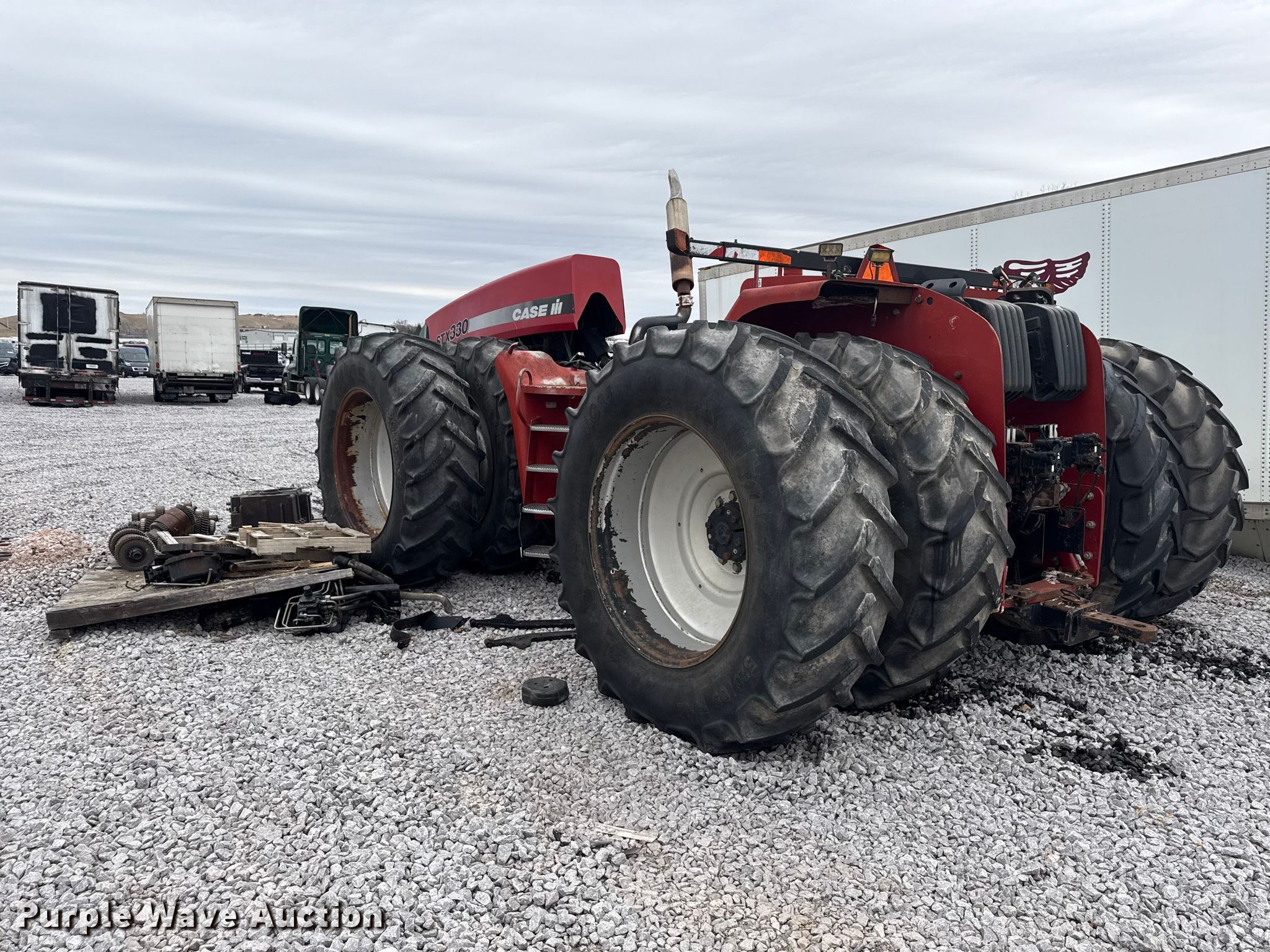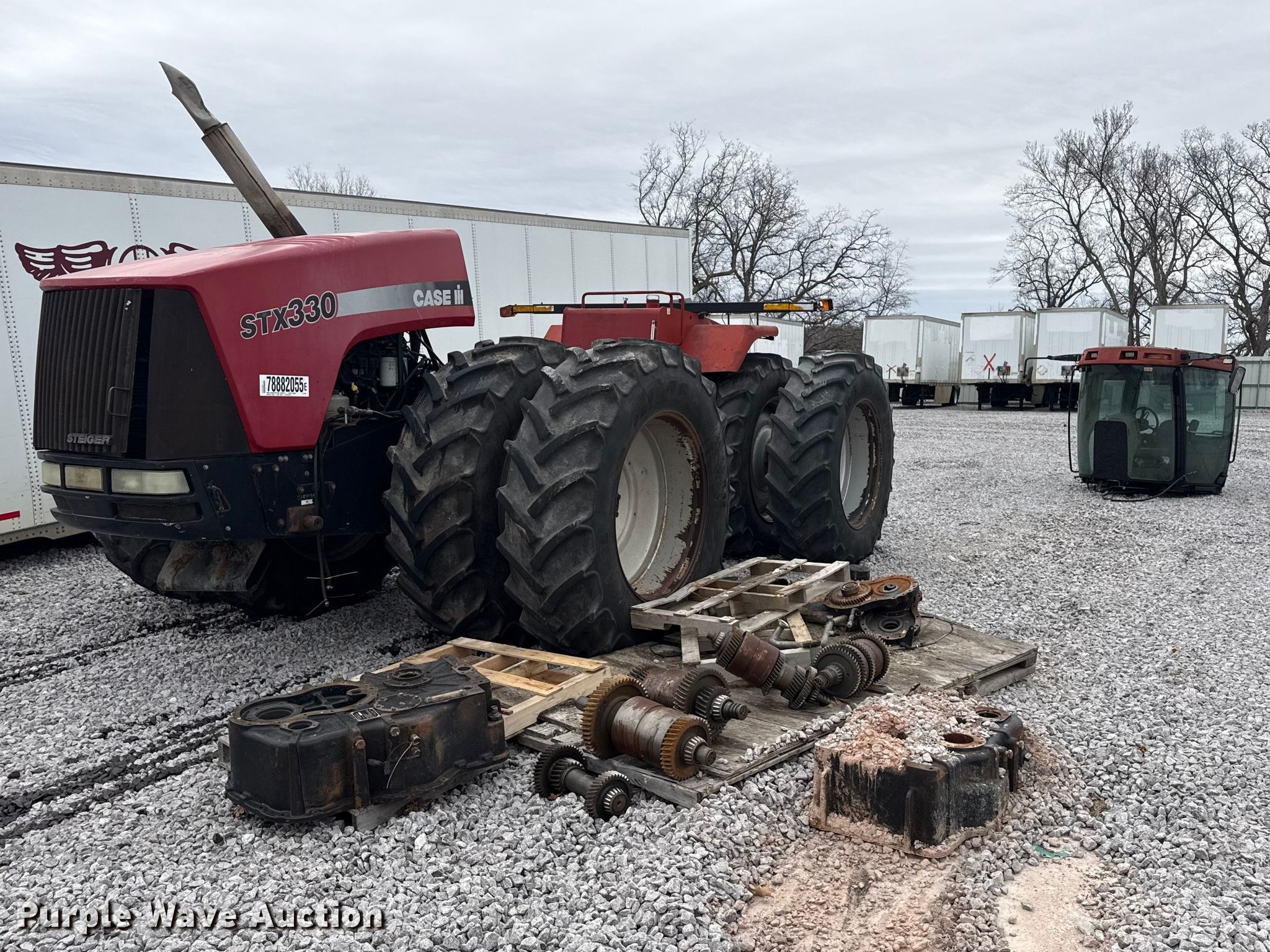 2006 Case IH Steiger STX330 4WD tractor. Hours: Unknown, Serial: Z6F100037, Unit #: 78882055. Engine CNH, Displacement: 8.3L, Cylinders: 6, Fuel type: Diesel. Transmission Powershift, Left-hand reverser. Operators station AC, Heat. Features PTO: 1 3/4" 1000, Seven pin outlet, Hydraulic remote sets Front: 1, Rear: 4, Suitcase weights: 10. Tires Size: 520/85R42, Duals, Front duals. Notes Collision damage, Disassembled Parts may be missing, Non-operational unit. Buyer responsible for all aspects of loadout and removal. Insurance salvage, stored at a secured facility. Please review REQUIRED REMOVAL INSTRUCTIONS. Insurance Salvage. McFarland, WI 53558
