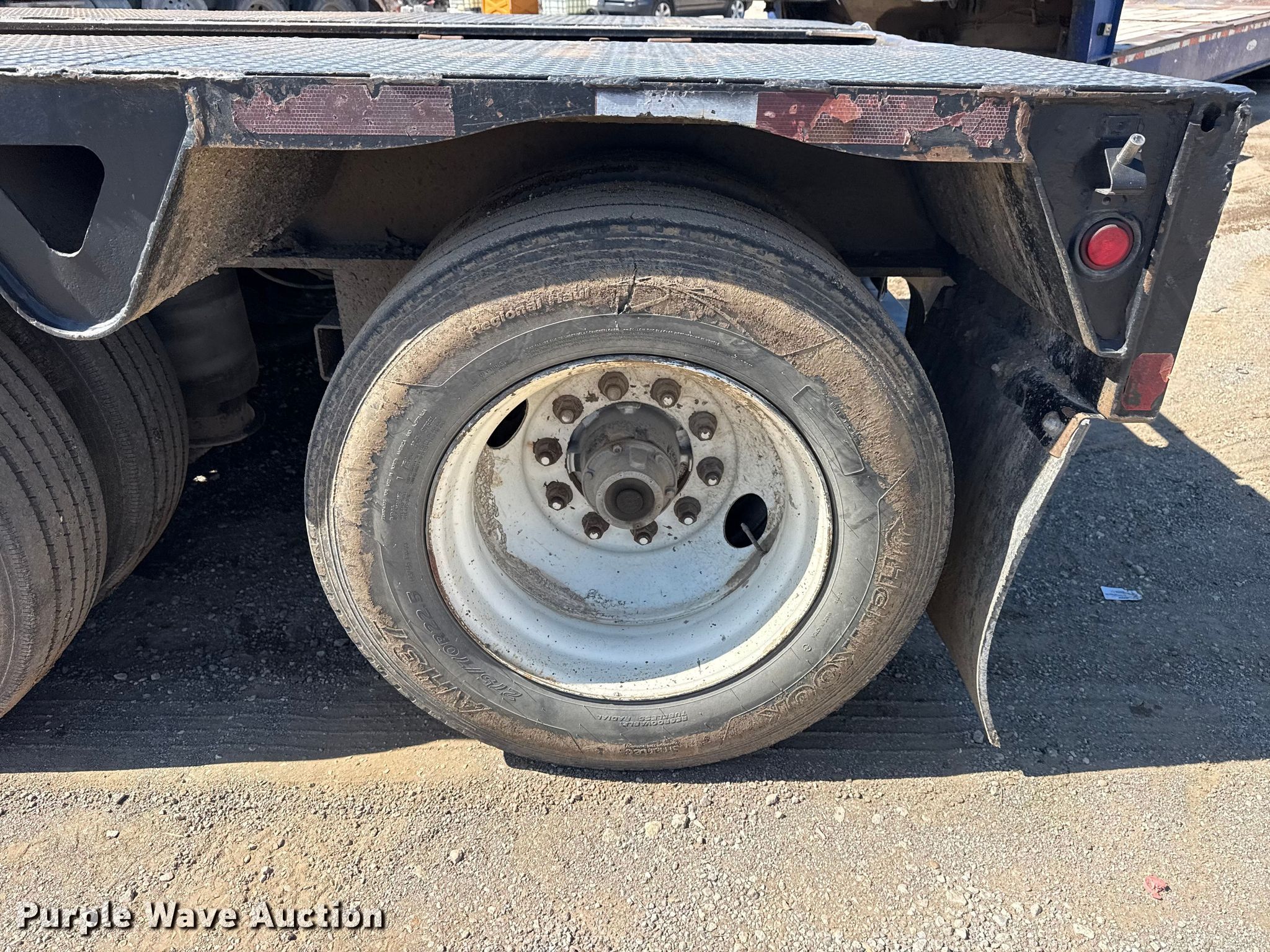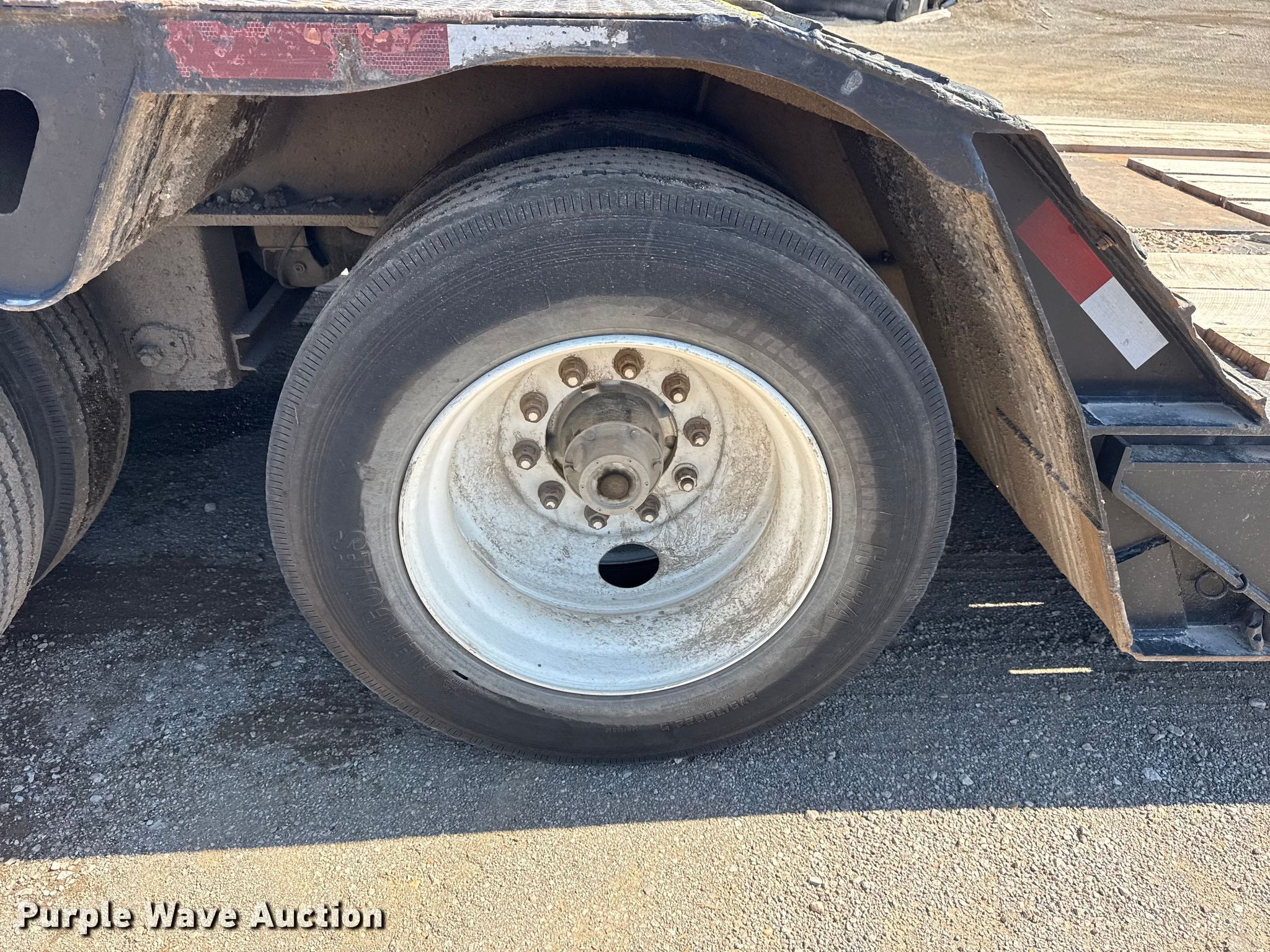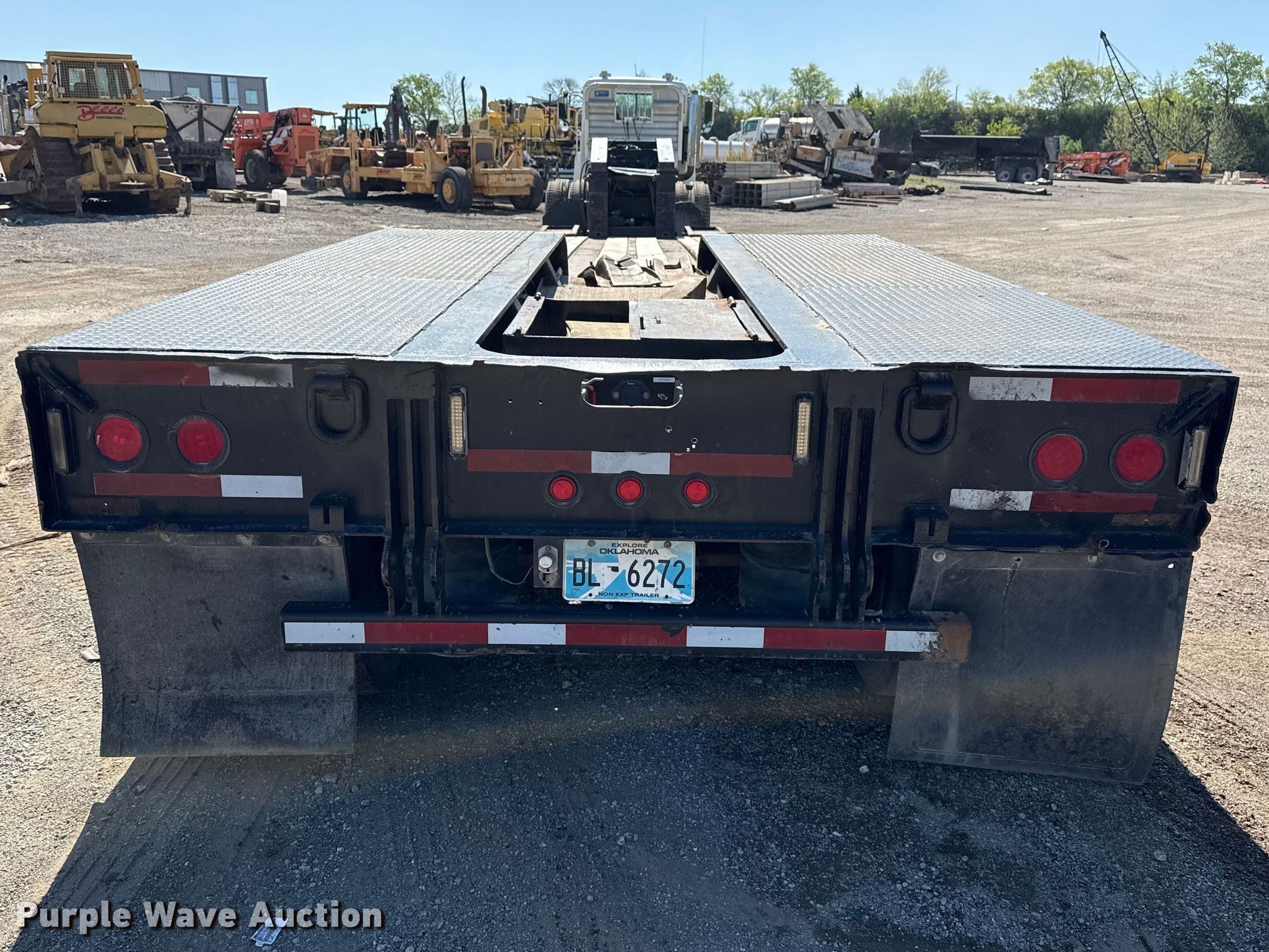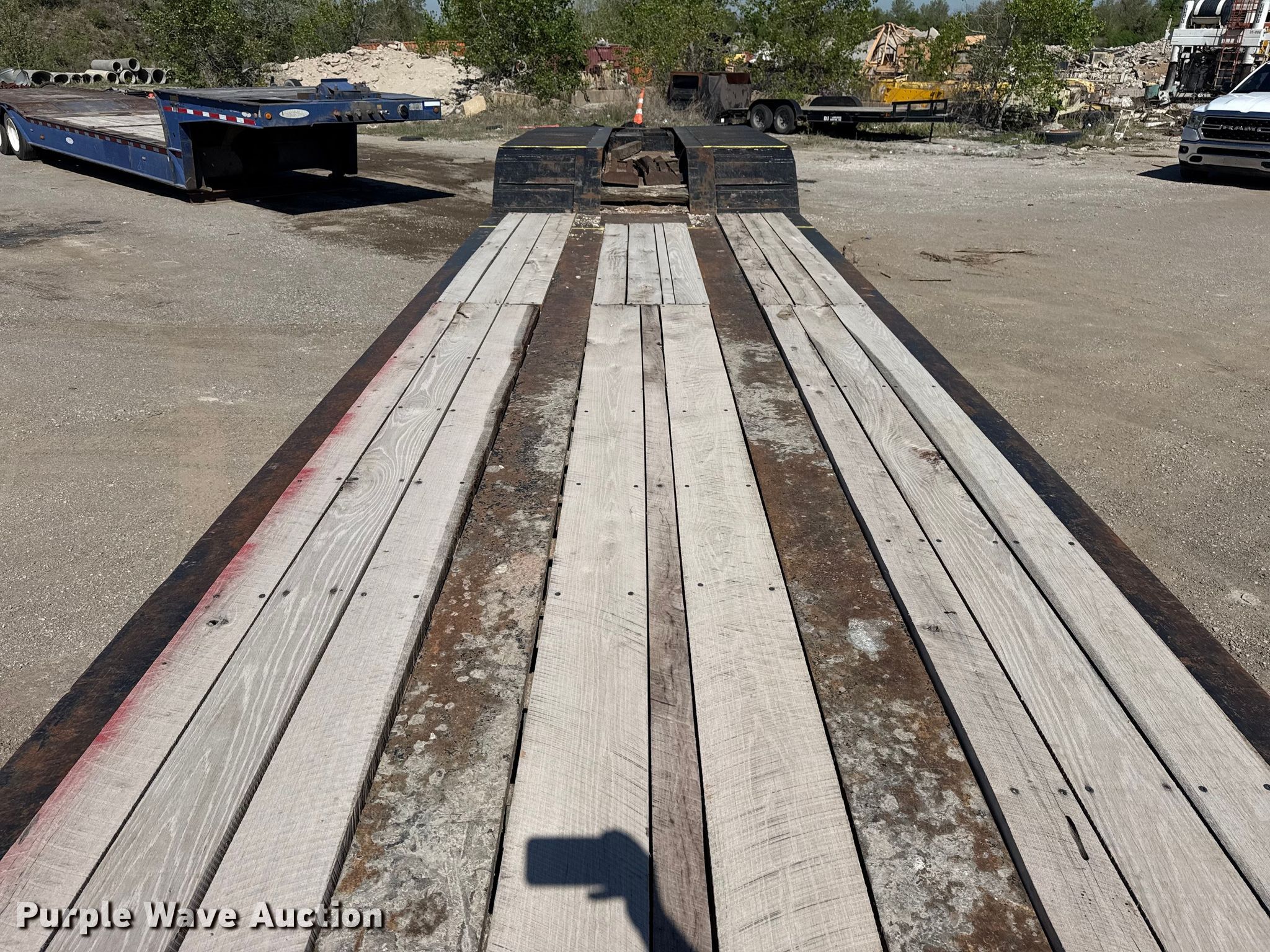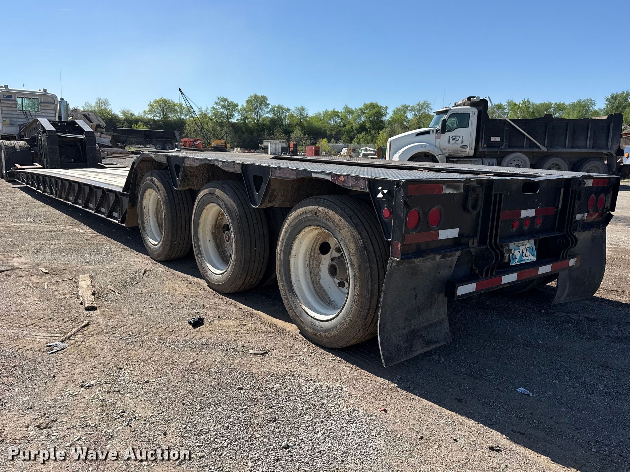 2001 Trail King TK110HDG-533 lowboy equipment trailer. VIN: 1TKJ053551M105059, Unit #: 04-026. Dimensions Overall Length: 53', Width: 102", Deck Length: 28', Width: 89", Rear deck length: 12', Ramps: Manual. Features Deck type: Steel, Wood, Outriggers: Swing-out Board size: 12", Neck type: Detachable, Hydraulic controls: Manual. Chassis Suspension: Air, Brakes: Air, Axles: Triple, GVWR: 135,480 lbs, GAWR: 22,500 lbs. Tires Steel wheels, Size: 275/70R22.5. Notes Semi truck not included. Oklahoma title. Title distribution may be delayed up to 14 days from verification of funds. Becco Contractors Inc. Tulsa, OK 74116