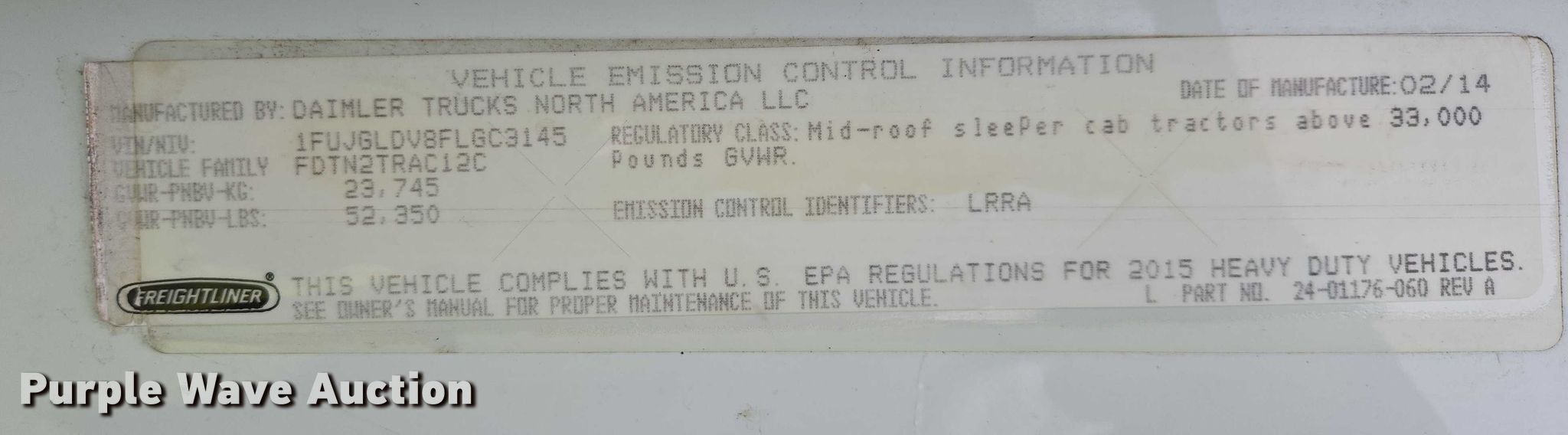 • EB1279 image for item EB1279 2015 Freightliner Cascadia semi truck