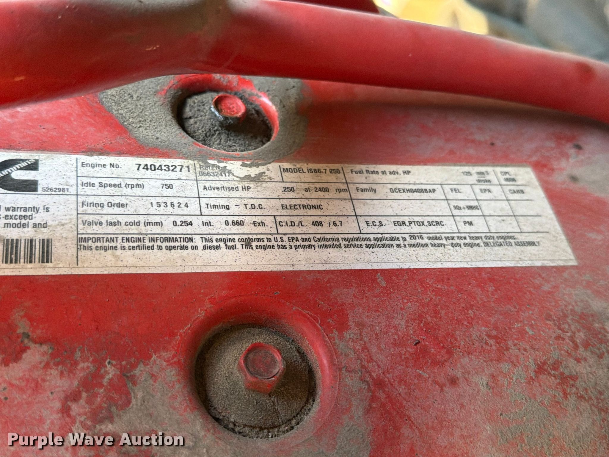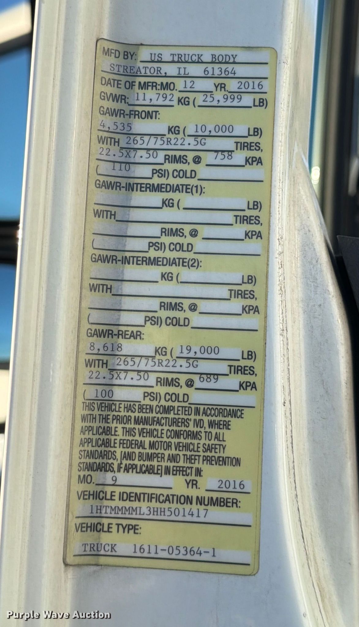 2017 International DuraStar 4300 box truck. Miles: 239,666 on odometer, Hours: 7,302 on meter, VIN: 1HTMMMML3HH501417, Unit #: 217336. Engine Cummins ISB6.7 250, Serial: 74043271, Displacement: 6.7L, Cylinders: 6, Fuel type: Diesel, HP: 250. Transmission Automatic. Chassis Axles: Single, Suspension: Air, Brakes: Air, GVWR: 25,999 lbs, Wheelbase: 266". Interior AC, Heat, Heated mirrors, Power windows, Power locks, Cruise control. Features Bed Box bed, US Truck Bodies, Serial: 1611-05364-1, Length: 26', Width: 97", Height: 102", E-track rail system, Floor: Wood, End gate lift, Anthony Liftgates, Inc., Capacity: 3,000 lbs. Tires Size: 11R22.5. Notes Windshield chipped or cracked. Texas title. Title distribution may be delayed up to 30 days from verification of funds. Holt Idealease. Austin, TX 78741