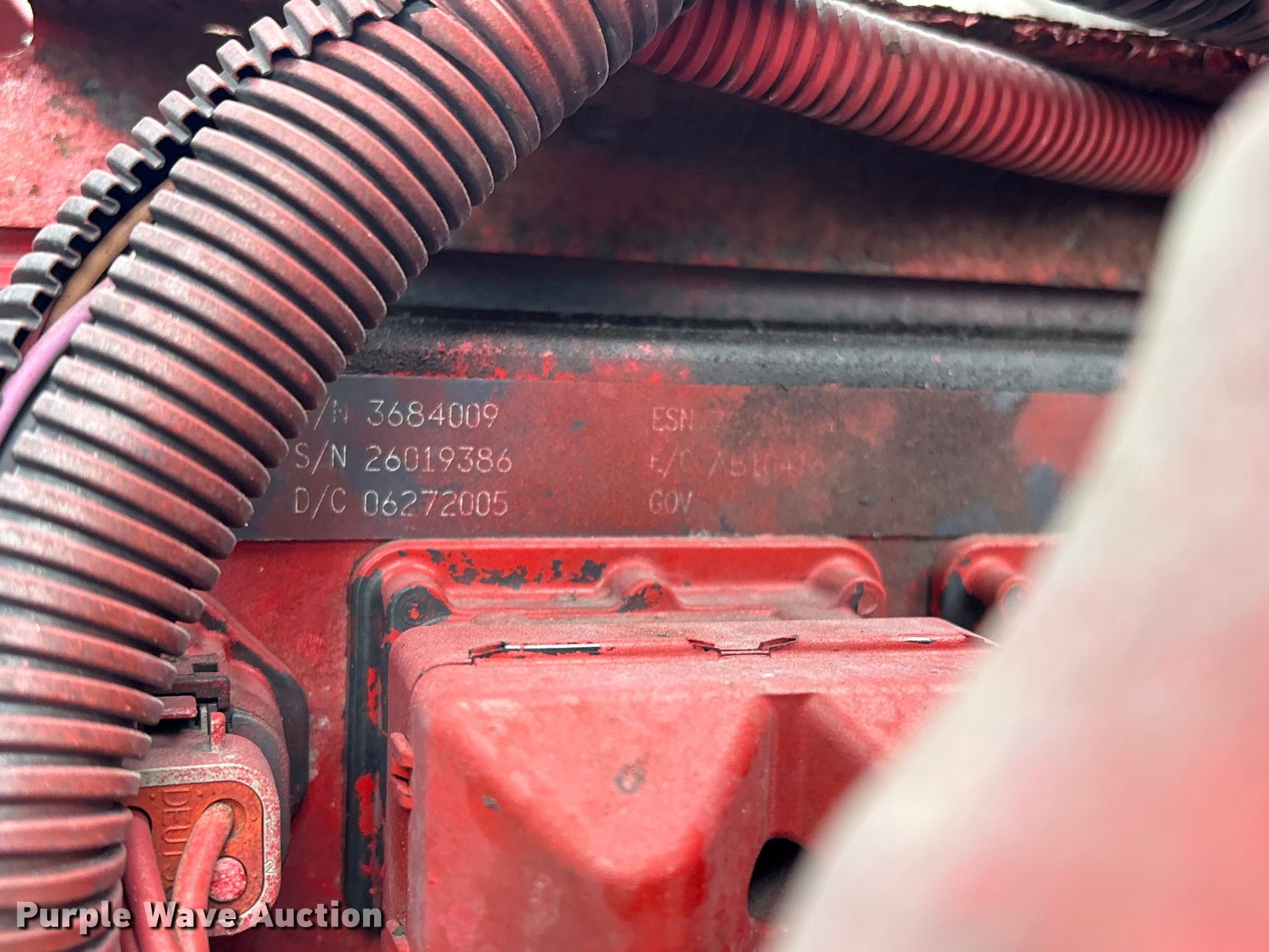 2006 International 9400 semi truck. Miles: 1,196,840 on odometer, VIN: 2HSCNAPR36C234943. Engine Cummins, Displacement: 14.9L, Fuel type: Diesel. Transmission Meritor, Manual, Speed: 10. Chassis Axles: Tandem, Differential lock: Inter-axle, Suspension: Air Dump valves, Brakes: Air, Wheelbase: 177". Interior AC, Heat, Heated mirrors, Cruise control. Features Deck plate: Aluminum, Fifth wheel type: Fixed, Fuel tank: Dual. Tires Front: 295/75R22.5, Rear: 11R22.5. Notes Windshield chipped or cracked. Oklahoma title. Seller is an Oklahoma licensed motor vehicle dealer. Buyers may be required to provide identification to the licensed dealer to comply with state laws. Title will be assigned and distributed by the dealer. Please contact the seller for distribution questions. Title distribution may be delayed up to 30 days from verification of funds. Collinsville, OK 74021