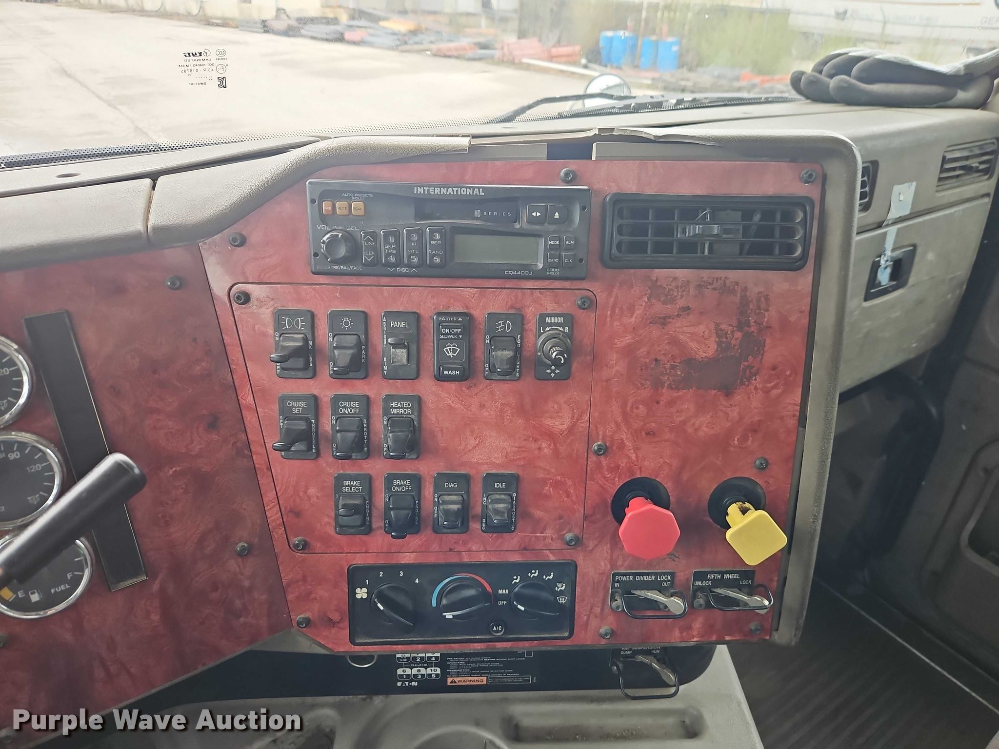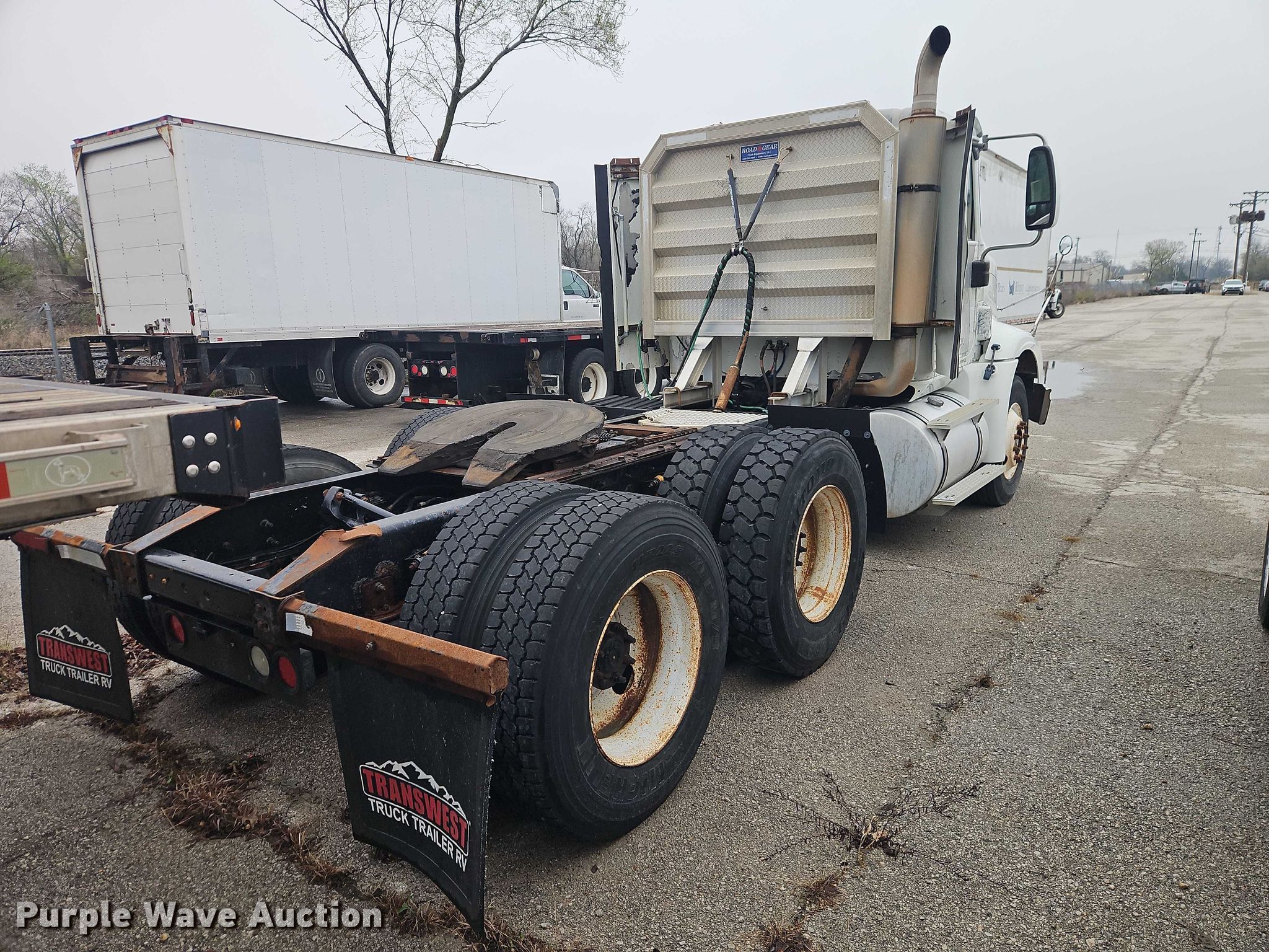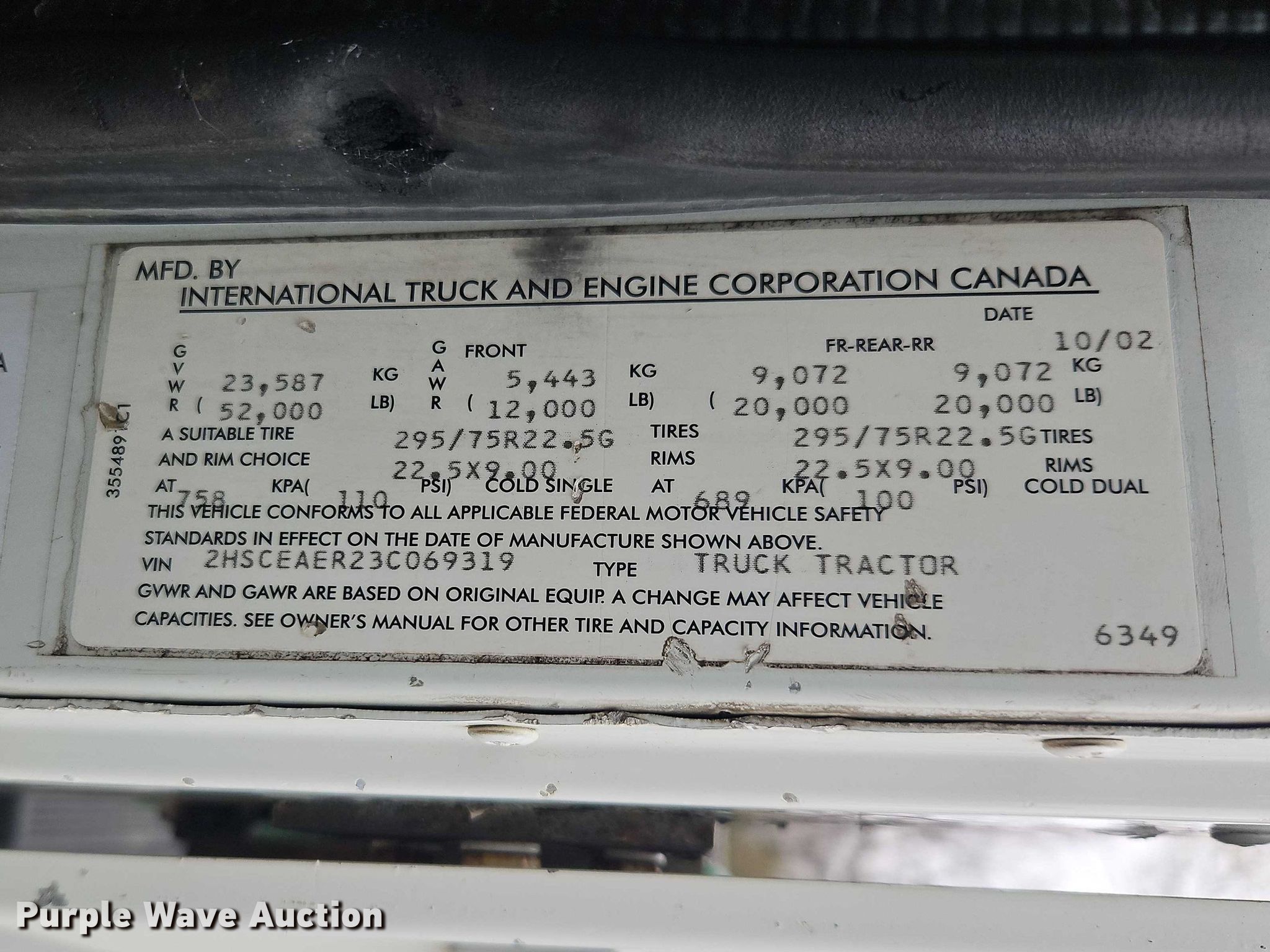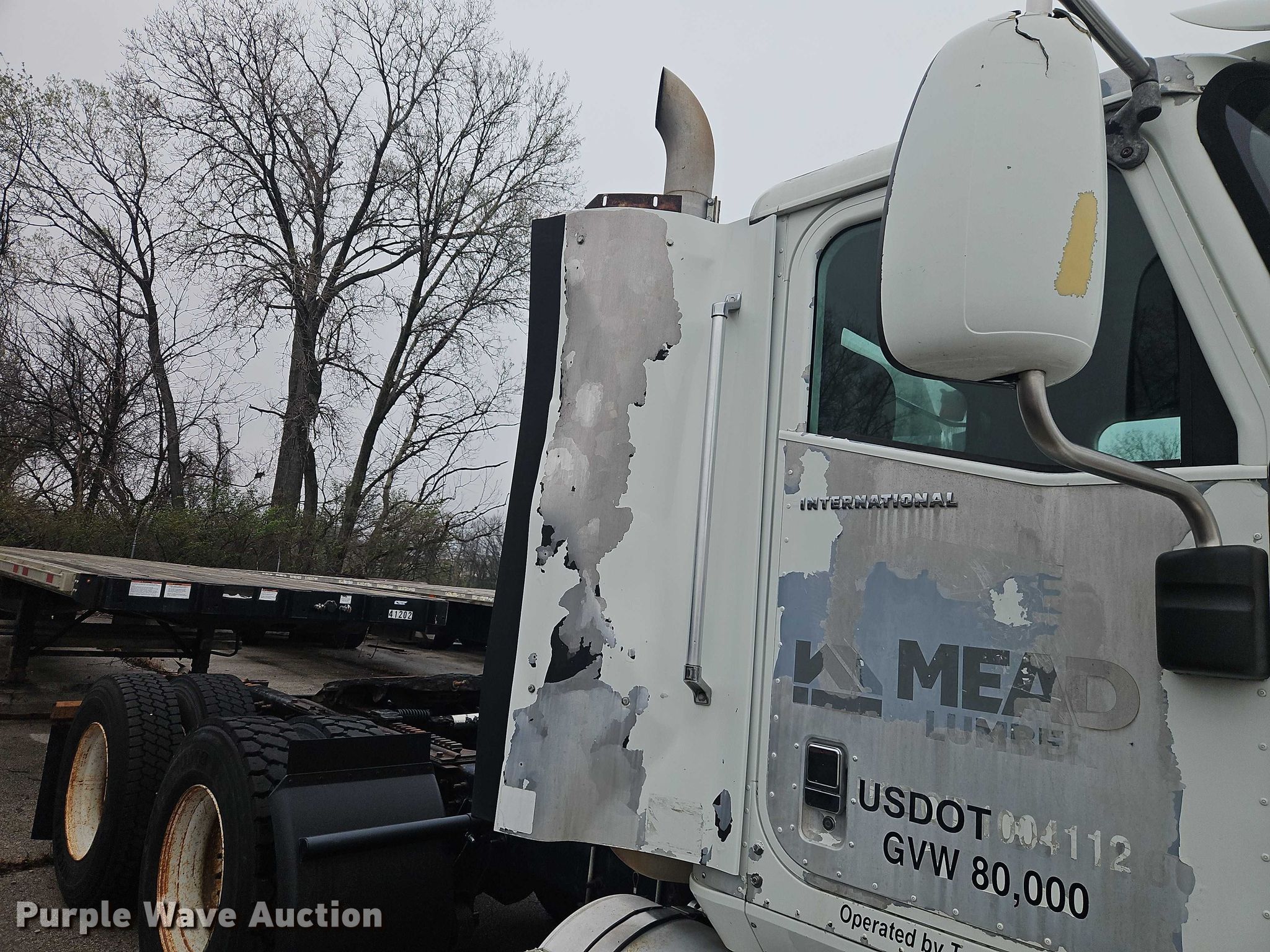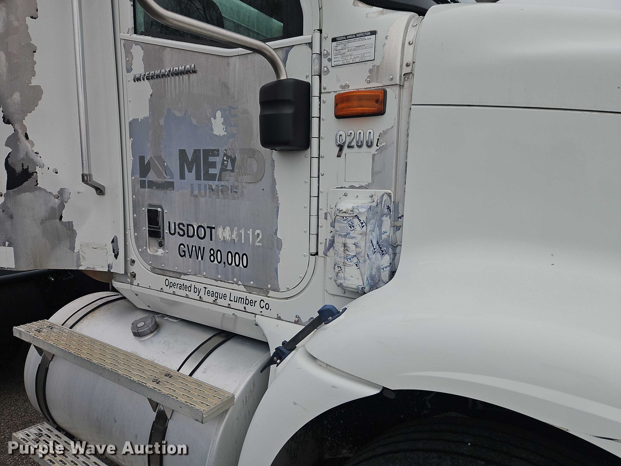 2003 International 9200i semi truck. Miles: 1,077,649 on odometer, Hours: 42,000 on meter, VIN: 2HSCEAER23C069319, Unit #: 41001. Engine Cummins, Displacement: 14.01L, Cylinders: 6, Fuel type: Diesel. Transmission Eaton Fuller, Manual, Speed: 10. Chassis Axles: Tandem, Differential lock: Inter-axle, Suspension: Air Dump valves, Brakes: Air, GVWR: 52,000 lbs FAWR: 12,000 lbs, IAWR: 20,000 lbs, RAWR: 20,000 lbs, Wheelbase: 171". Interior AC, Heat, Heated mirrors, Cruise control. Features Deck plate: Aluminum, Fifth wheel type: Air operated, Sliding, Fuel tank: Dual. Tires Size: 11R22.5. Notes Possible engine issues, turns over but will not start , Unit must be towed or hauled , Unknown operating condition. Missouri title. Title distribution may be delayed up to 14 days from verification of funds. Mead Lumber. Grandview, MO 64030