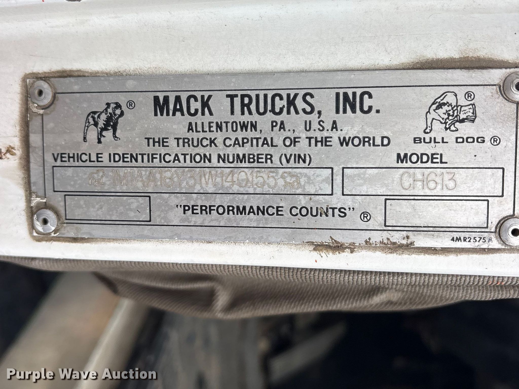 Purple Wave is selling a used Truck Chassis in Texas. This item is a 2001 Mack CH613 truck cab and chassis with the following: Miles: 678,527 on odometer, Hours: 36,071 on meter, VIN: 1M1AA18Y31W140155, Unit #: 2314