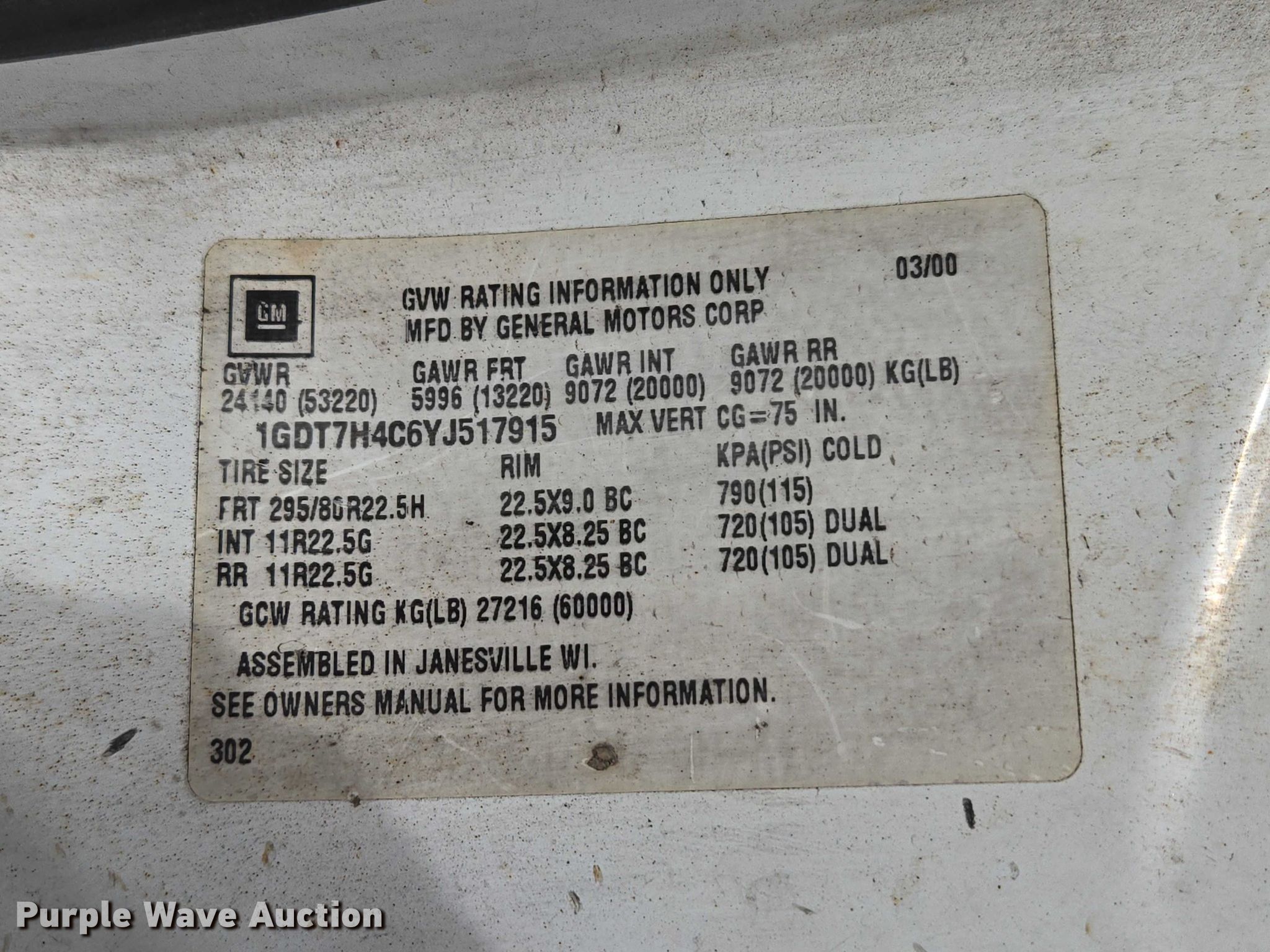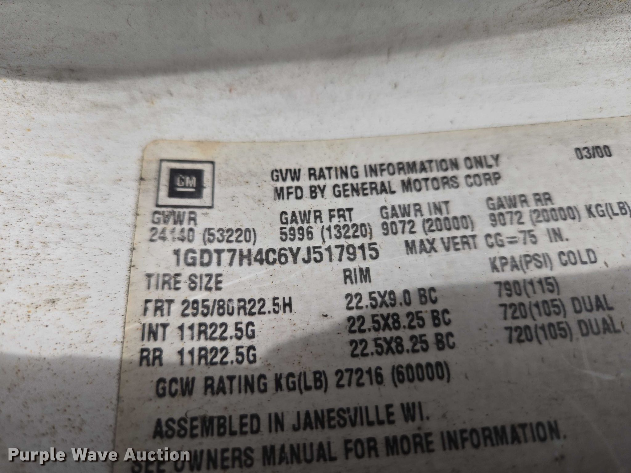 - VIN: 1GDT7H4C6YJ517915