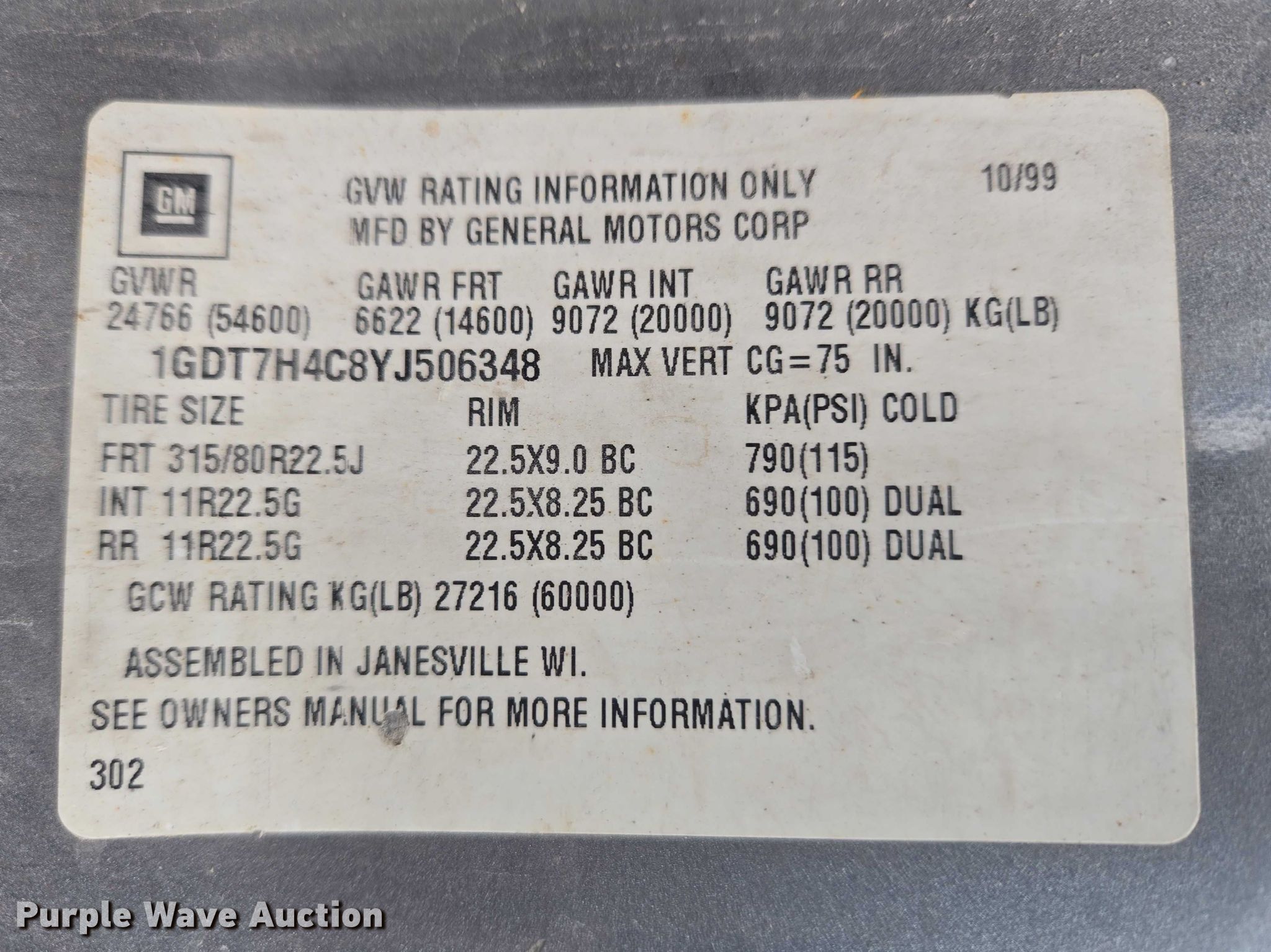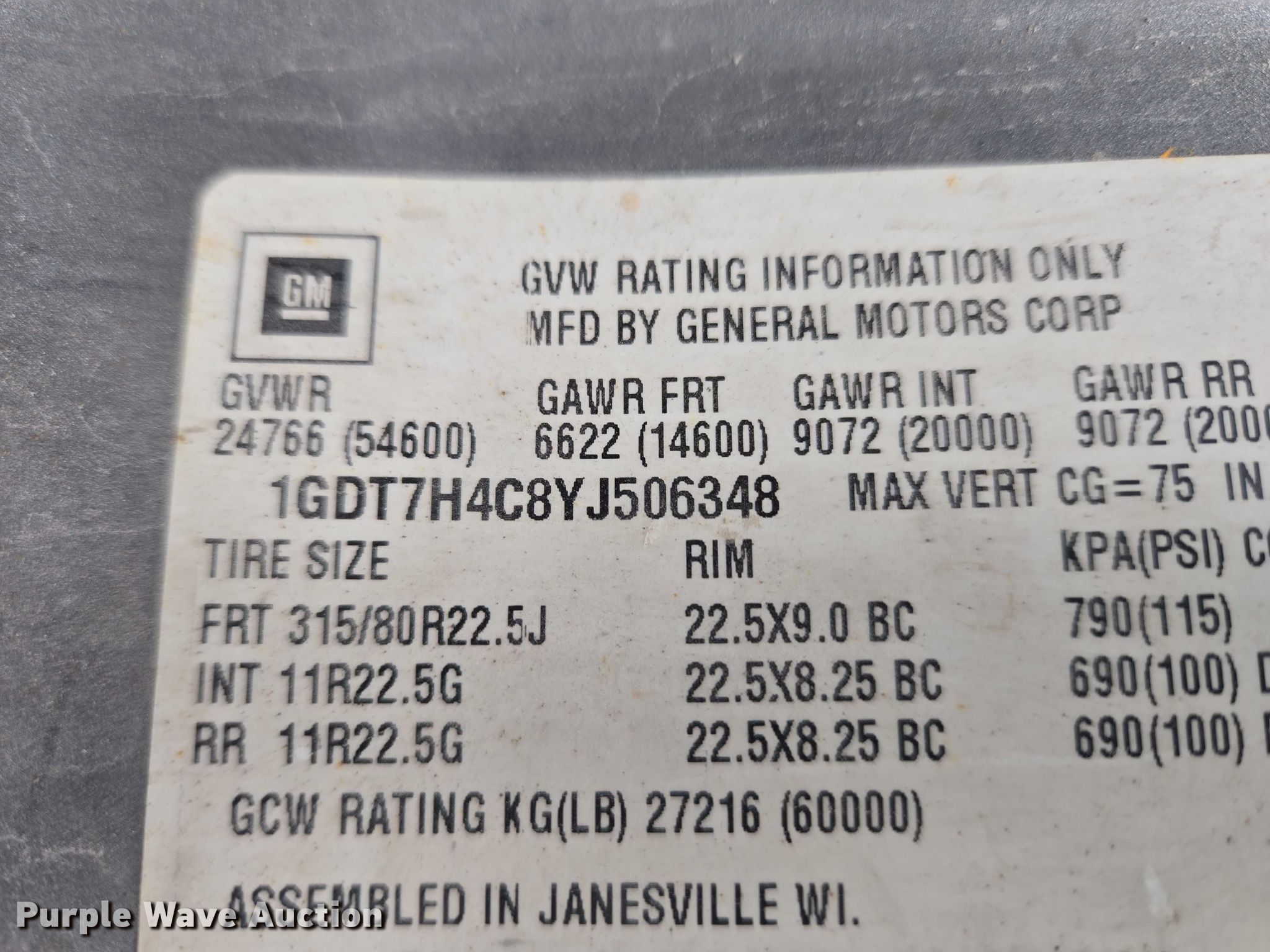 - VIN: 1GDT7H4C8YJ506348