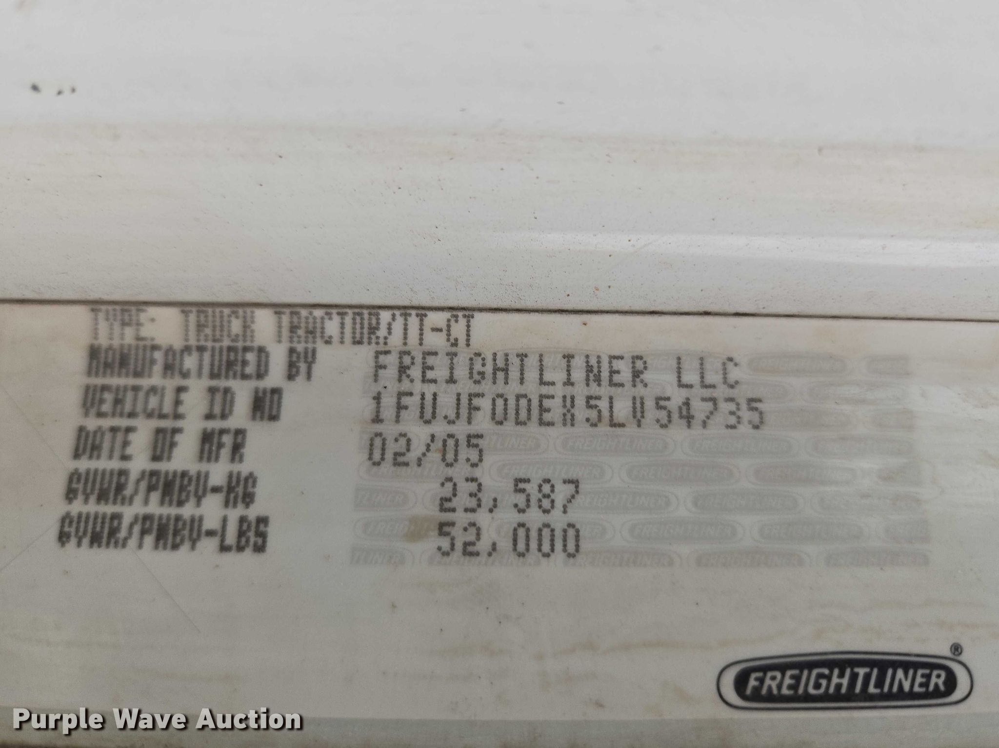 Take a look at this used 2005 Freightliner Columbia semi truck being sold on April 30th, 2026 in the Thursday April 30 Truck and Trailer Auction made by Freightliner. Take a look at all of the item information below or take a look at similar auctions for Trucks.