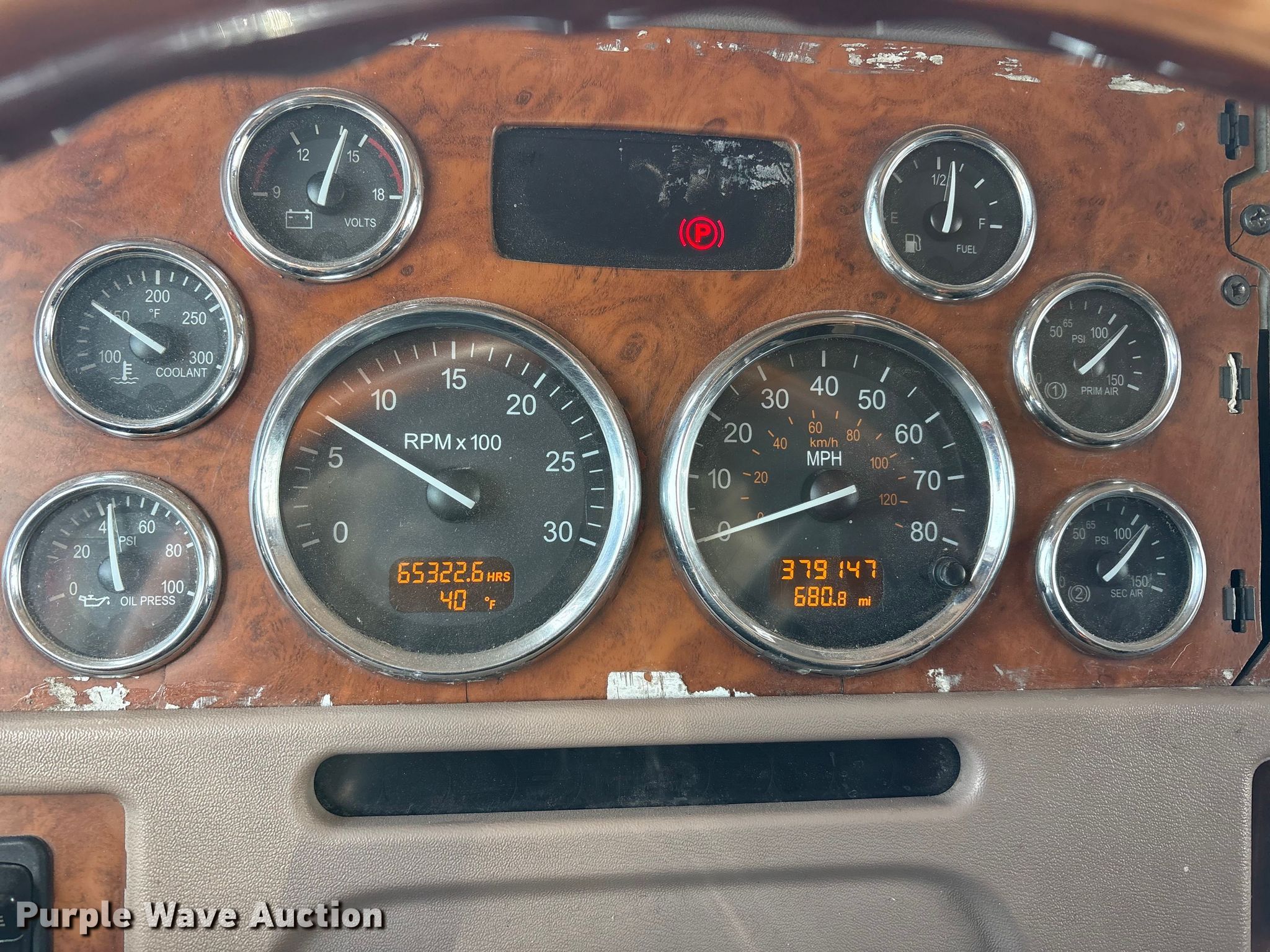 Purple Wave is selling a used Truck Tractor in Texas. This item is a 2007 Peterbilt 379 semi truck with the following: Miles: 379,147 on odometer, Hours: 65,322 on meter, VIN: 1XP5DB9XX7D673112
