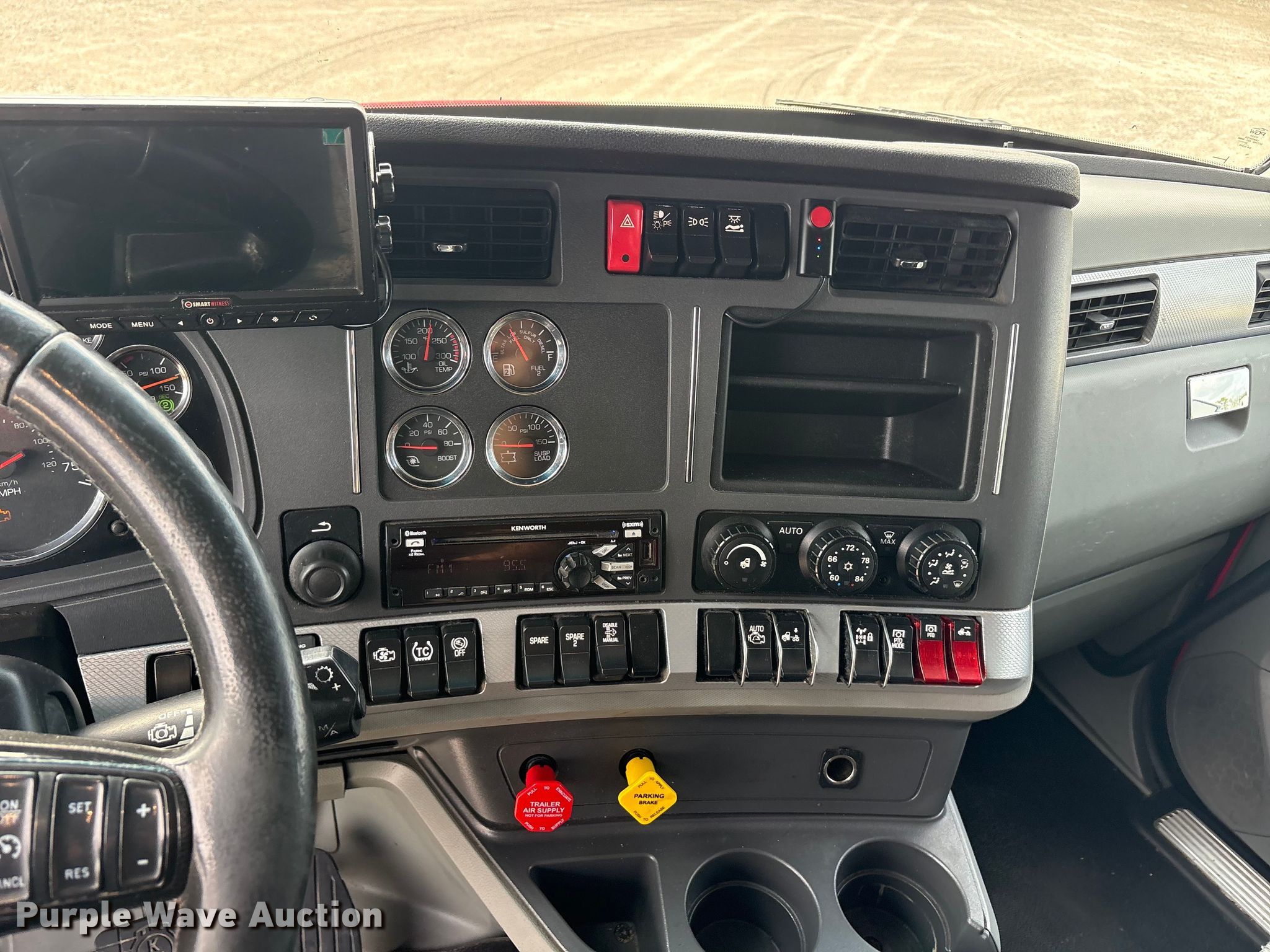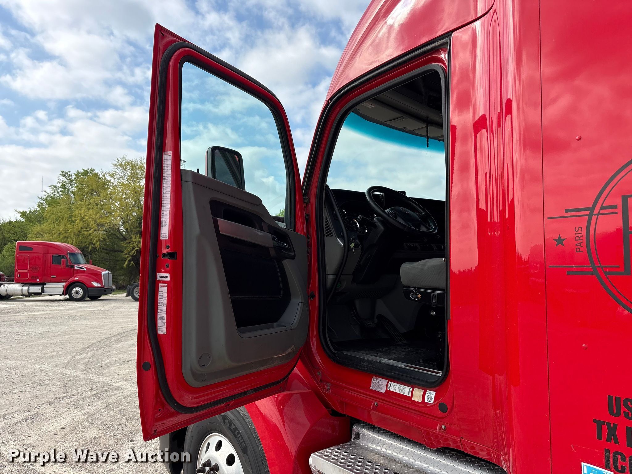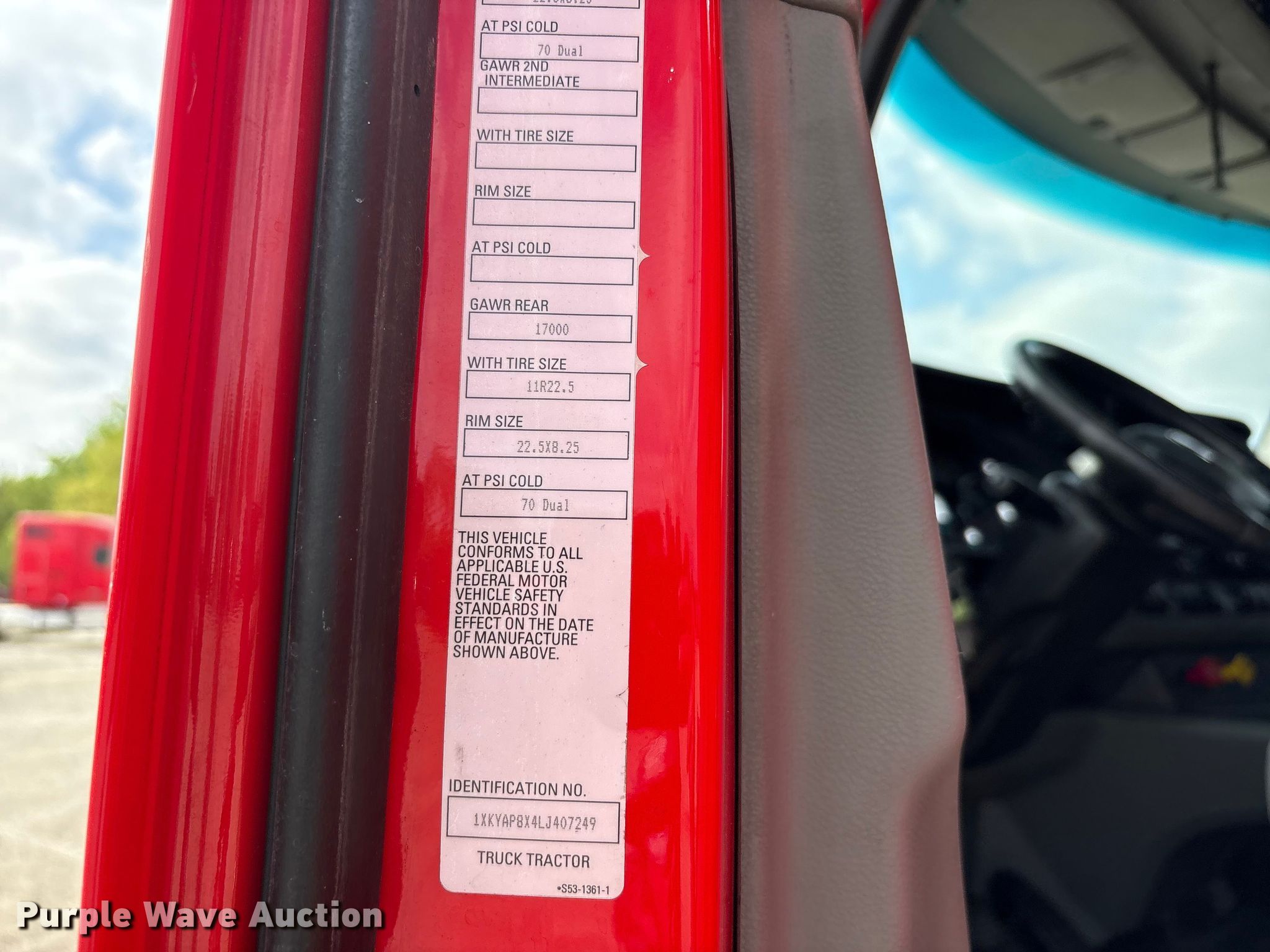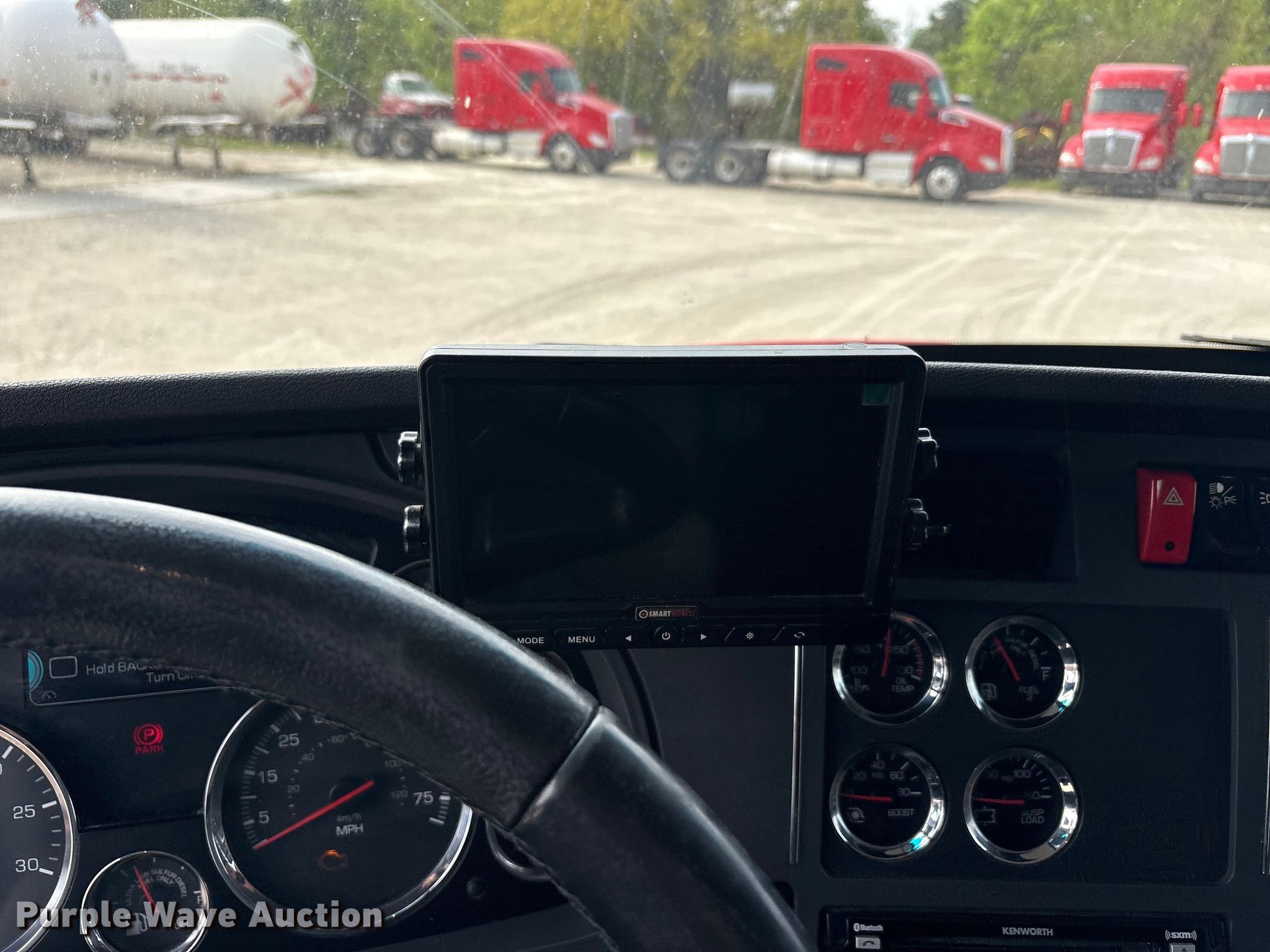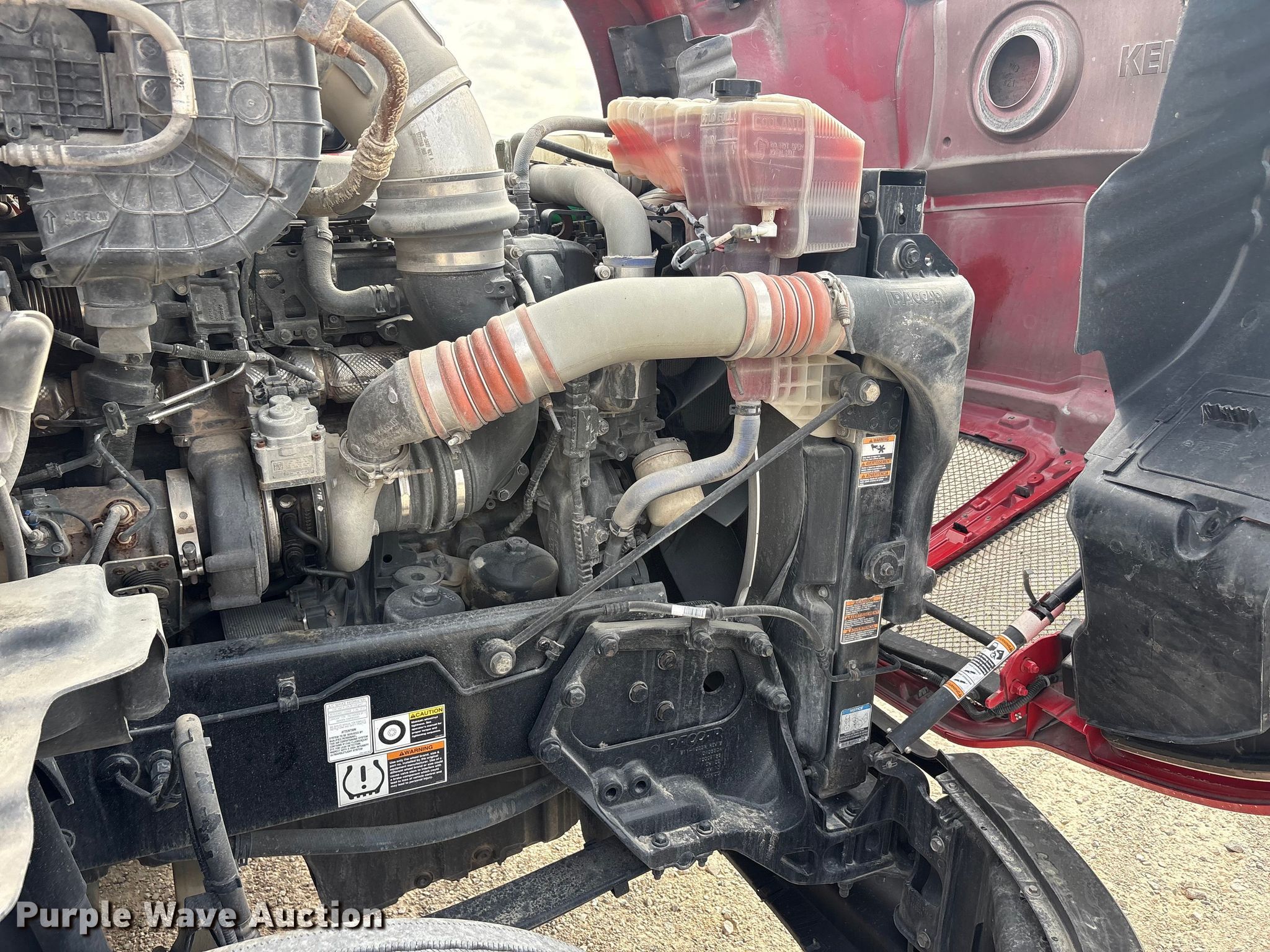 2020 Kenworth T680 semi truck. Miles: 585,836 on odometer, VIN: 1XKYAP8X4LJ407249, Unit #: T87. Engine Paccar MX-13, Displacement: 12.9L, Cylinders: 6, Fuel type: Diesel, HP: 405, Engine brake. Transmission Automated manual. Chassis Axles: Tandem, Single axle differential lock, Suspension: Air Dump valves, Brakes: Air, PTO, GVWR: 46,500 lbs FAWR: 12,500 lbs, IAWR: 17,000 lbs, RAWR: 17,000 lbs. Interior AC, Heat, Heated mirrors, Power windows, Power locks, Cruise control, Air ride cab, Sleeper Sleeper length: 64", Beds: Single, Refrigerator, Rear climate control. Features Deck plate: Aluminum, Fifth wheel type: Air operated, Sliding, Fuel tank: Single. Tires Size: 11R22.5. Notes APU motor removed, Dash warning indicator: Traction control, Windshield chipped or cracked. Texas title. Title distribution may be delayed up to 14 days from verification of funds. Paris, TX 75462