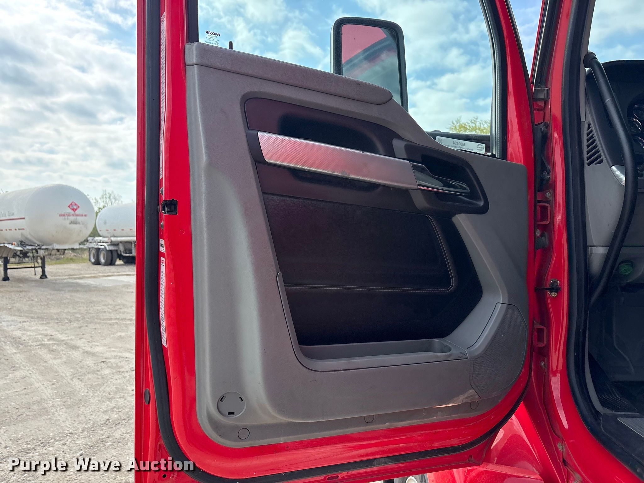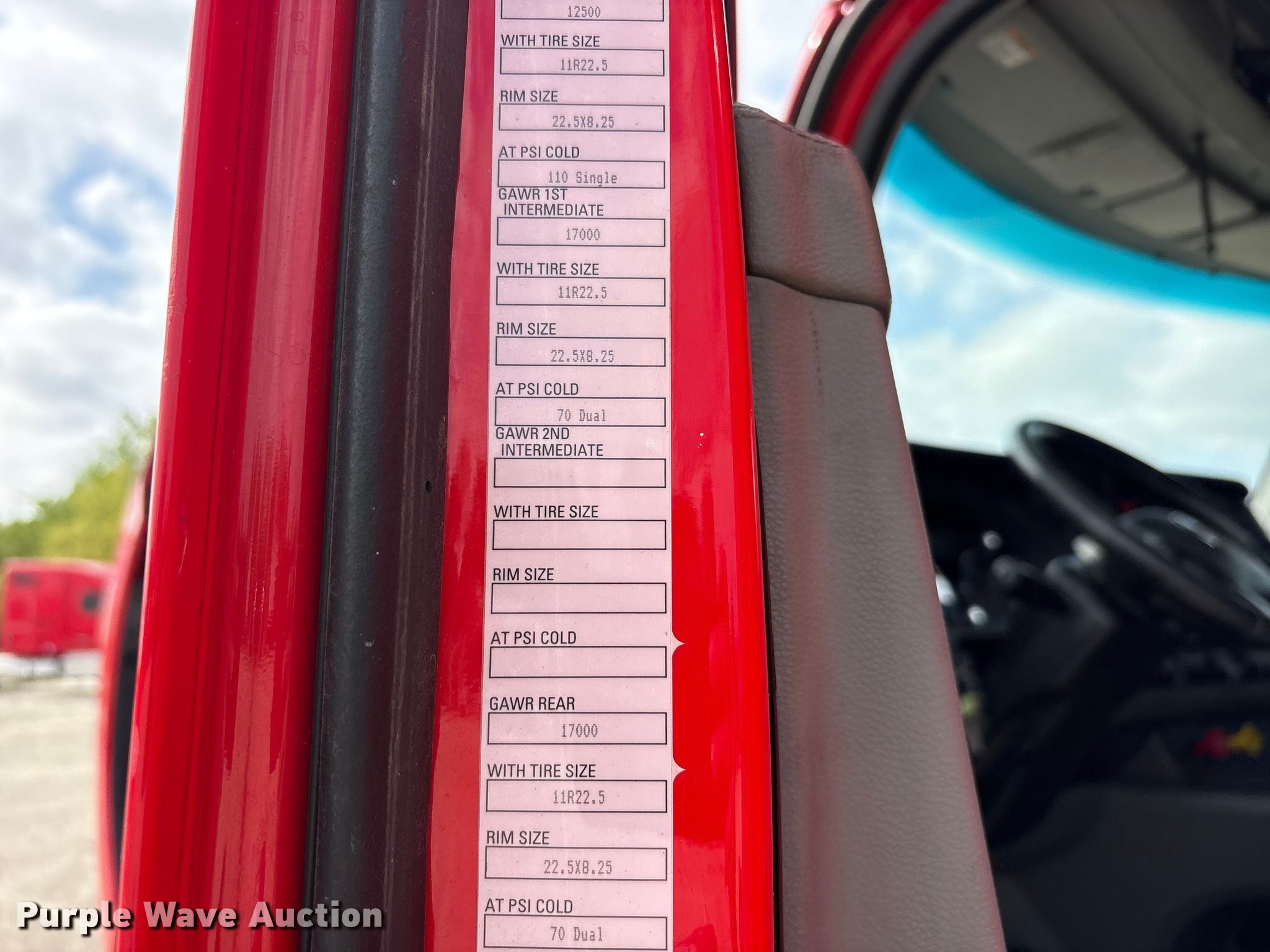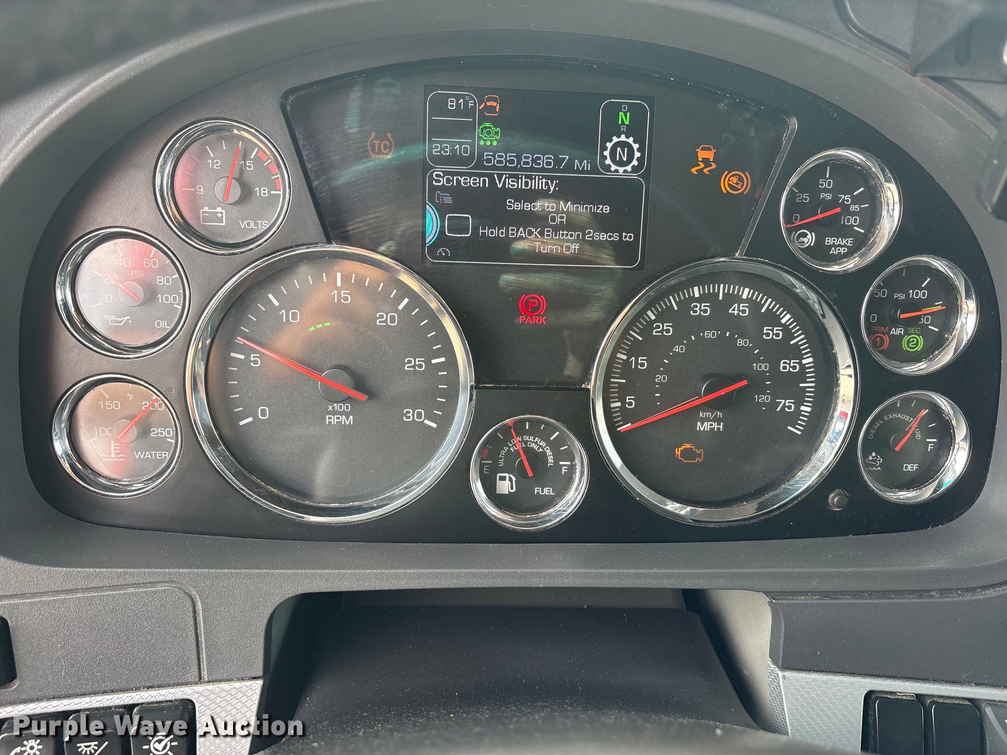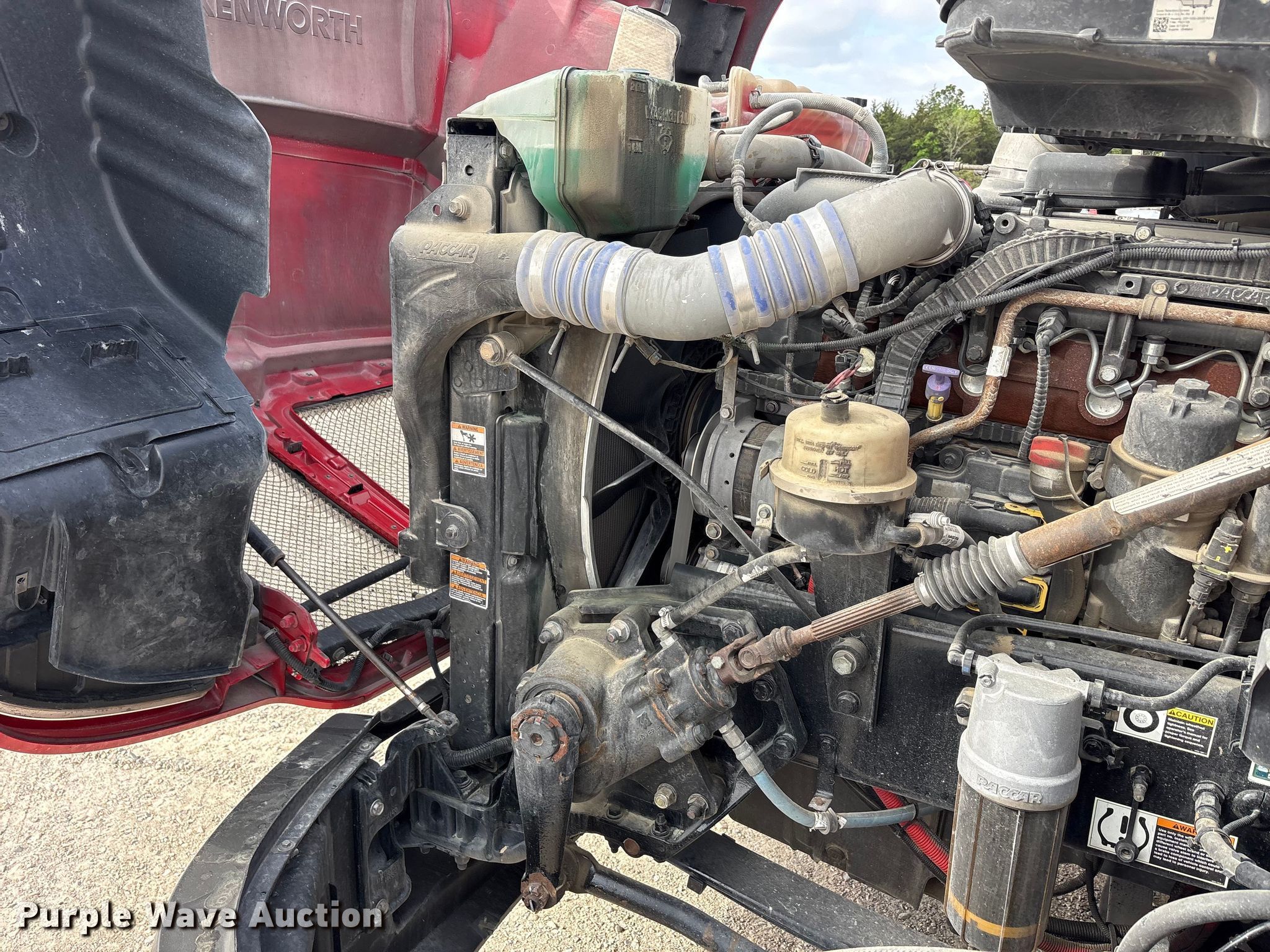2020 Kenworth T680 semi truck. Miles: 585,836 on odometer, VIN: 1XKYAP8X4LJ407249, Unit #: T87. Engine Paccar MX-13, Displacement: 12.9L, Cylinders: 6, Fuel type: Diesel, HP: 405, Engine brake. Transmission Automated manual. Chassis Axles: Tandem, Single axle differential lock, Suspension: Air Dump valves, Brakes: Air, PTO, GVWR: 46,500 lbs FAWR: 12,500 lbs, IAWR: 17,000 lbs, RAWR: 17,000 lbs. Interior AC, Heat, Heated mirrors, Power windows, Power locks, Cruise control, Air ride cab, Sleeper Sleeper length: 64", Beds: Single, Refrigerator, Rear climate control. Features Deck plate: Aluminum, Fifth wheel type: Air operated, Sliding, Fuel tank: Single. Tires Size: 11R22.5. Notes APU motor removed, Dash warning indicator: Traction control, Windshield chipped or cracked. Texas title. Title distribution may be delayed up to 14 days from verification of funds. Paris, TX 75462