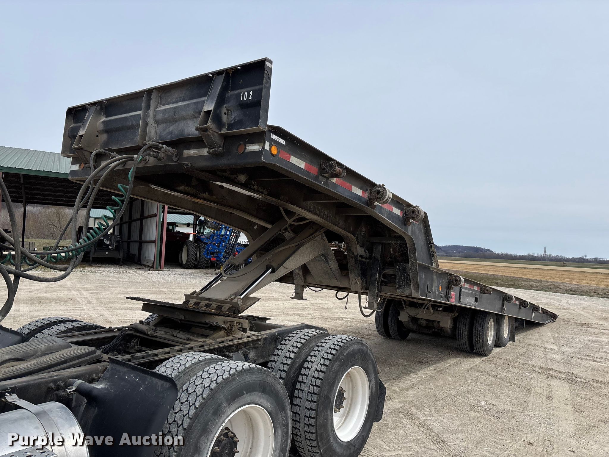 1985 Landoll drop tilt deck equipment trailer. Dimensions. Overall Length: 50', Width: 96", Deck Length: 38', Width: 96", Top deck length: 9' 2", Deck height: 3' 1". Features Deck type: Wood, Winch, Hydraulic controls: Manual. Chassis Landing gear: Dual, Suspension: Air, Brakes: Air, Axles: Tandem Sliding. Tires Steel wheels, Size: 10R17.5. Missouri title. Title distribution may be delayed up to 14 days from verification of funds. SelecTurf, Inc.. Jefferson City, MO 65101