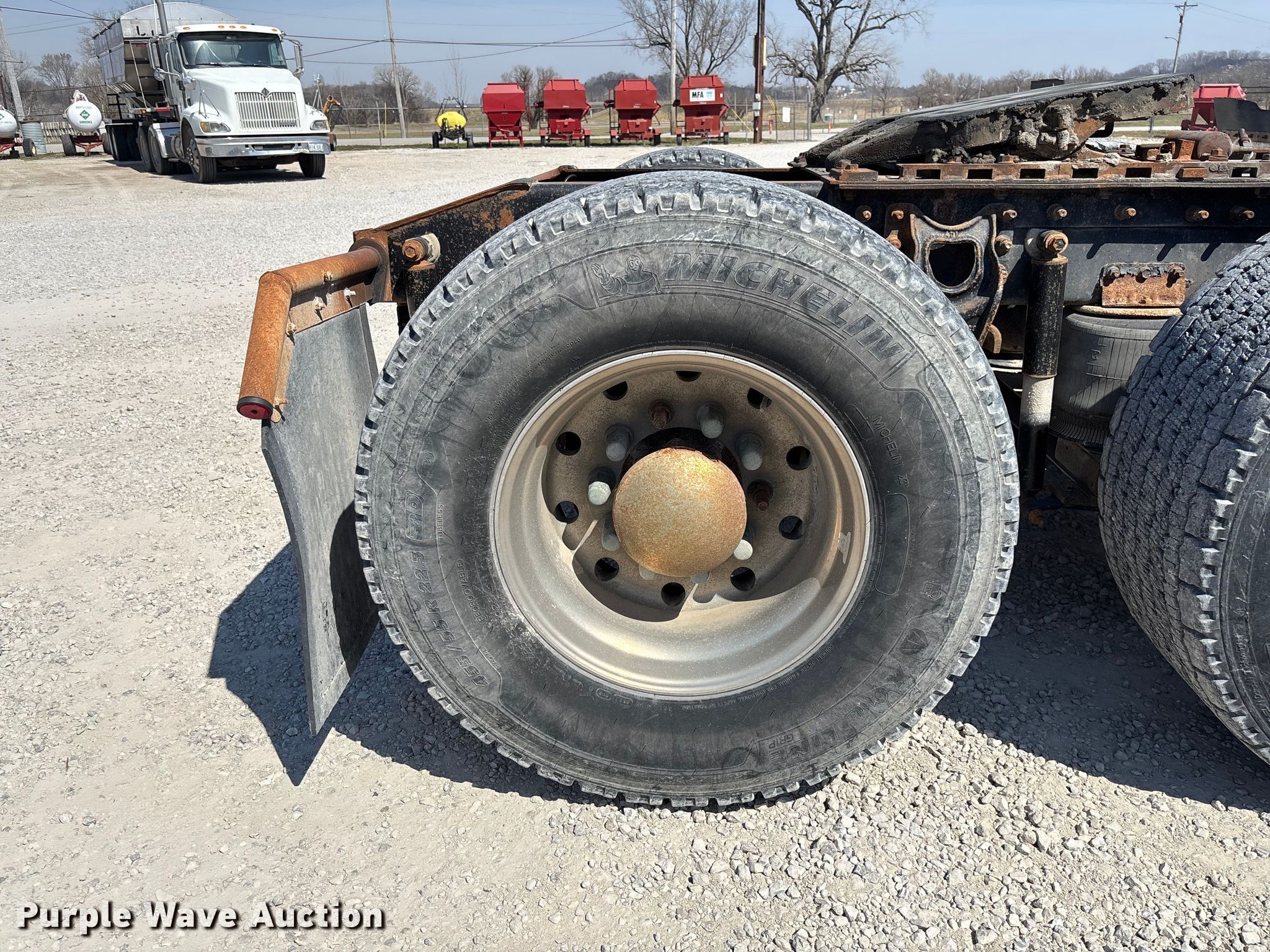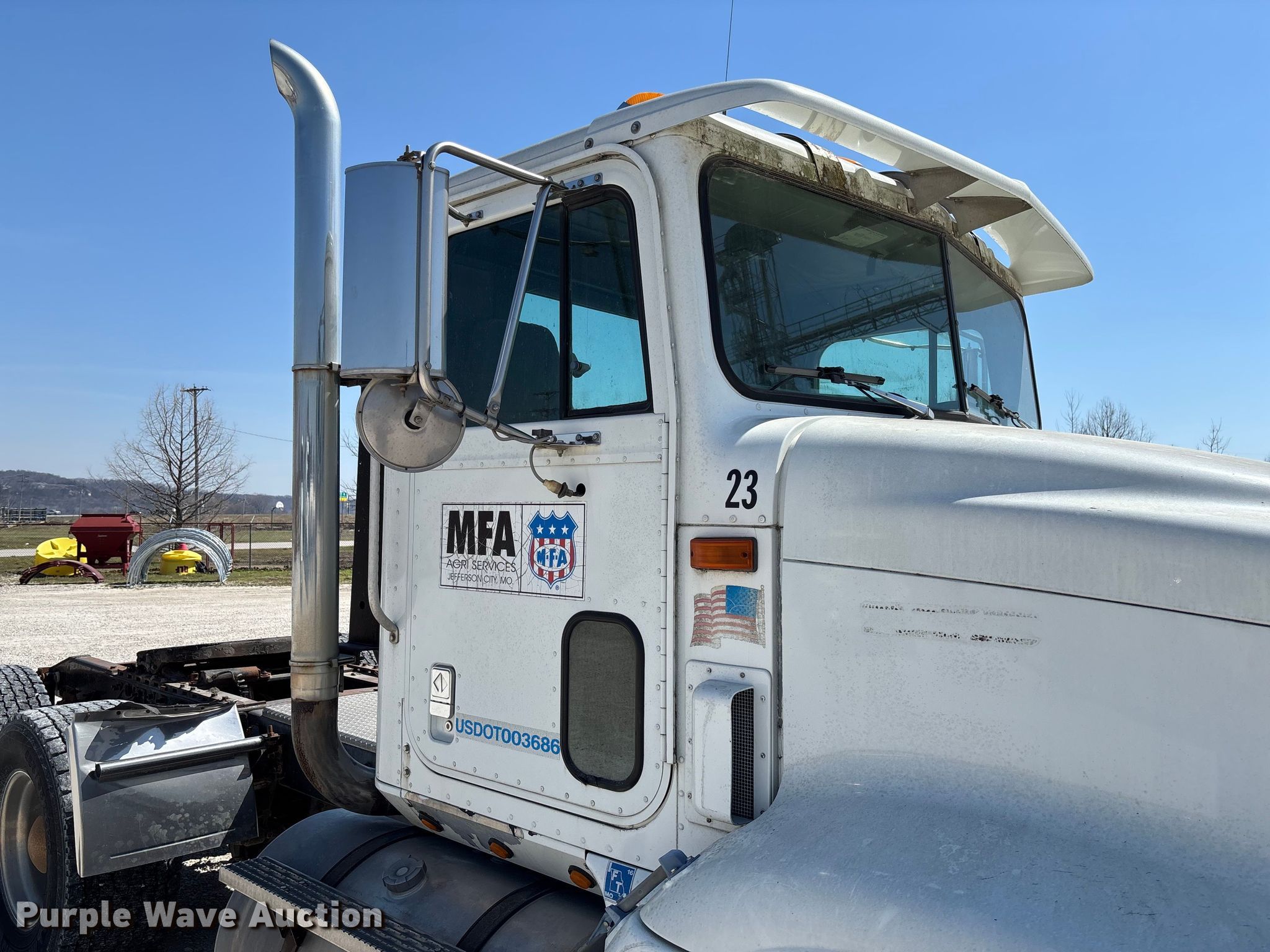 1998 International 9200 semi truck. Miles: 906,863 on odometer, VIN: 2HSFMAER3WC056938. Engine Cummins N14, Displacement: 14.0L, Cylinders: 6, Fuel type: Diesel. Transmission Rockwell, Manual, Speed: 10. Chassis Axles: Tandem, Differential lock: Inter-axle, Suspension: Air Dump valves, Brakes: Air, GVWR: 52,000 lbs FAWR: 12,000 lbs, RAWR: 40,000 lbs, Wheelbase: 171". Interior AC, Heat, Heated mirrors, Cruise control, Brake controller. Features Deck plate: Aluminum, Fifth wheel type: Air operated, Sliding, Fuel tank: Dual. Tires Front: 295/75R22.5, Rear: 455/55R22.5. Notes Windshield chipped or cracked, Engine oil leak. Missouri title. Title distribution may be delayed up to 30 days from verification of funds. MFA Agri-Services. Jefferson City, MO 65101