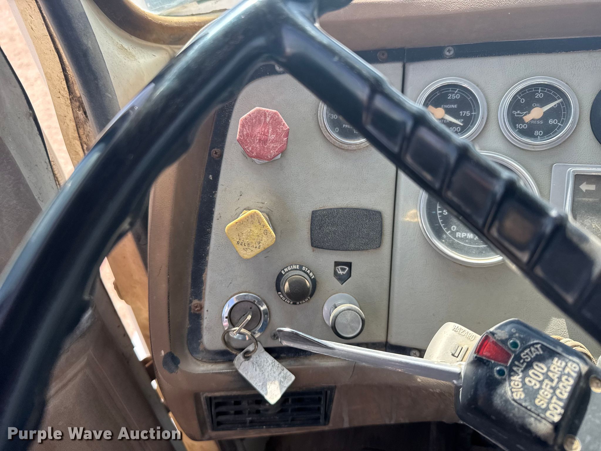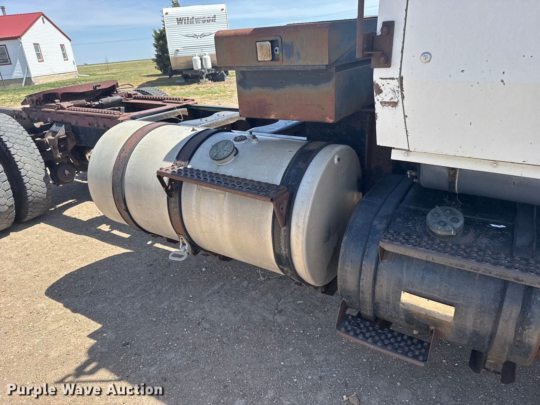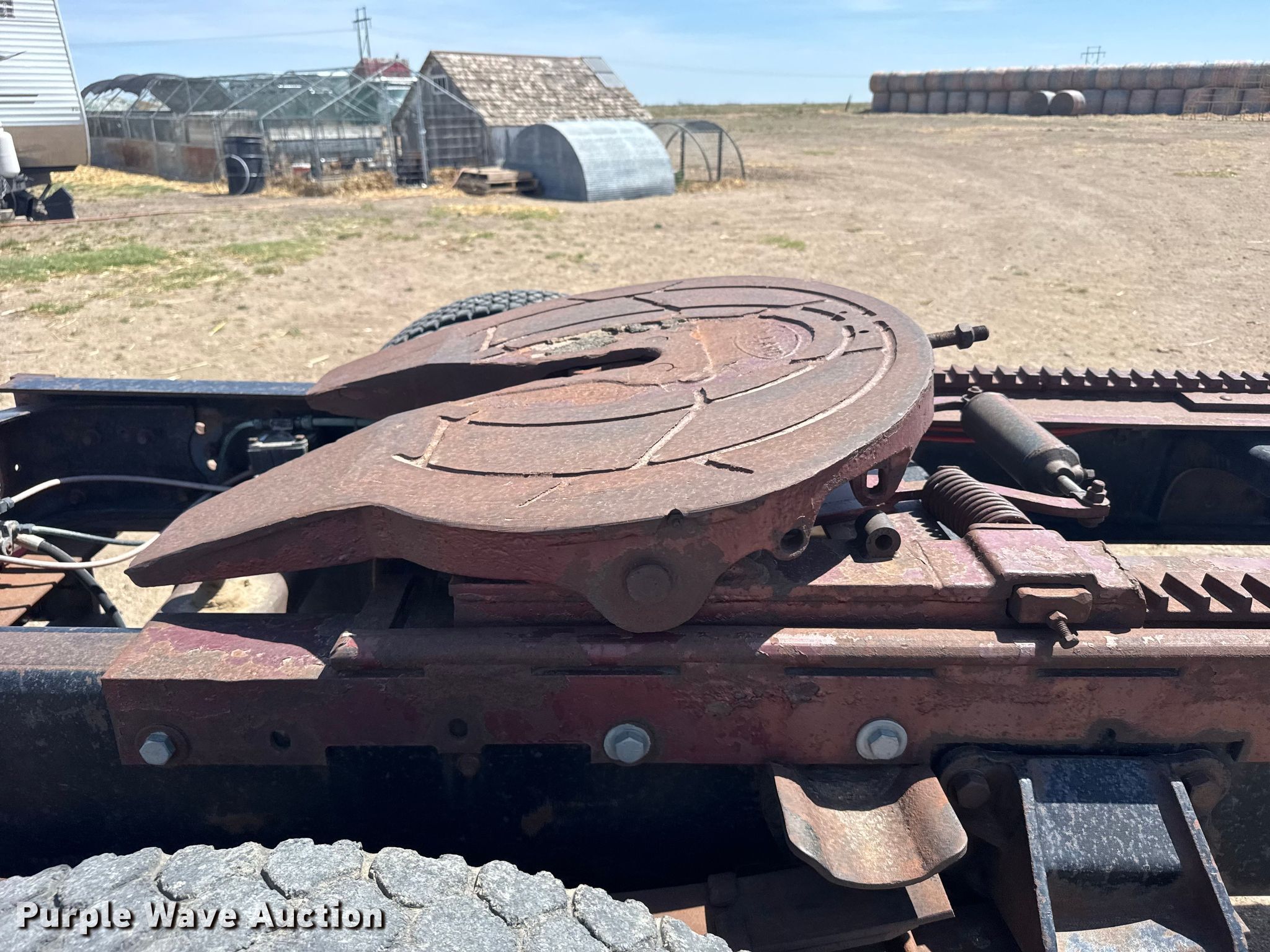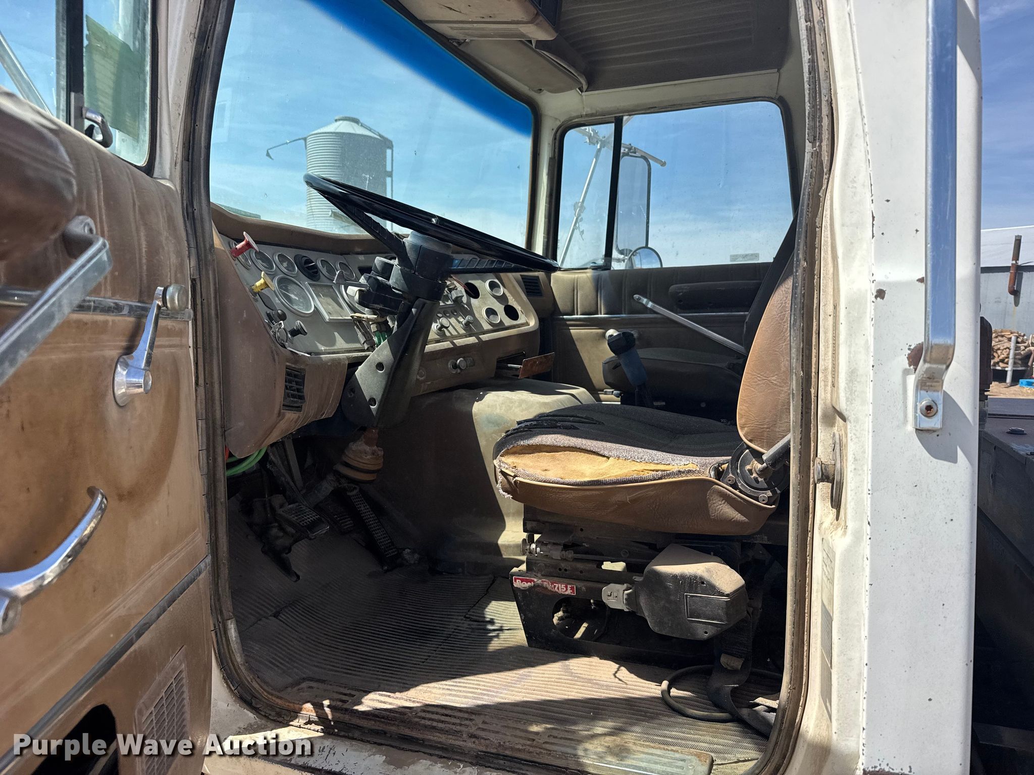 1989 Ford LN9000 semi truck. Miles: 825,844 on odometer, VIN: 1FDXR90TXKVA15044. Engine Caterpillar 3306, Displacement: 10.5L, Cylinders: 6, Fuel type: Diesel. Transmission Manual, Speed: 9. Chassis Axles: Single, Suspension: Air, Brakes: Air. Interior AC, Heat. Features Fifth wheel type: Fixed, Fuel tank: Dual. Tires Size: 11R22.5. Kansas title. Title distribution may be delayed up to 14 days from verification of funds. Jay Bar R Ranch. Ransom, KS 67572