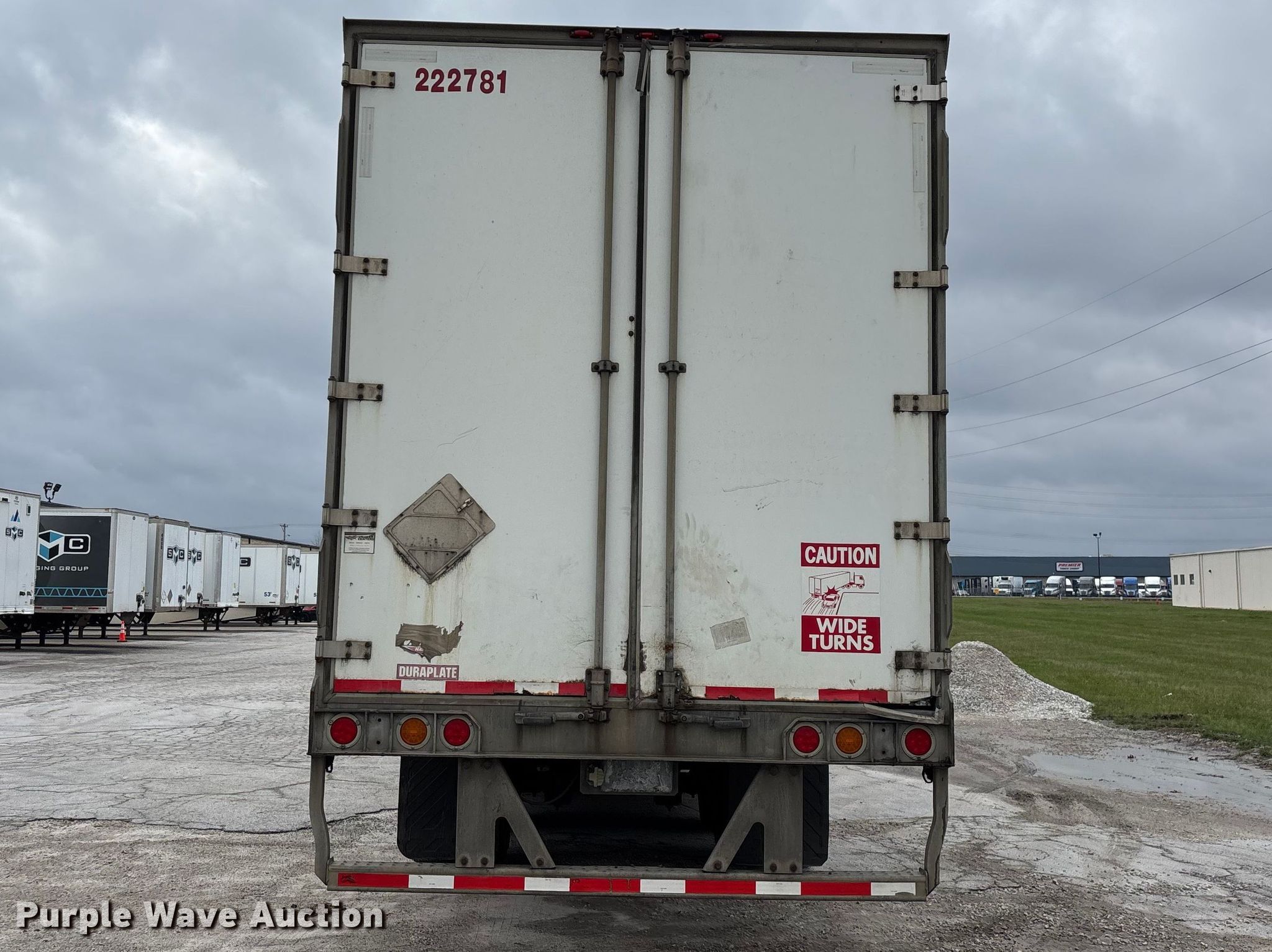 2012 Wabash National DVLSHPC dry van trailer. VIN: 1JJV532D1CL679585, Unit #: 222781. Dimensions Overall Length: 53', Width: 102". Features Deck type: Wood, E-track rail system. Chassis Landing gear: Dual, Suspension: Spring, Brakes: Air, Axles: Tandem Sliding, GVWR: 68,000 lbs, GAWR: 20,000 lbs. Tires Steel wheels, Size: 295/75R22.5. Notes Semi truck not included. Missouri title. Title distribution may be delayed up to 30 days from verification of funds. Edge Transportation LLC. Springfield, MO 65802