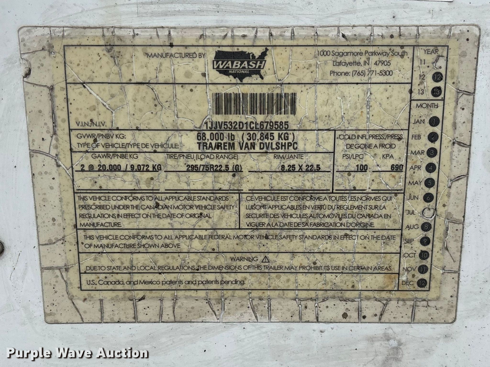 Purple Wave is selling a used Dry Van Trailer in Missouri. This item is a 2012 Wabash National DVLSHPC dry van trailer with the following: VIN: 1JJV532D1CL679585, Unit #: 222781